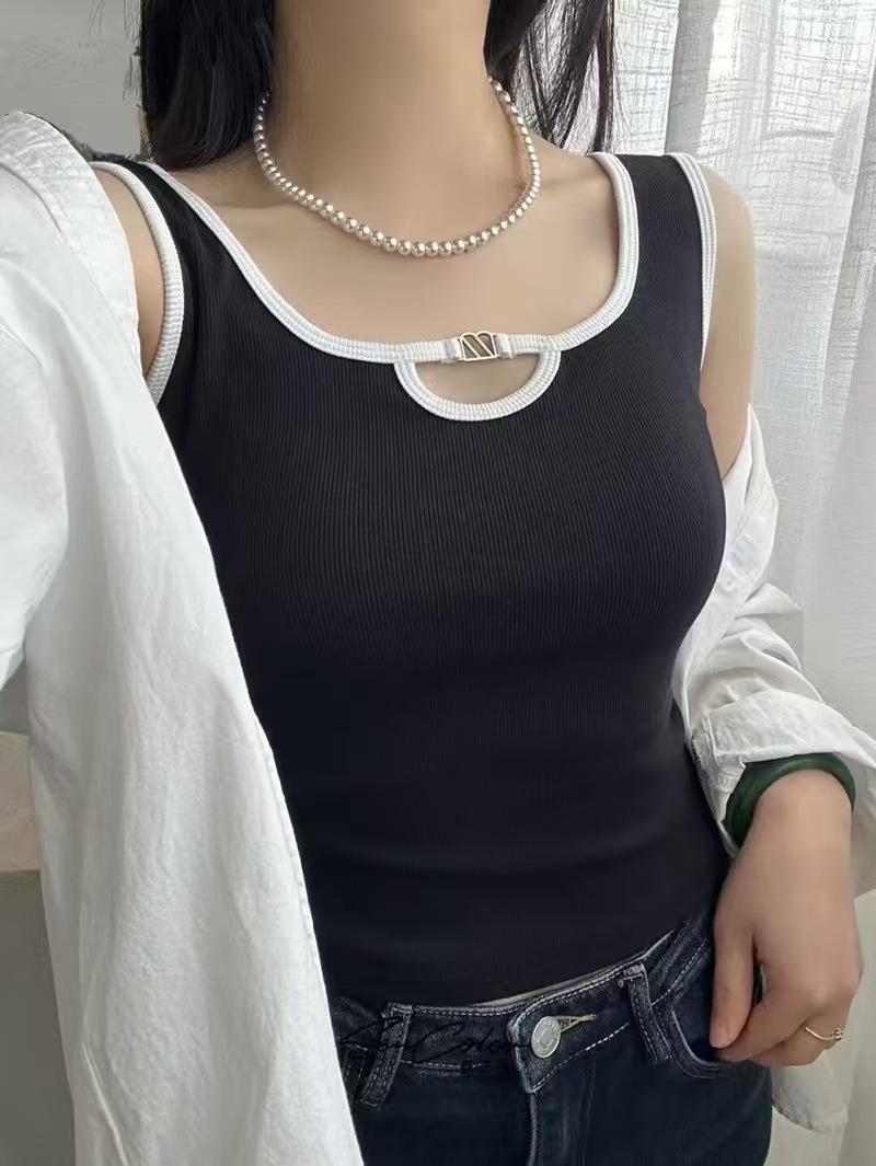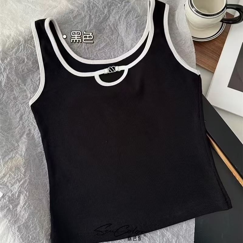 올 매치 대비 컬러 비 가슴 패드 카미 솔 여성 내부 조끼 여름 외부 착용 민소매 기본 셔츠 금속 장식 최고 여성