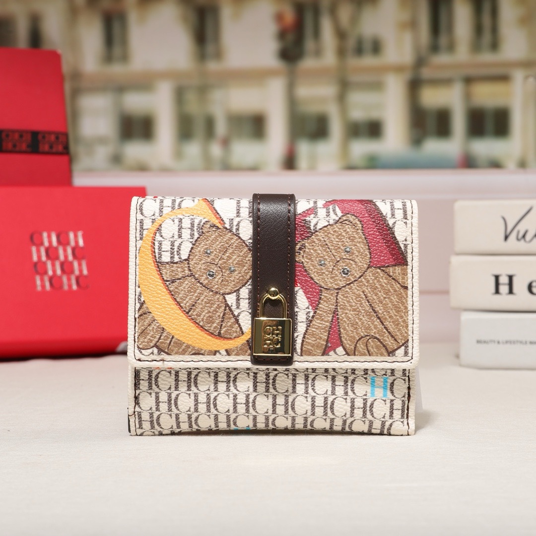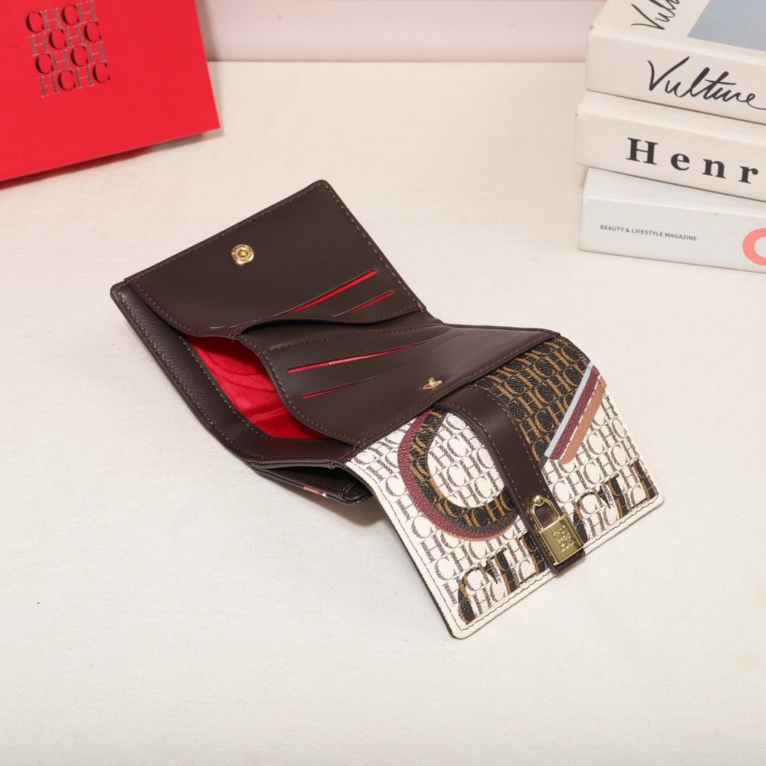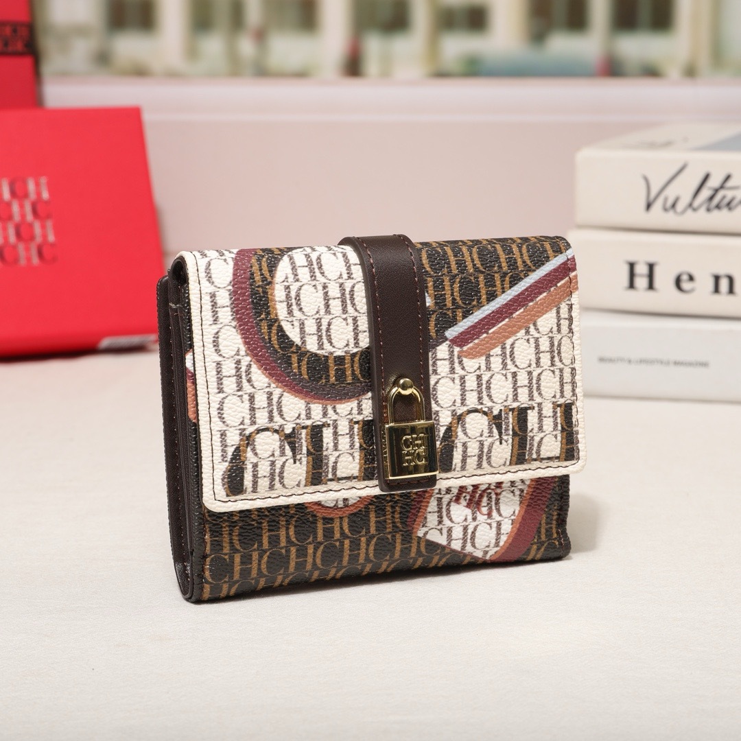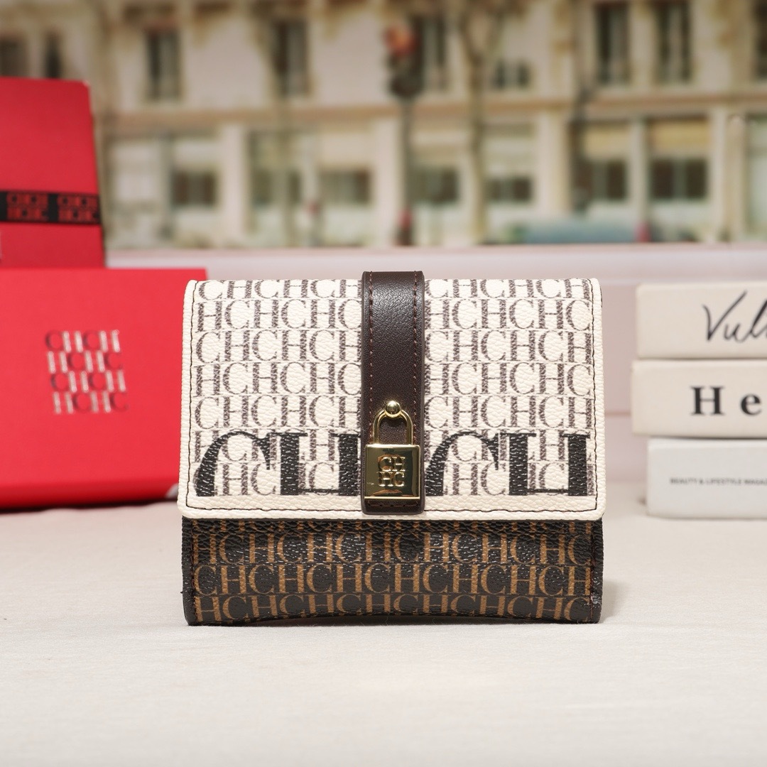 CHHC 클래식 인쇄 광장 작은 지갑 유행 양각 잠금 버클 접이식 지갑 작은 빛 럭셔리 숙녀스토어 가기