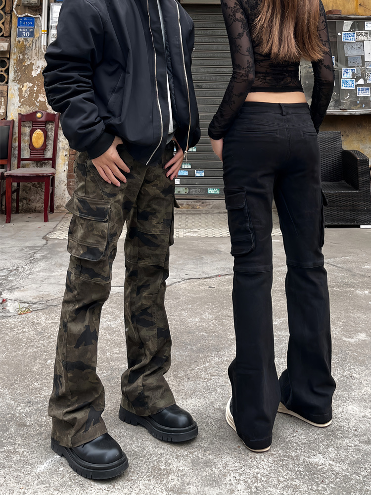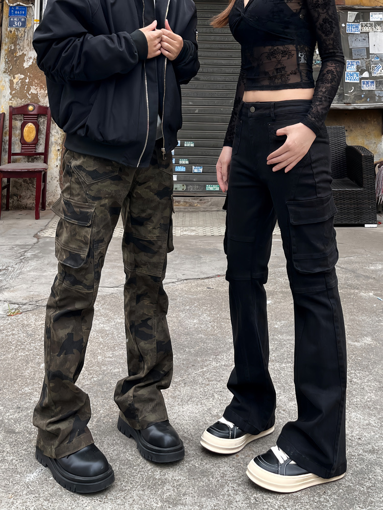 고수풀 미국 복고풍 마이크로 혼 위장 바지 남녀 2025 년 봄과 가을 새로운 캐주얼 말굽 바지스토어 가기