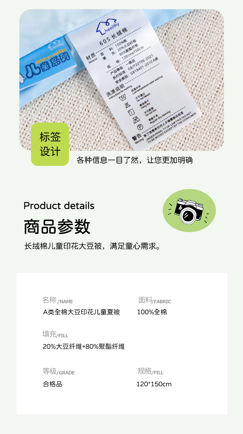 60 긴면 디지털 인쇄 콩 섬유 여름 이불 유치원 아기 입학 에어컨 여름 시원한 이불 얇은 이불