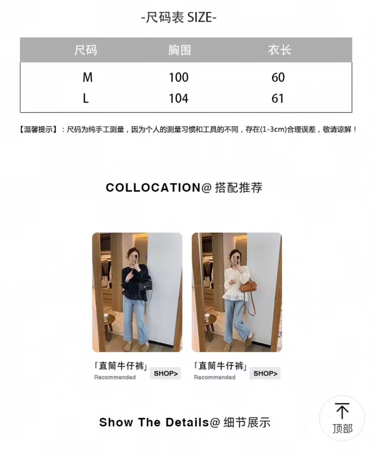 공장 직판 한국 스타일 틈새 시장 프렌치 고급스러운 봄 가을 분위기 달콤한 셔츠 25 질감 디자인 감각 있는 셔츠 트렌디스토어 가기
