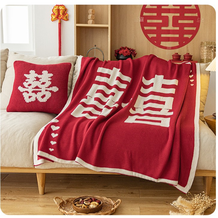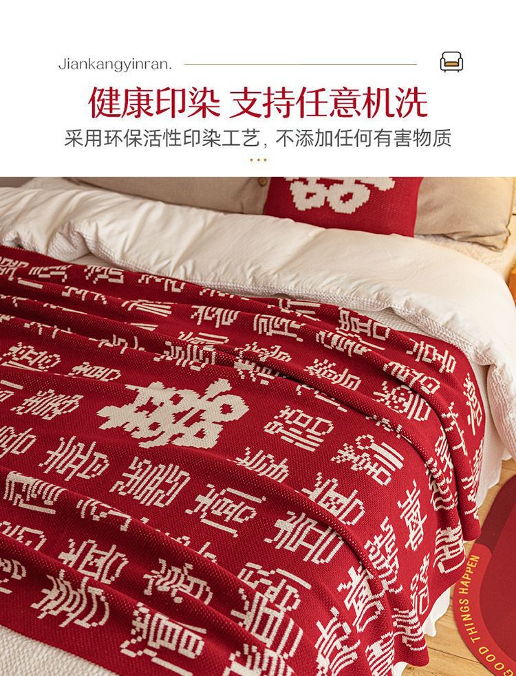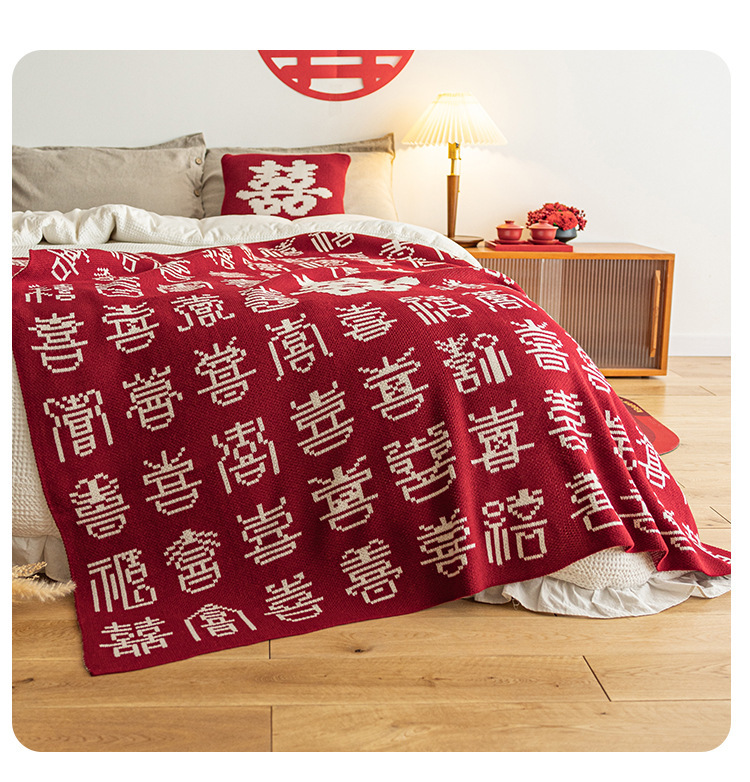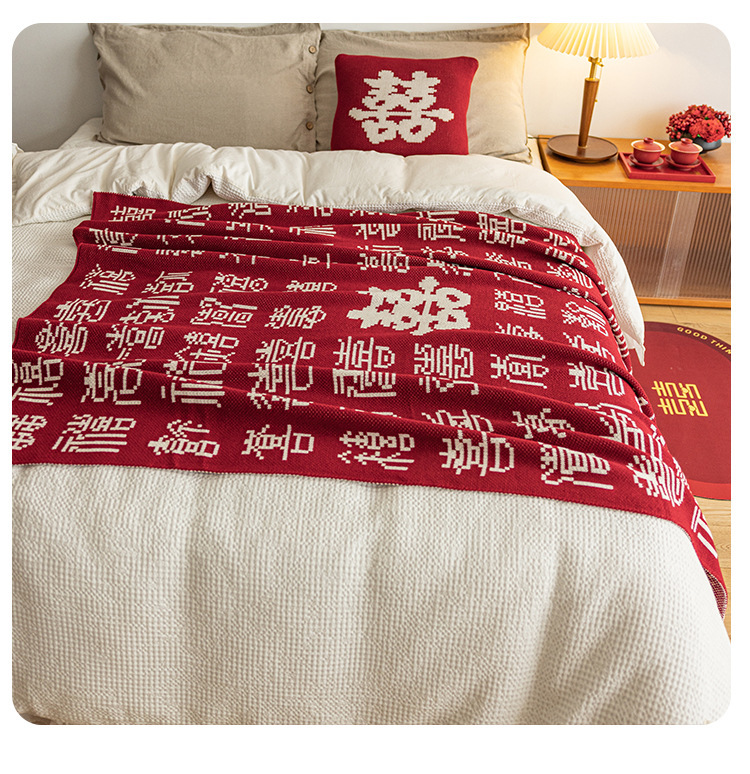 중국 스타일 웨딩 룸 장식 하이 엔드 웨딩 바이시 담요 레드 두꺼운 침실 침대 끝 수건 휴일 선물 담요스토어 가기
