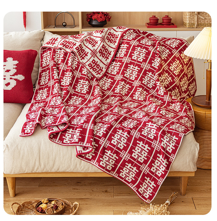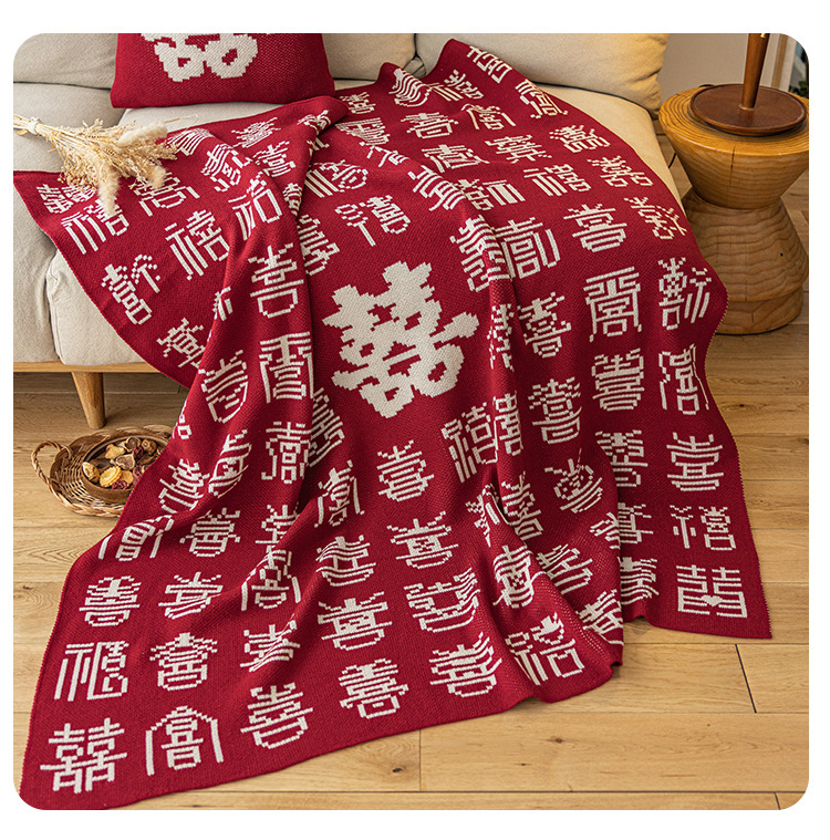 중국 스타일 웨딩 룸 장식 하이 엔드 웨딩 바이시 담요 레드 두꺼운 침실 침대 끝 수건 휴일 선물 담요