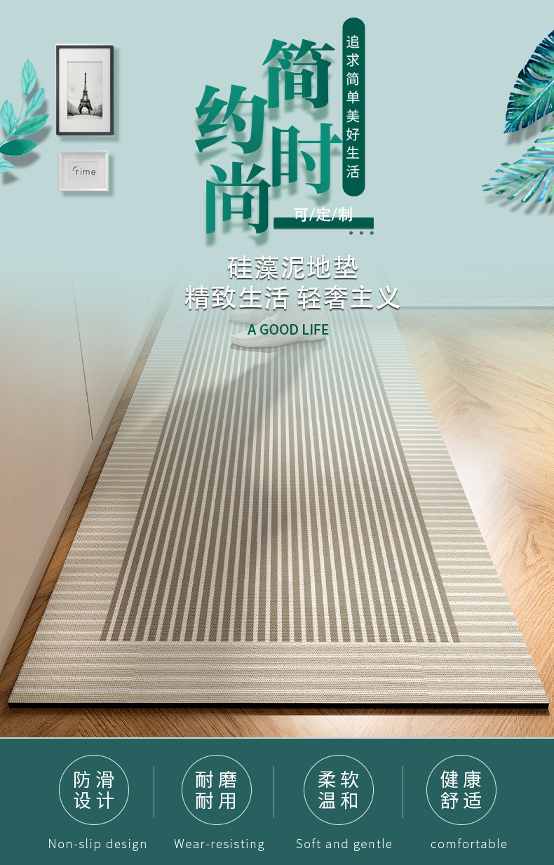 국경 간 간단한 주방 바닥 매트 가정용 먼지 방지 diatom 진흙 바닥 매트 물 흡수 오일 미끄럼 방지 풋 매트 도매스토어 가기