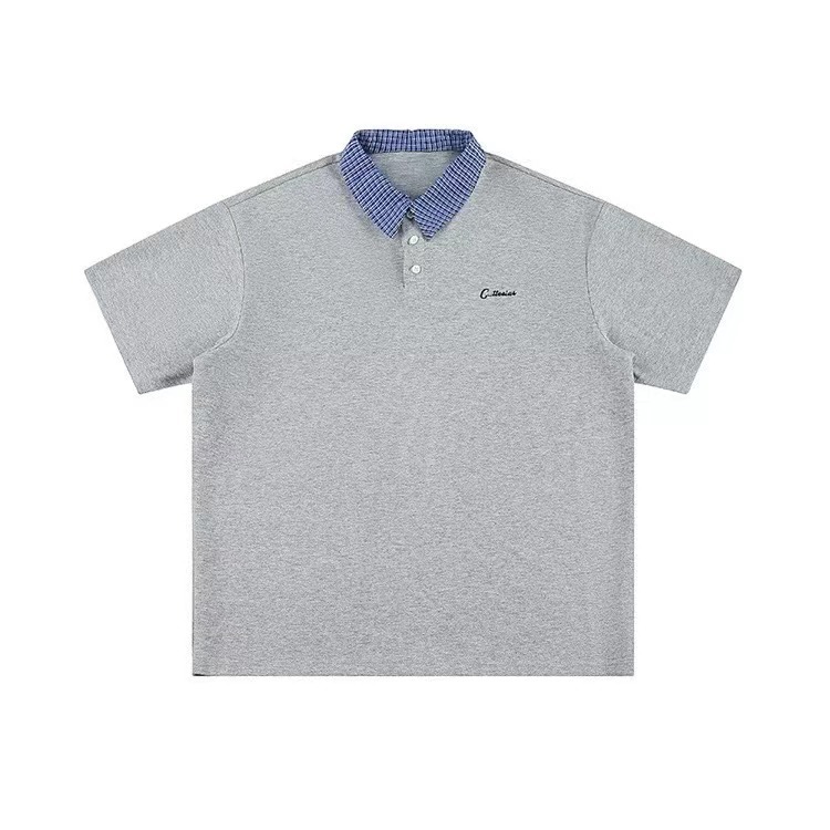 여름 새로운 대학 스타일 반팔 티셔츠 남성 아메리칸 스타일 캐주얼 POLO 칼라 가짜 투피스 단순 올 매치 탑 패션 브랜드스토어 가기