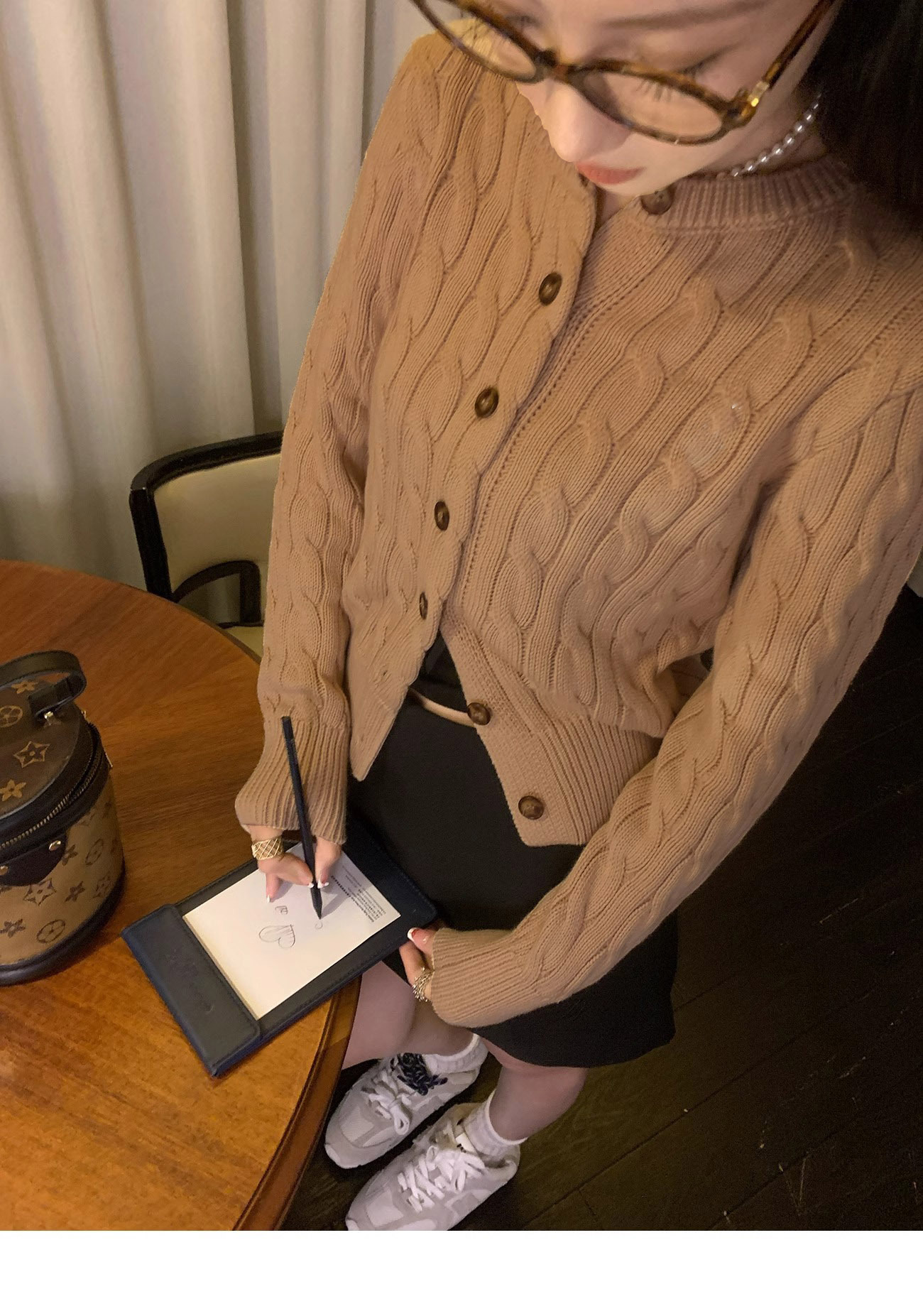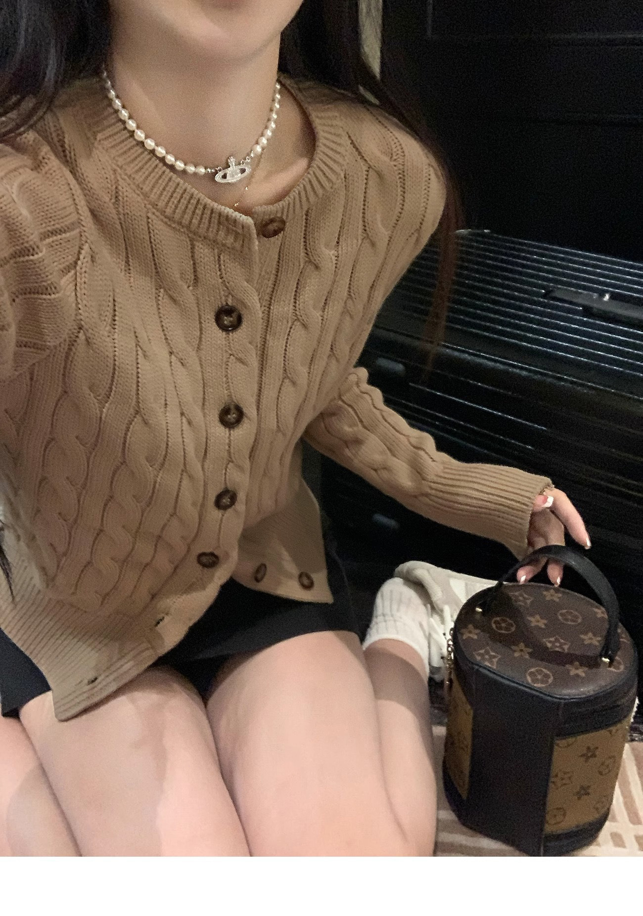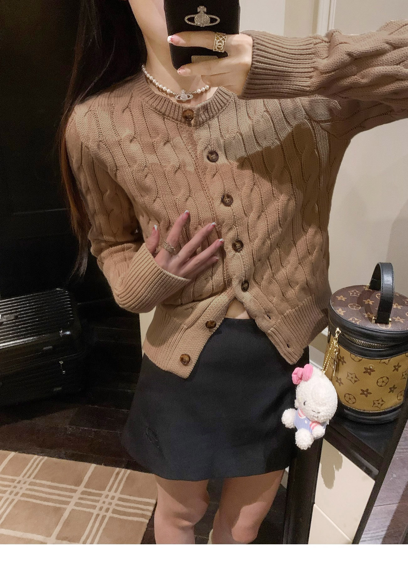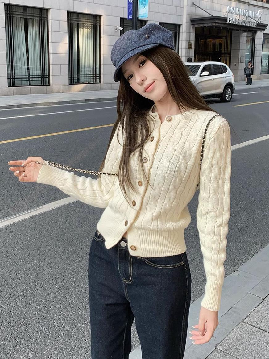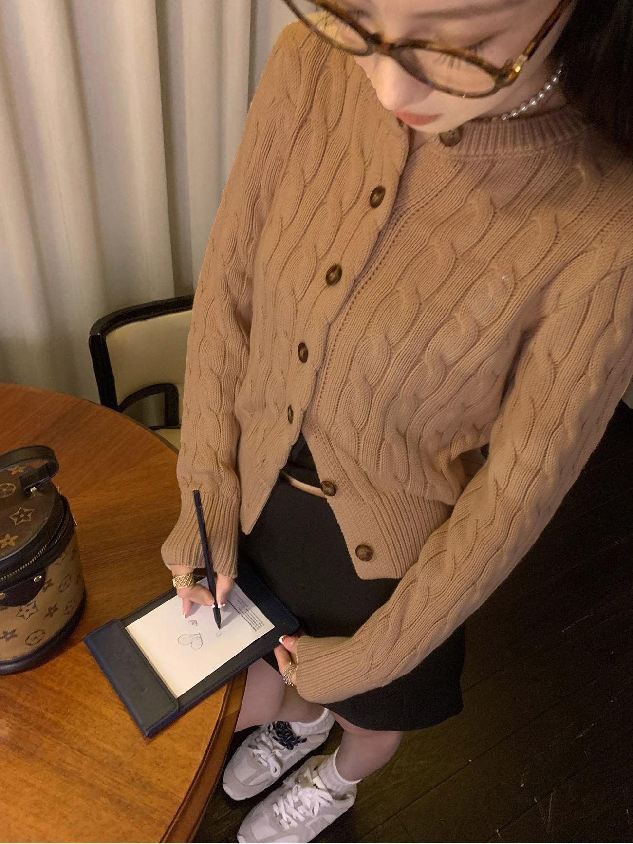 RL 랄프 포니 마크 가을과 겨울 코트 두꺼운 자수 트위스트 크루 넥 스웨터 여성의 폴 카디건 쇼트스토어 가기