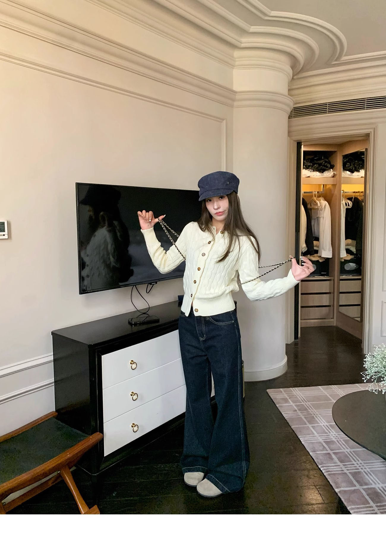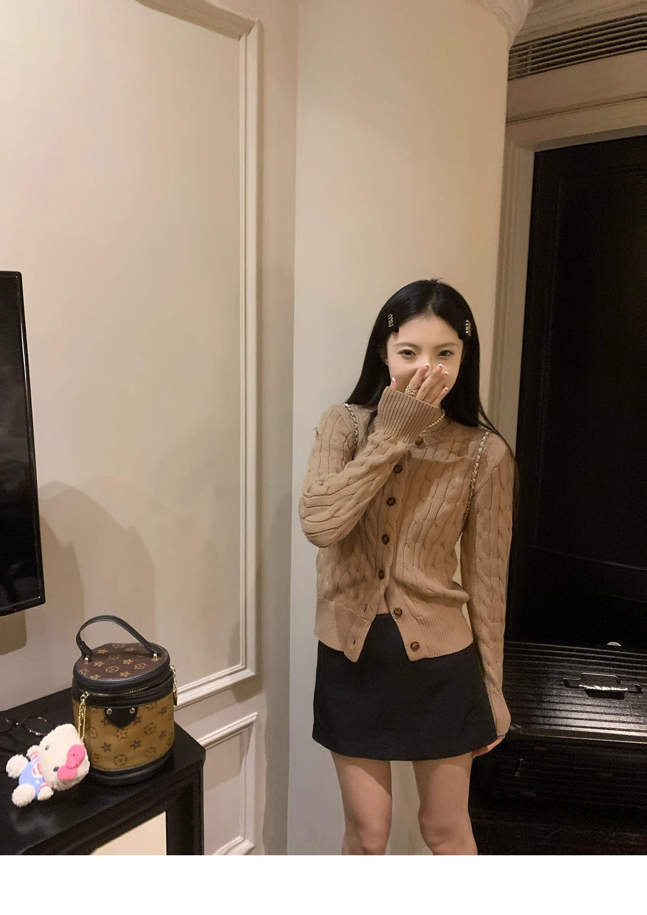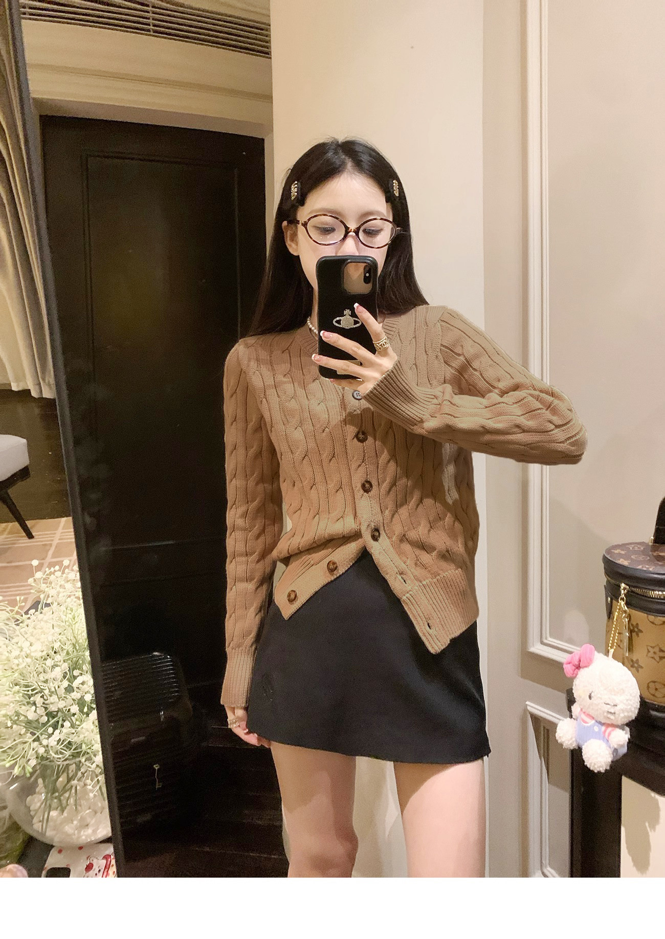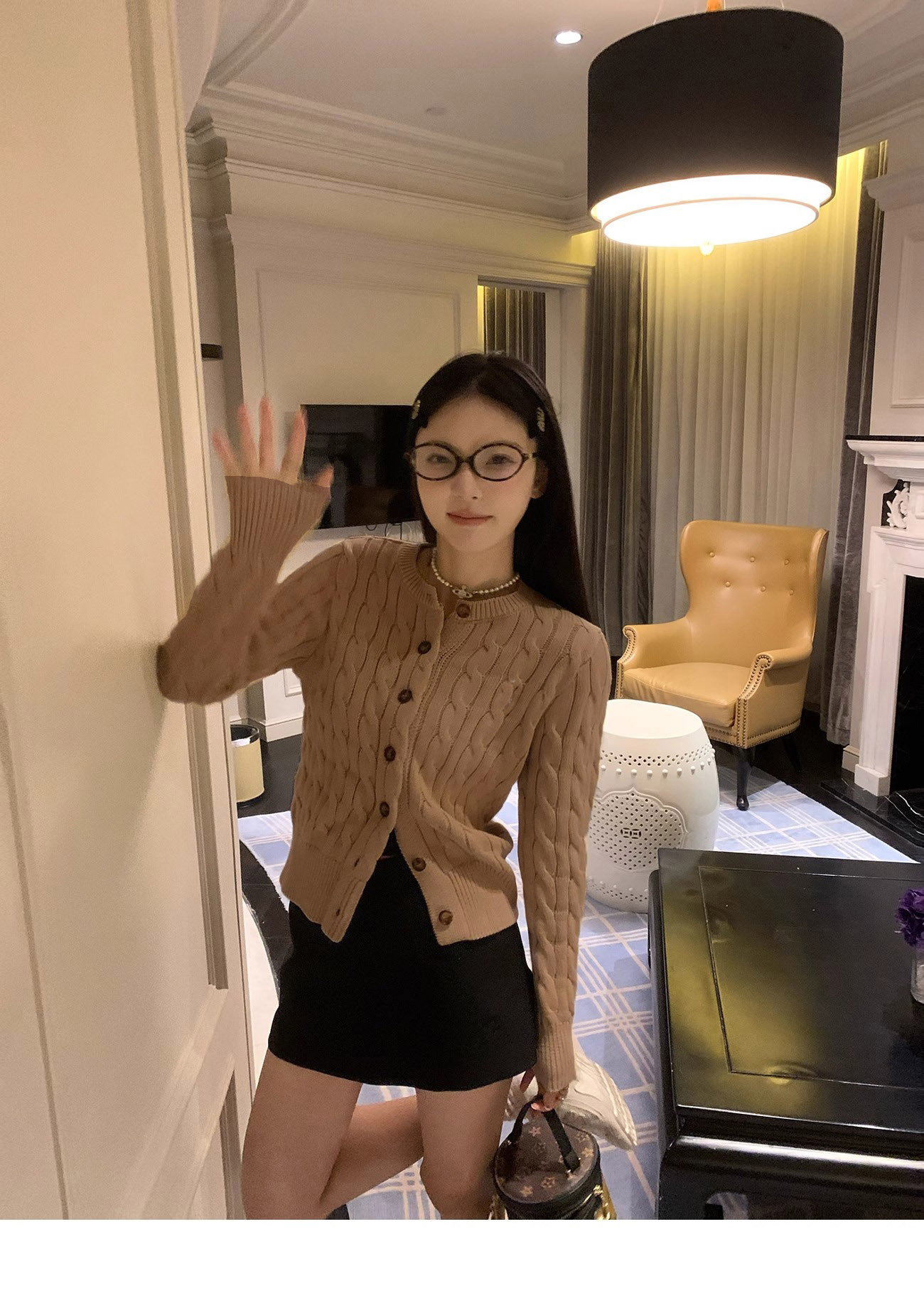 RL 랄프 포니 마크 가을과 겨울 코트 두꺼운 자수 트위스트 크루 넥 스웨터 여성의 폴 카디건 쇼트스토어 가기