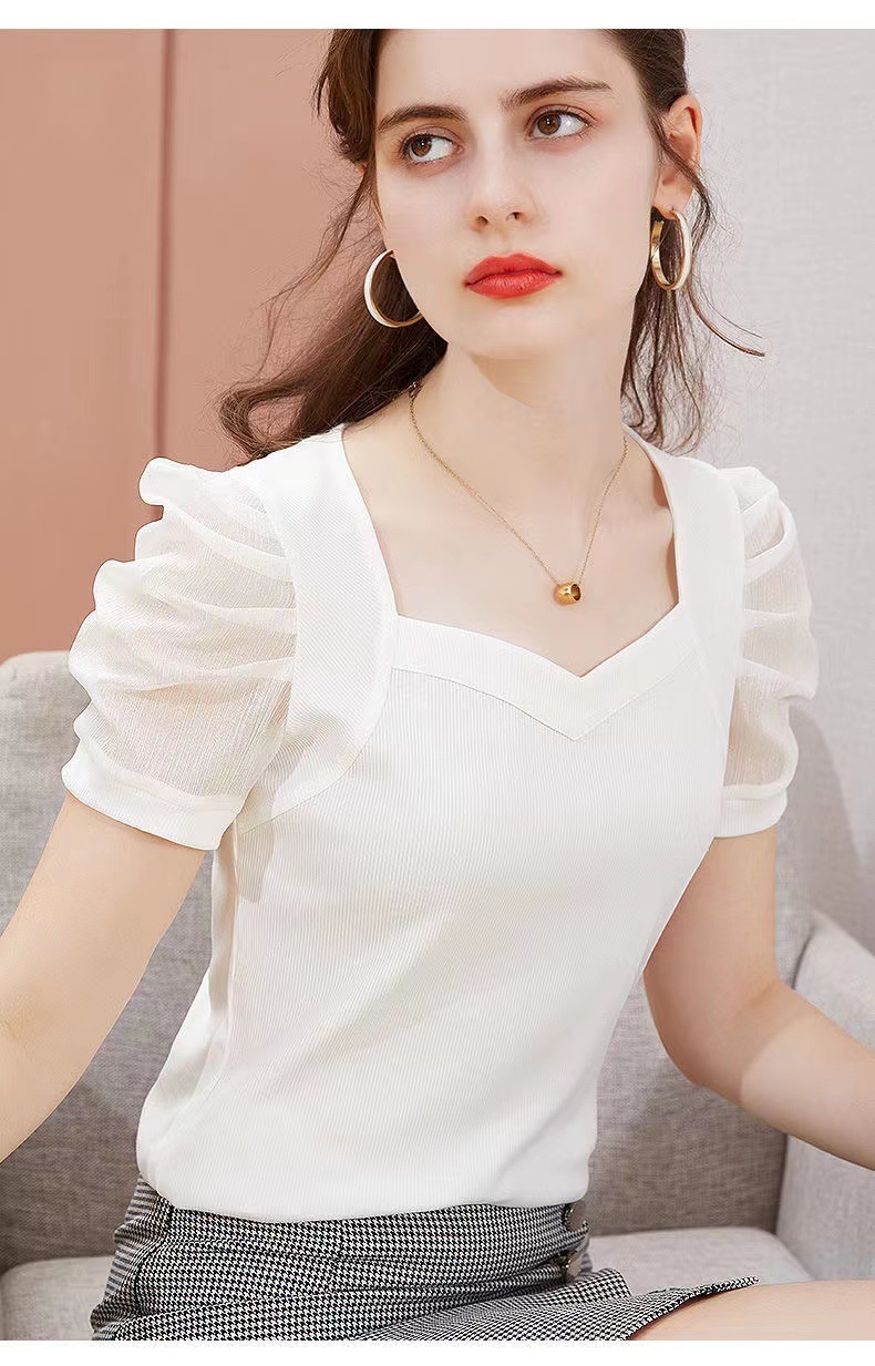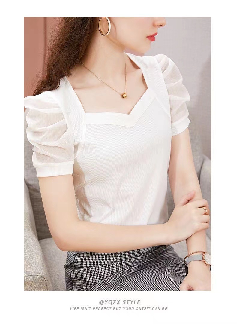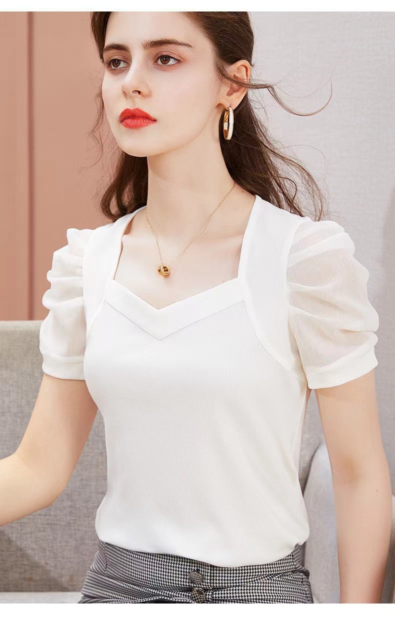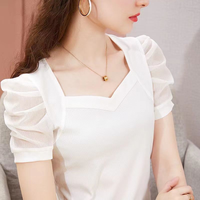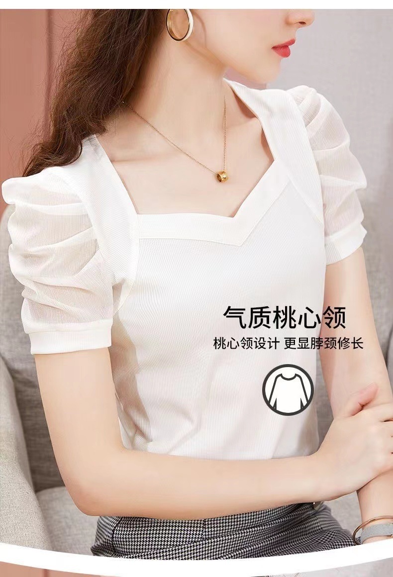 아이스 실크 반팔 티셔츠 여성용 2026 여름 신상 화이트 티셔츠 통근 스타일 퍼프 슬리브 빅사이즈 여성용 우아한 상의