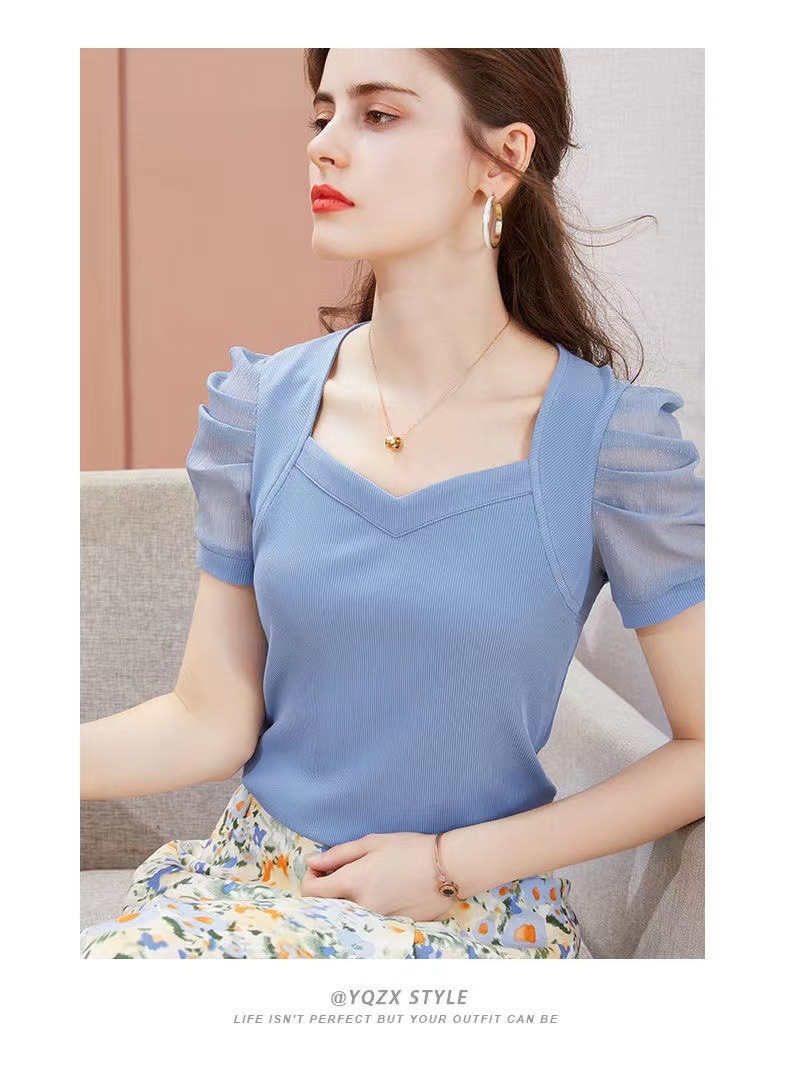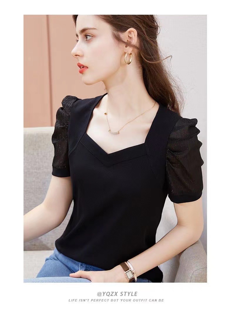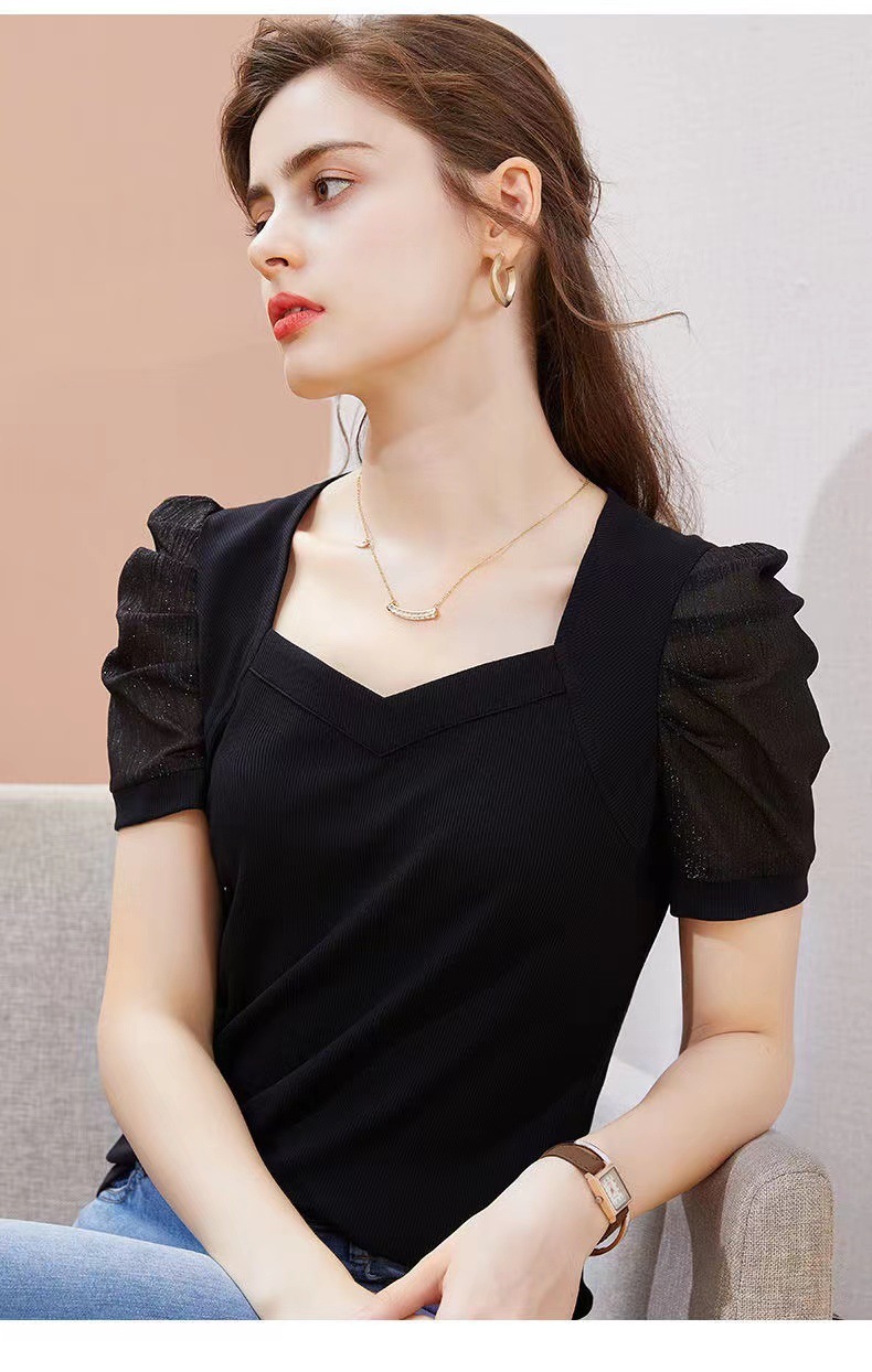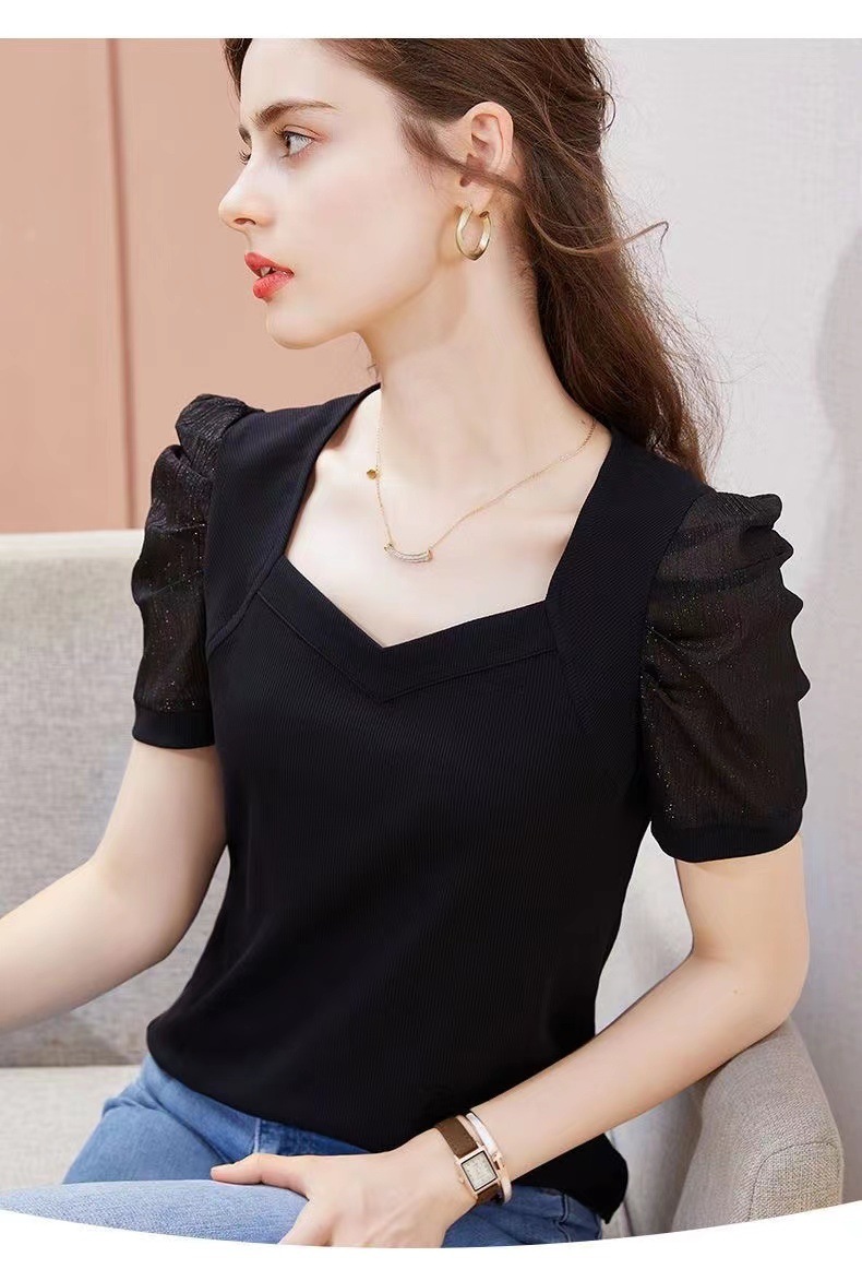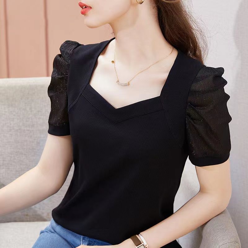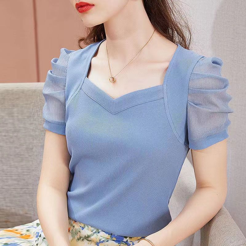 아이스 실크 반팔 티셔츠 여성용 2026 여름 신상 화이트 티셔츠 통근 스타일 퍼프 슬리브 빅사이즈 여성용 우아한 상의