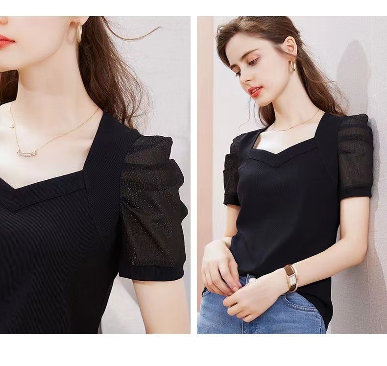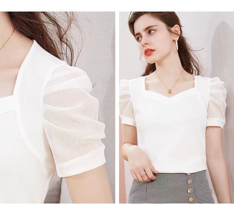 아이스 실크 반팔 티셔츠 여성용 2026 여름 신상 화이트 티셔츠 통근 스타일 퍼프 슬리브 빅사이즈 여성용 우아한 상의스토어 가기
