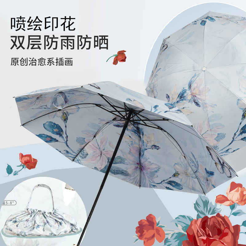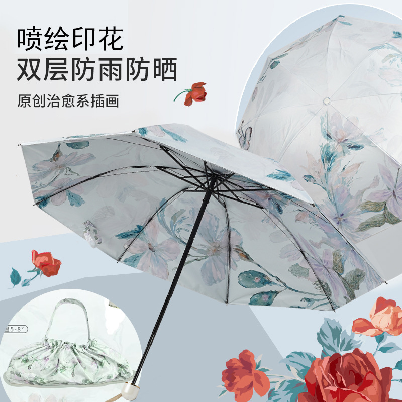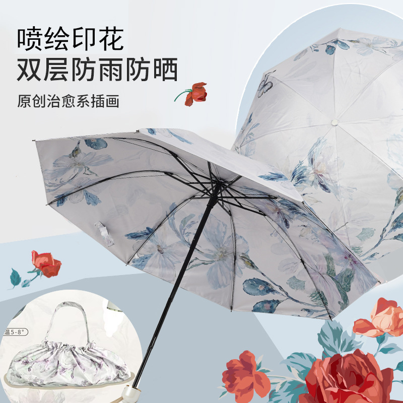 레트로 더블 레이어 빈티지 빈티지 빈티지 빈티지 써니 우산 빈티지 신선한 여성 UV 보호 태양 우산 트라이 폴드 태양 우산