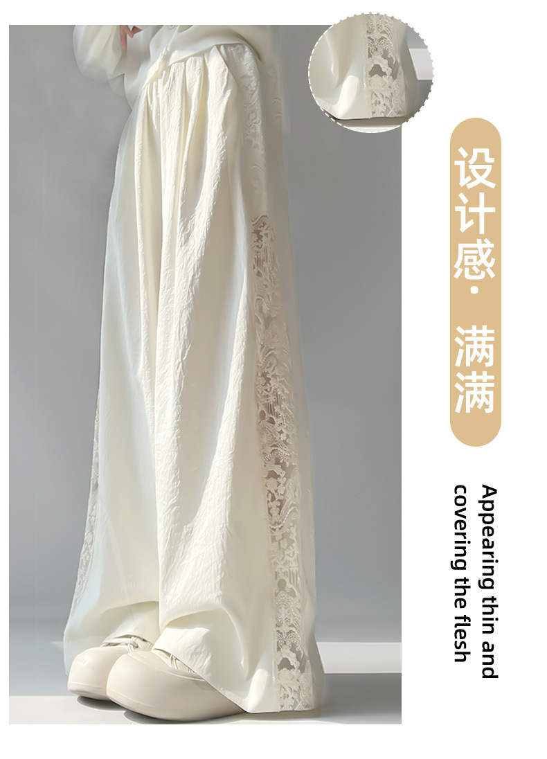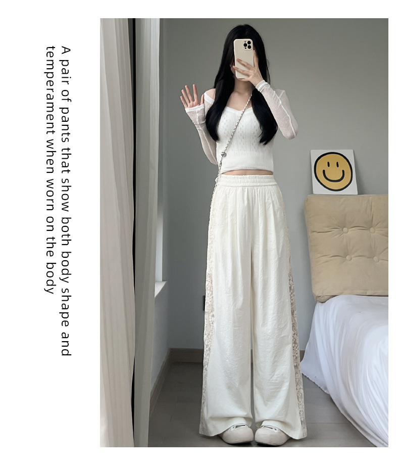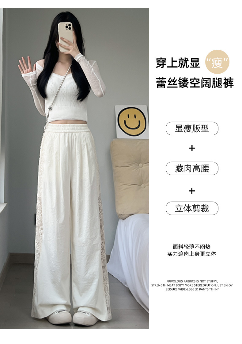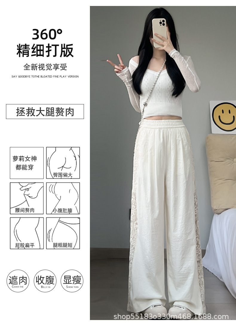 레이스 스티치 레이스업 와이드 팬츠 여성용 봄 여름 2025 신상 하이웨이스트 루즈핏 슬림 아이스 실크 팬츠 심플하고 다용도스토어 가기