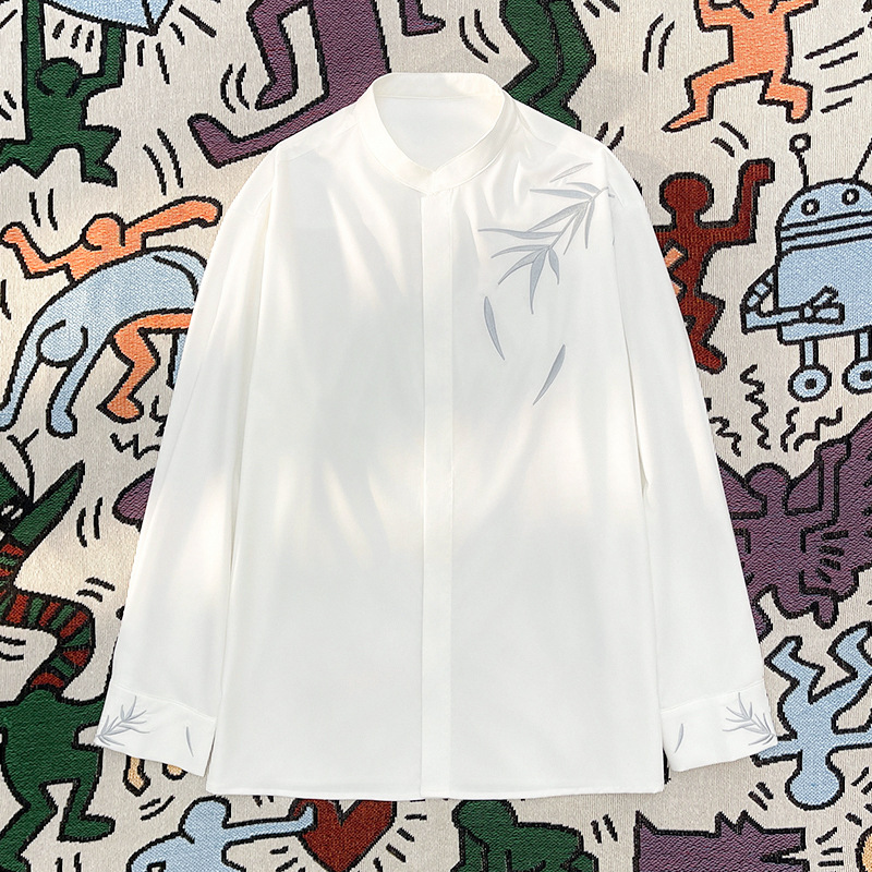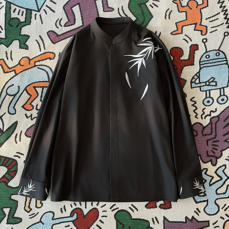 중국 스타일 대나무 자수 셔츠 남자의 긴 소매 새로운 중국 스타일 칼라 셔츠 봄과 가을 유행 리퍼 잘 생긴 커플 옷