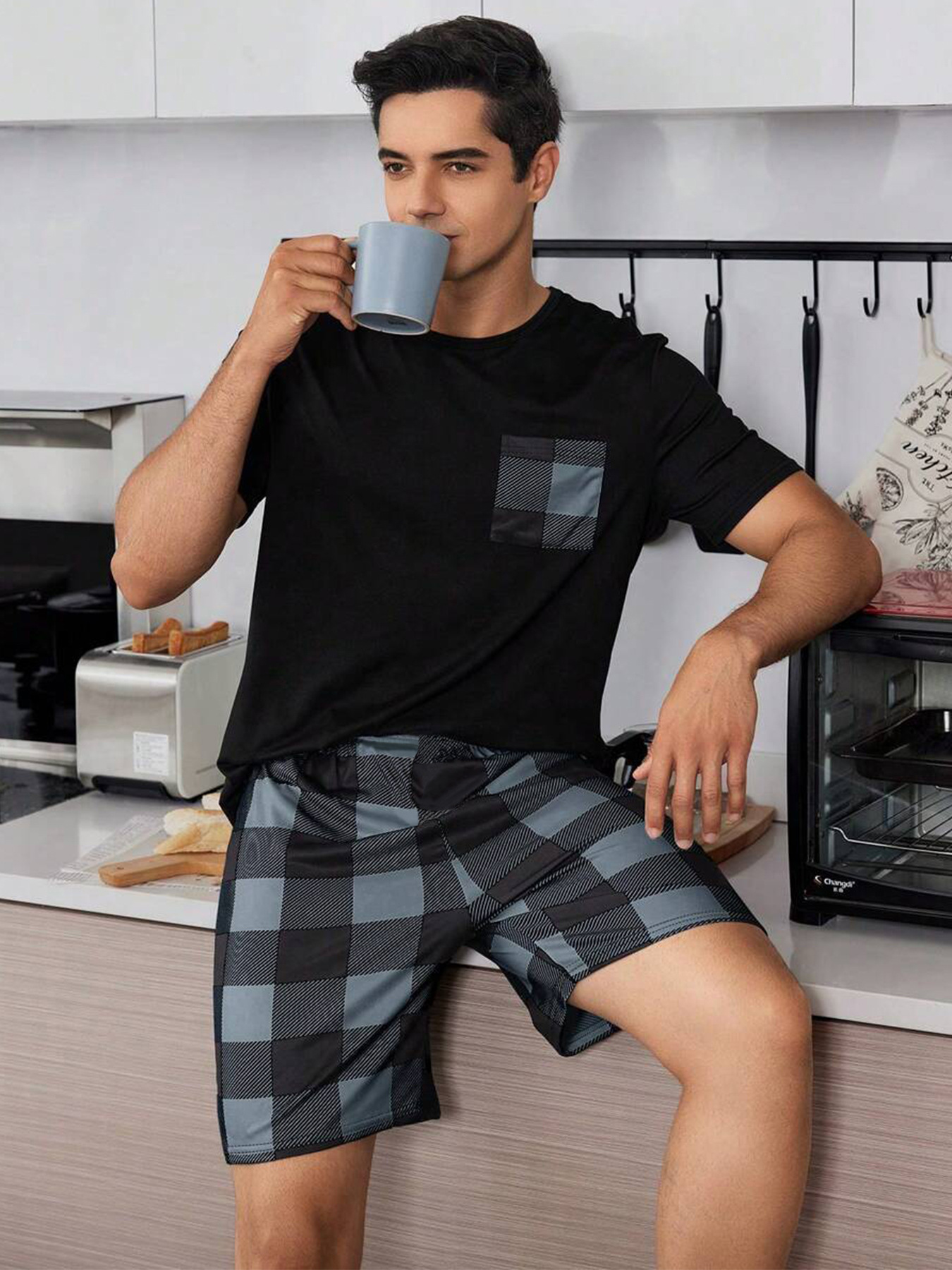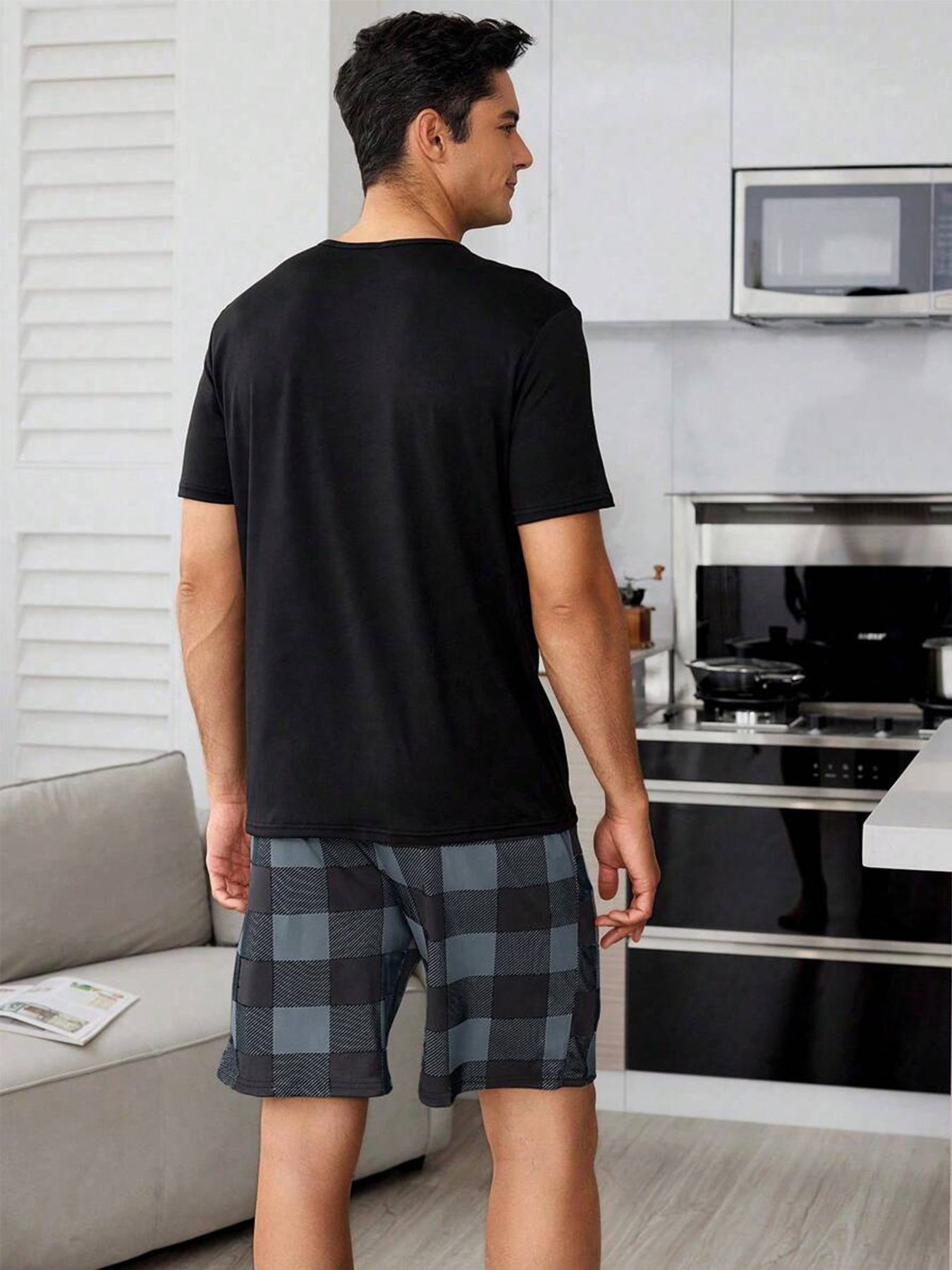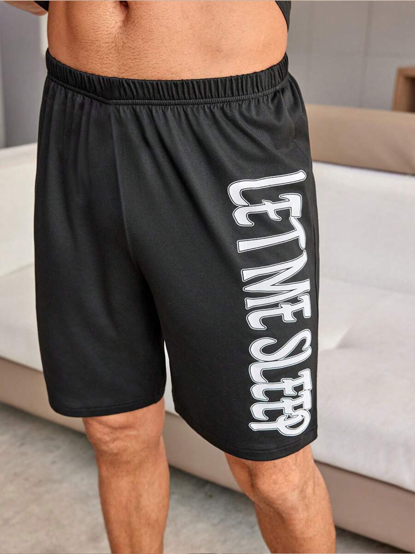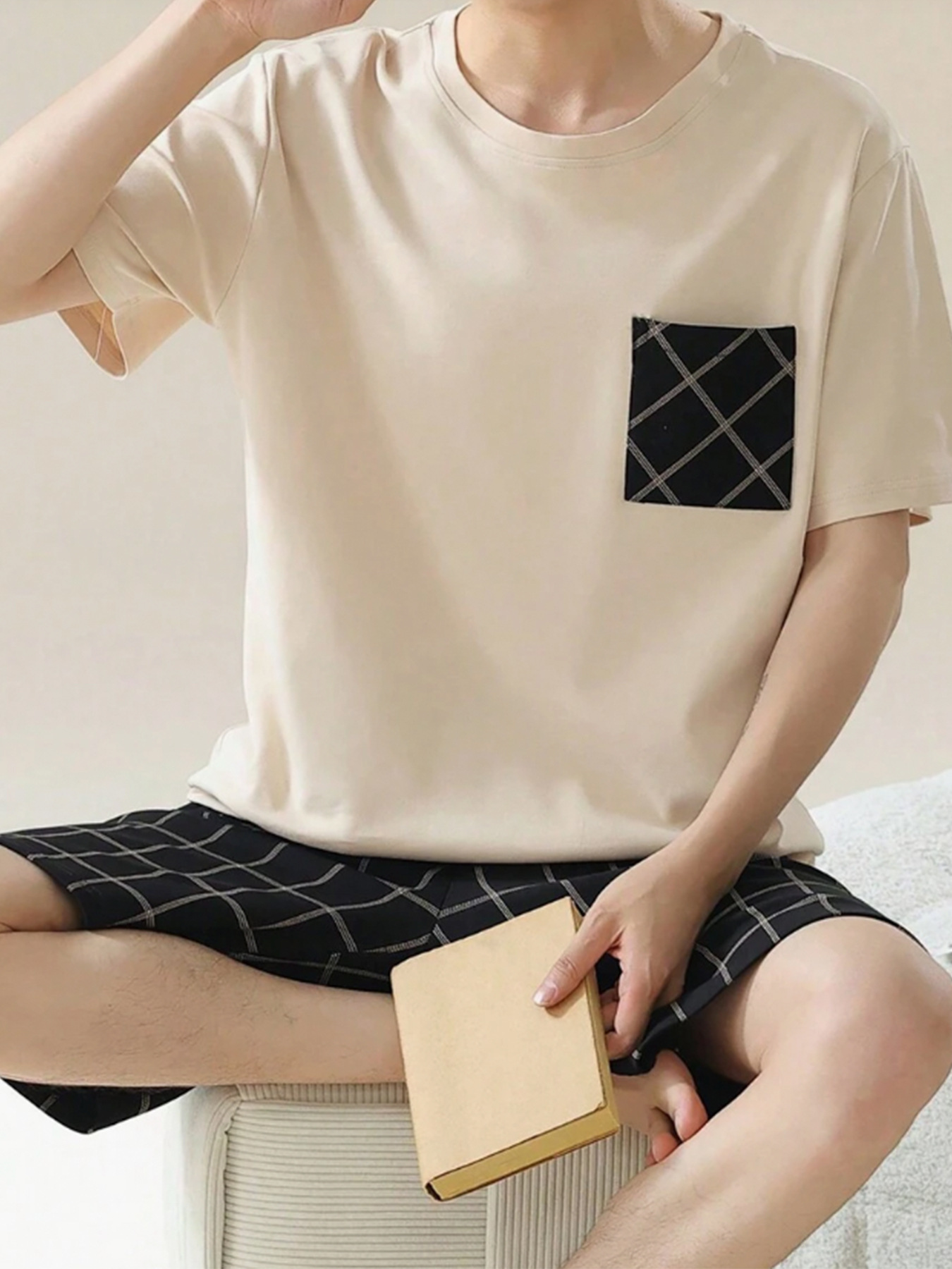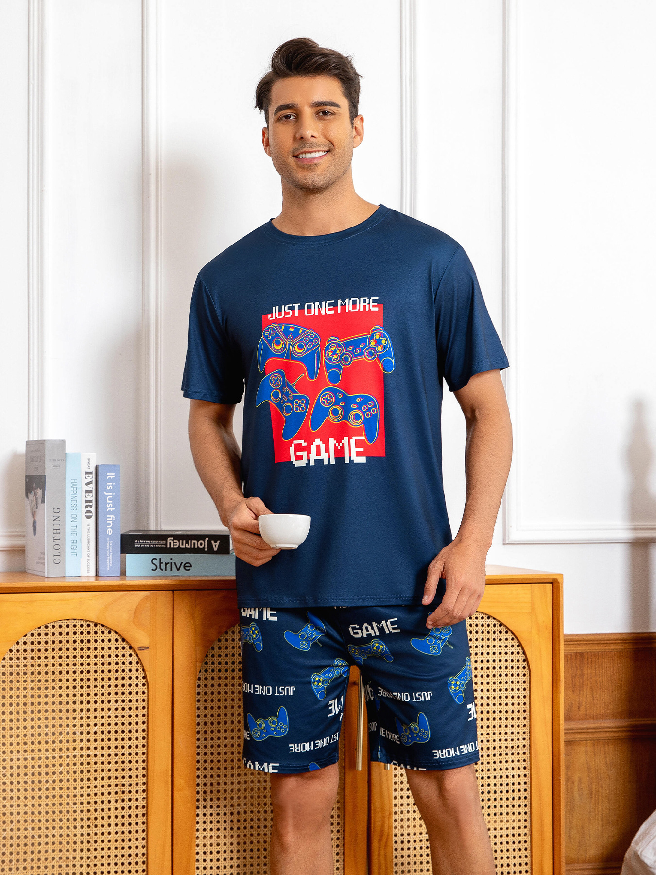 국경 간 대외 무역 남자 잠옷 여름 모조 면 캐주얼 라운드 넥 반팔 반바지 느슨한 홈 의류 세트 착용스토어 가기