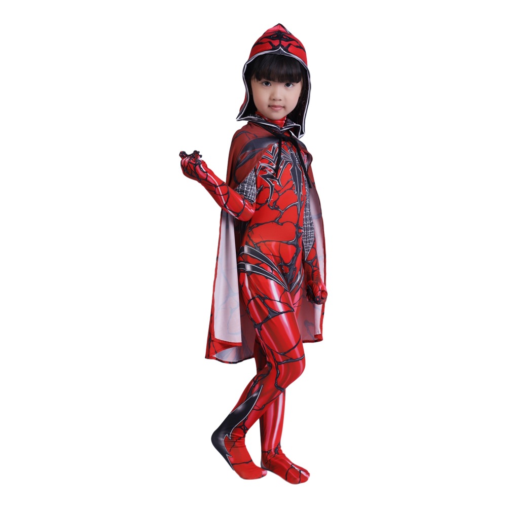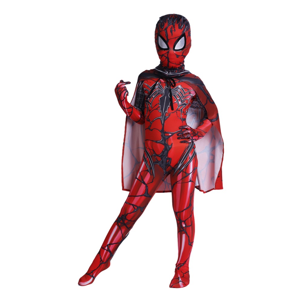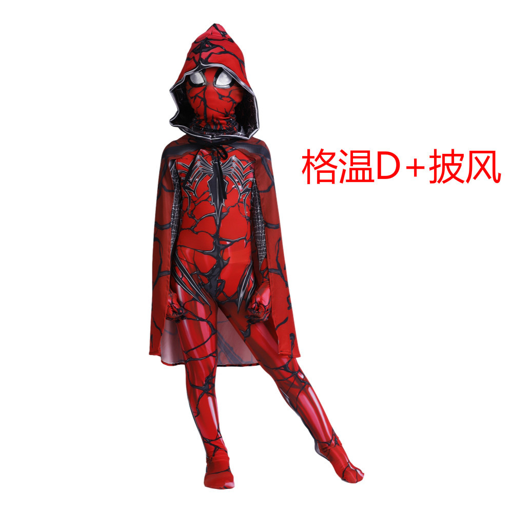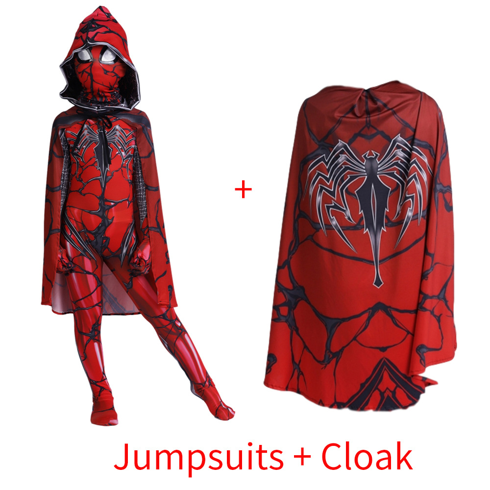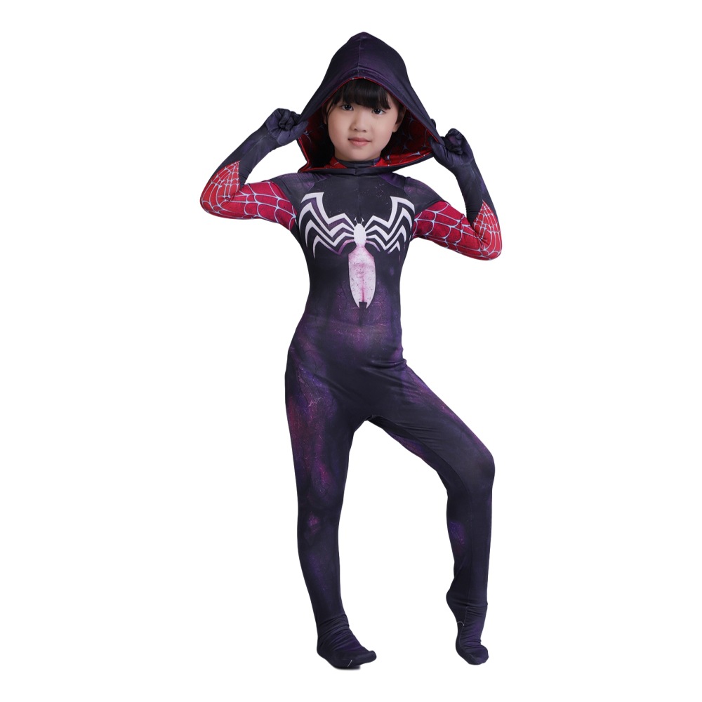 평행 우주 그웬 스파이더 맨 타이트 키즈 할로윈 코스프레 의상 거미 망토 밀크 실크