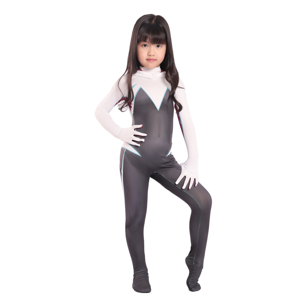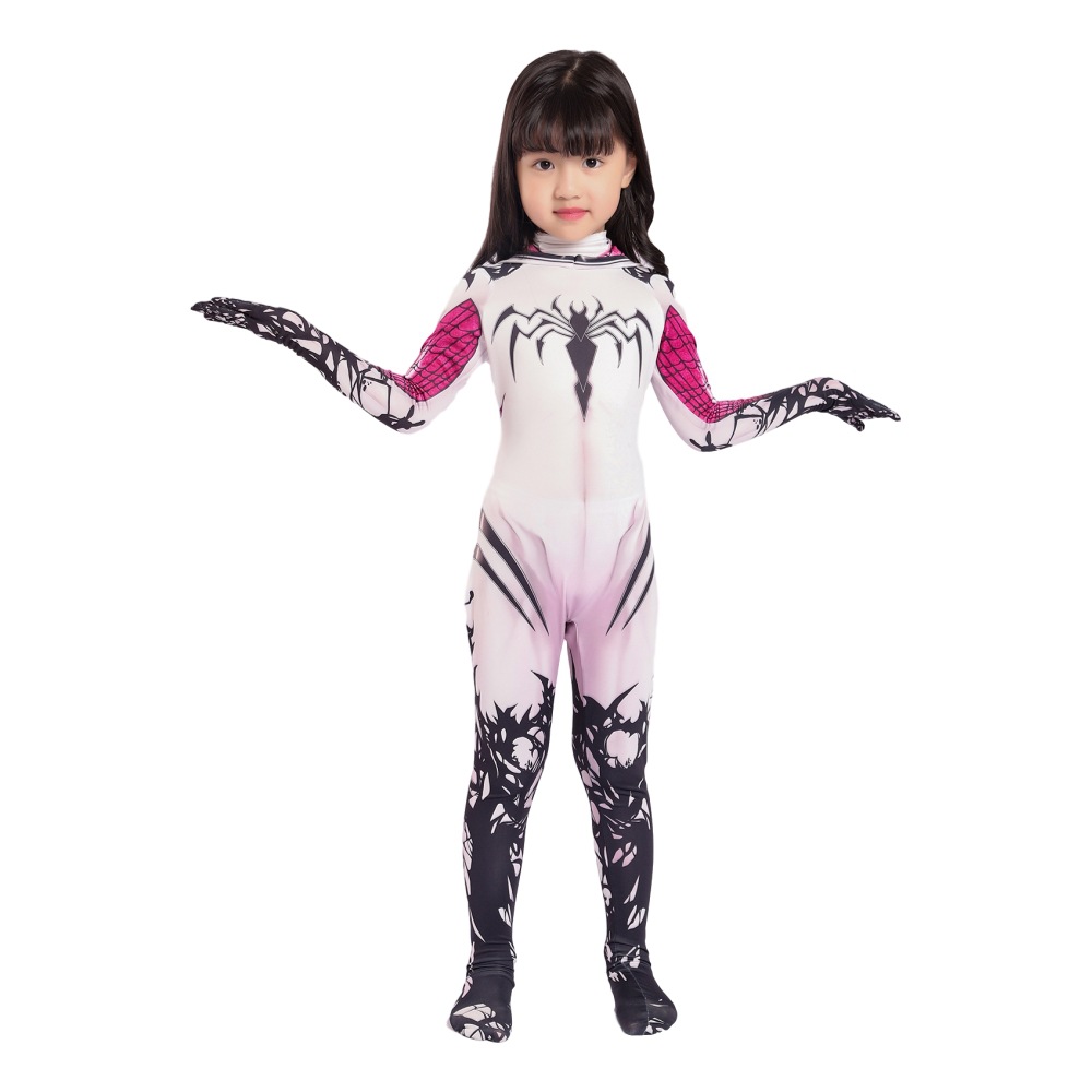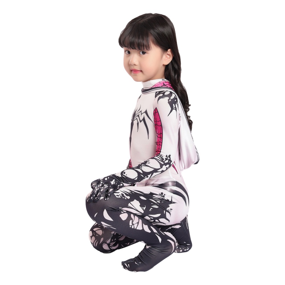 평행 우주 그웬 스파이더 맨 타이트 키즈 할로윈 코스프레 의상 거미 망토 밀크 실크스토어 가기