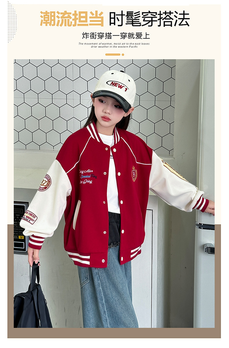 소녀 코트 봄과 가을 2024 새로운 유행 서양 스타일 봄 재킷 중 큰 어린이 봄 야구 옷스토어 가기