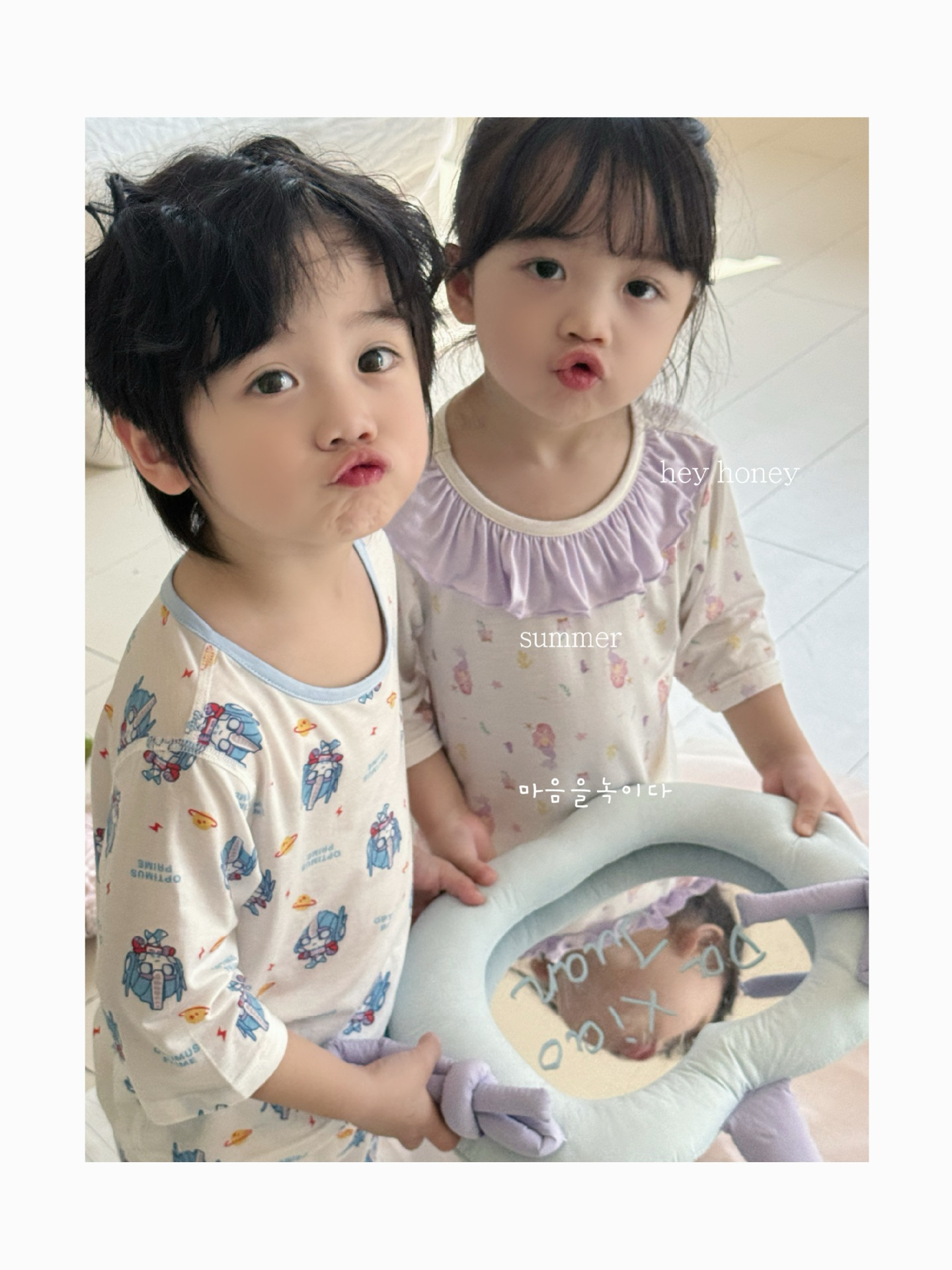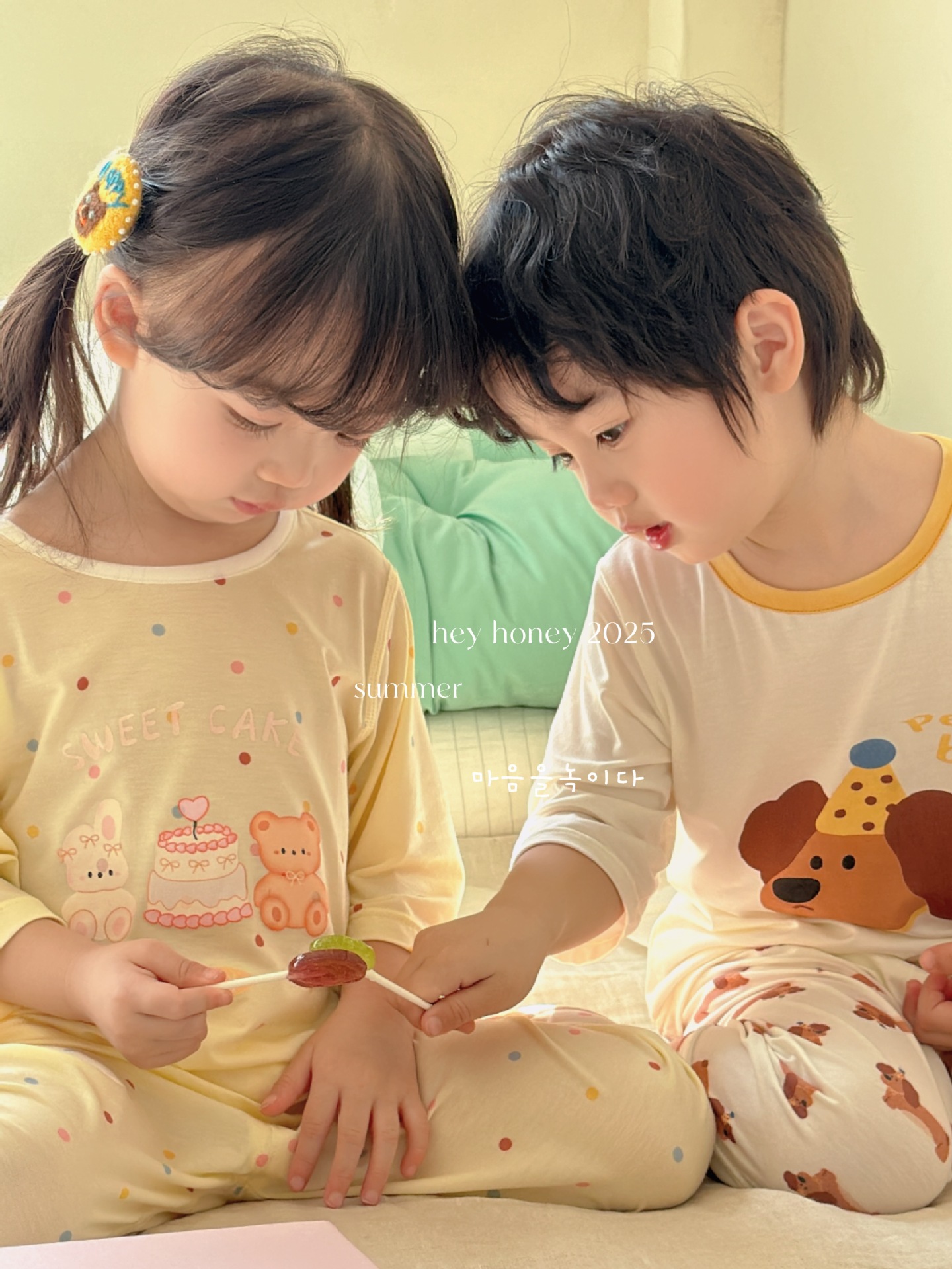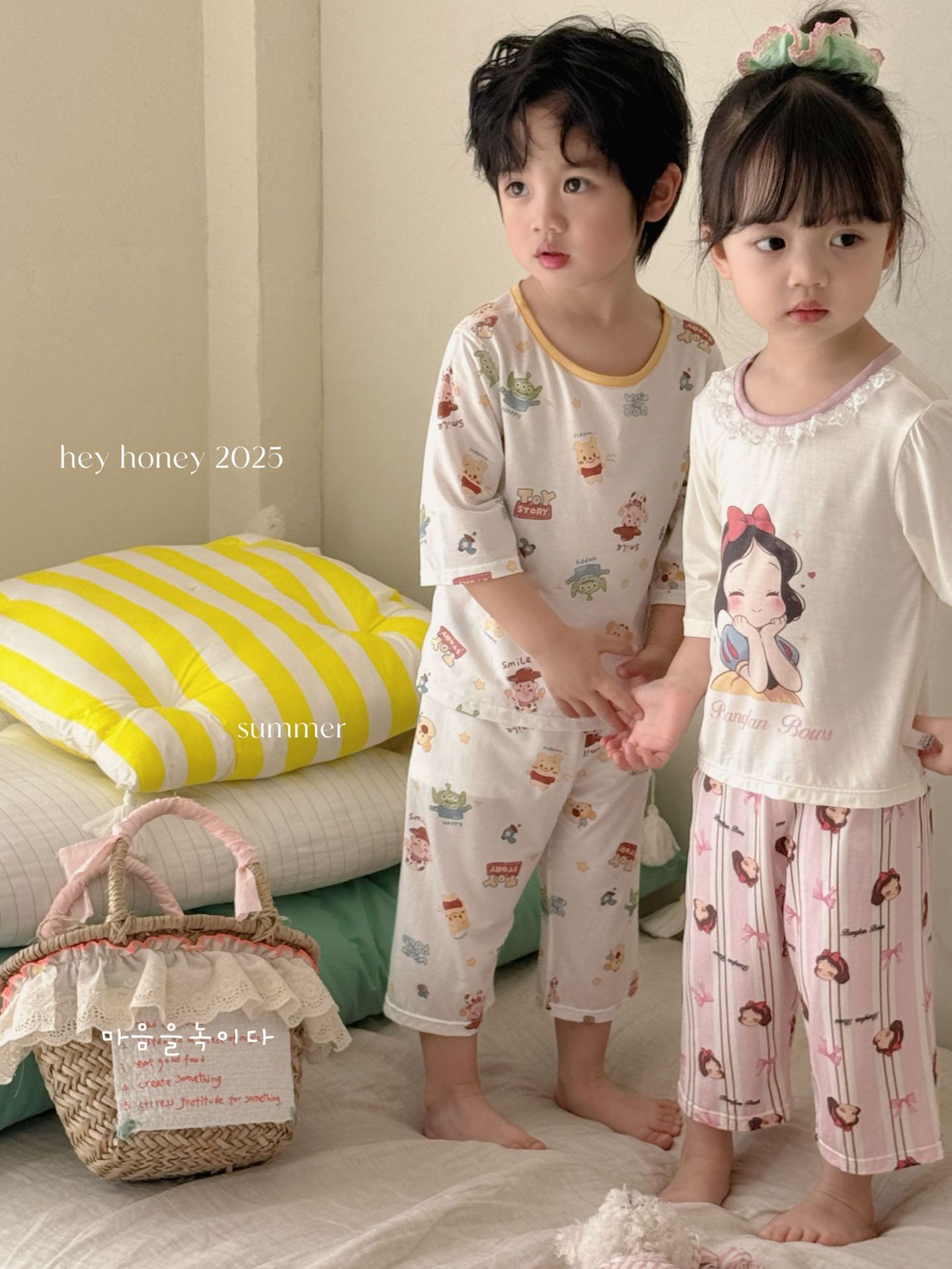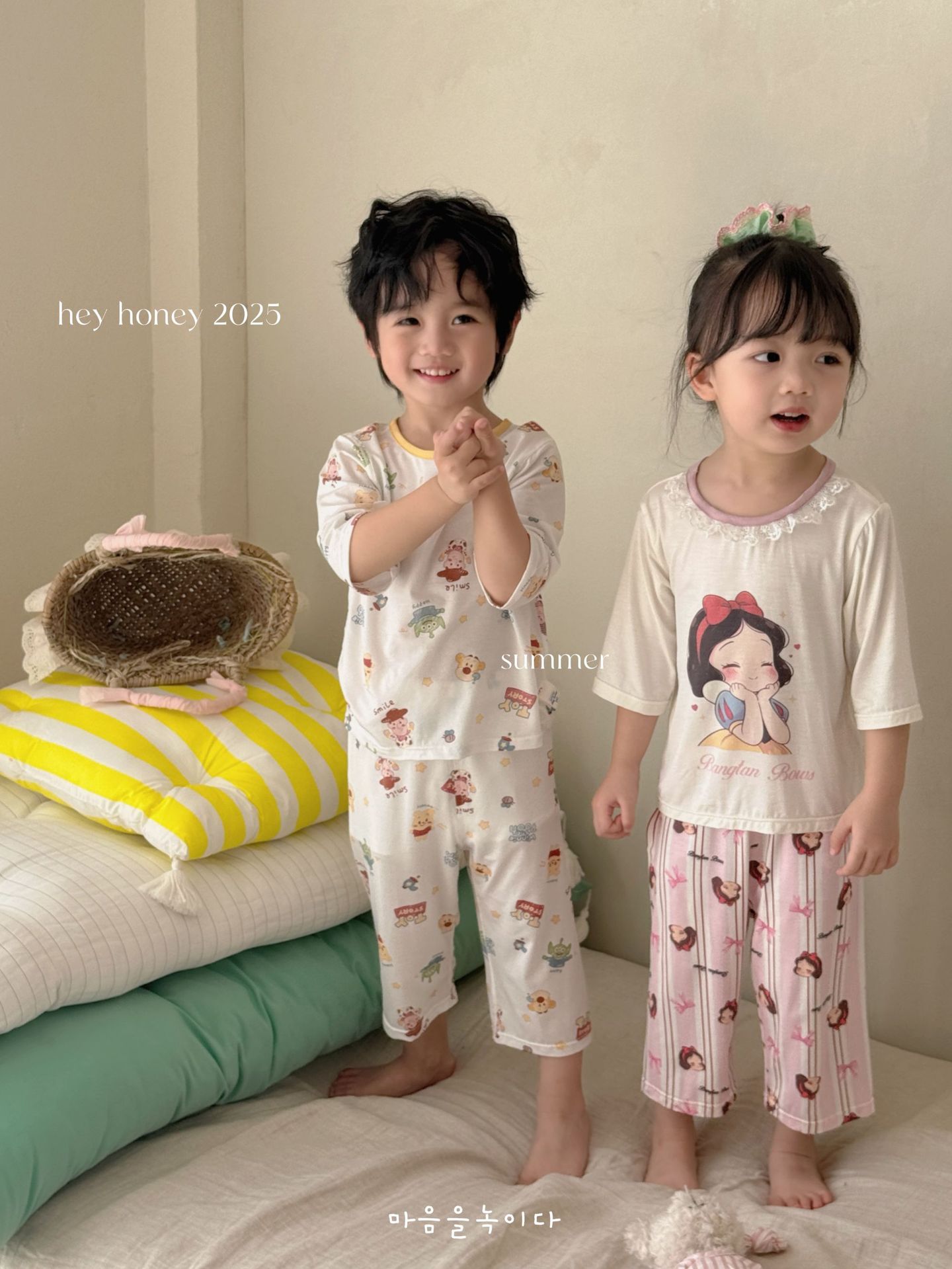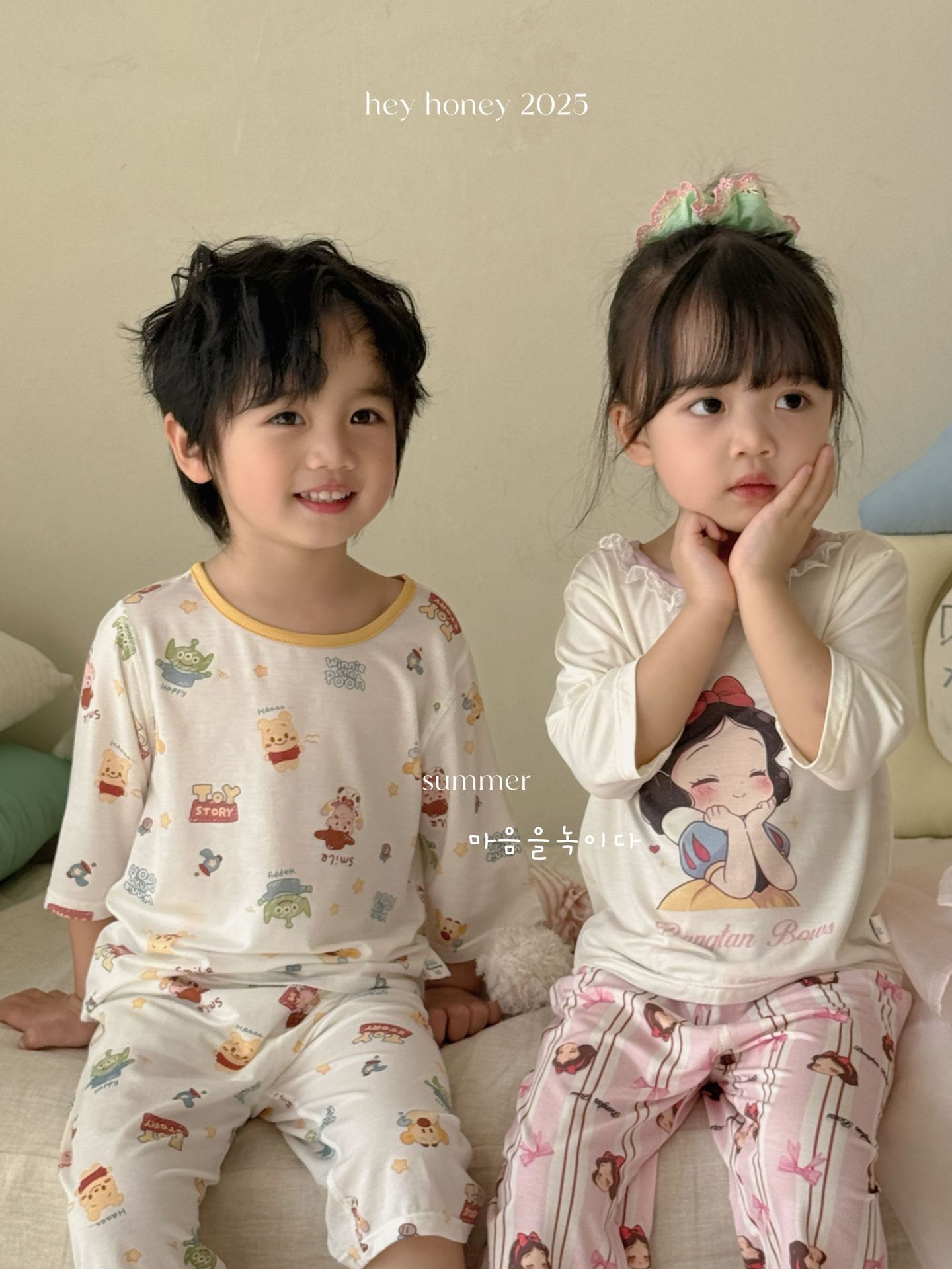 크기 롤 Heyhoney 어린이 가정 의류 세트 lyocell 소년과 소녀 아기 만화 잠옷 봄과 여름