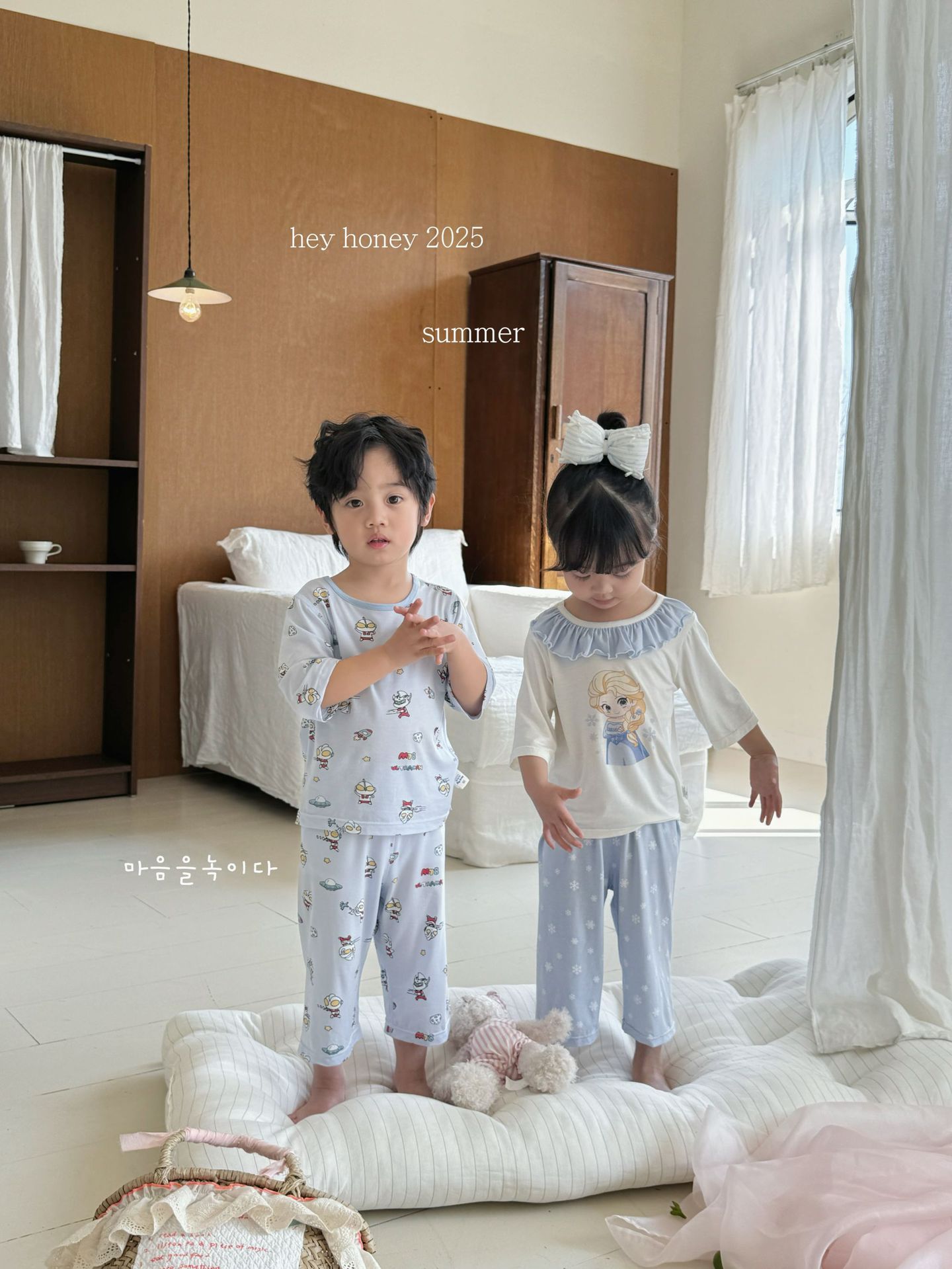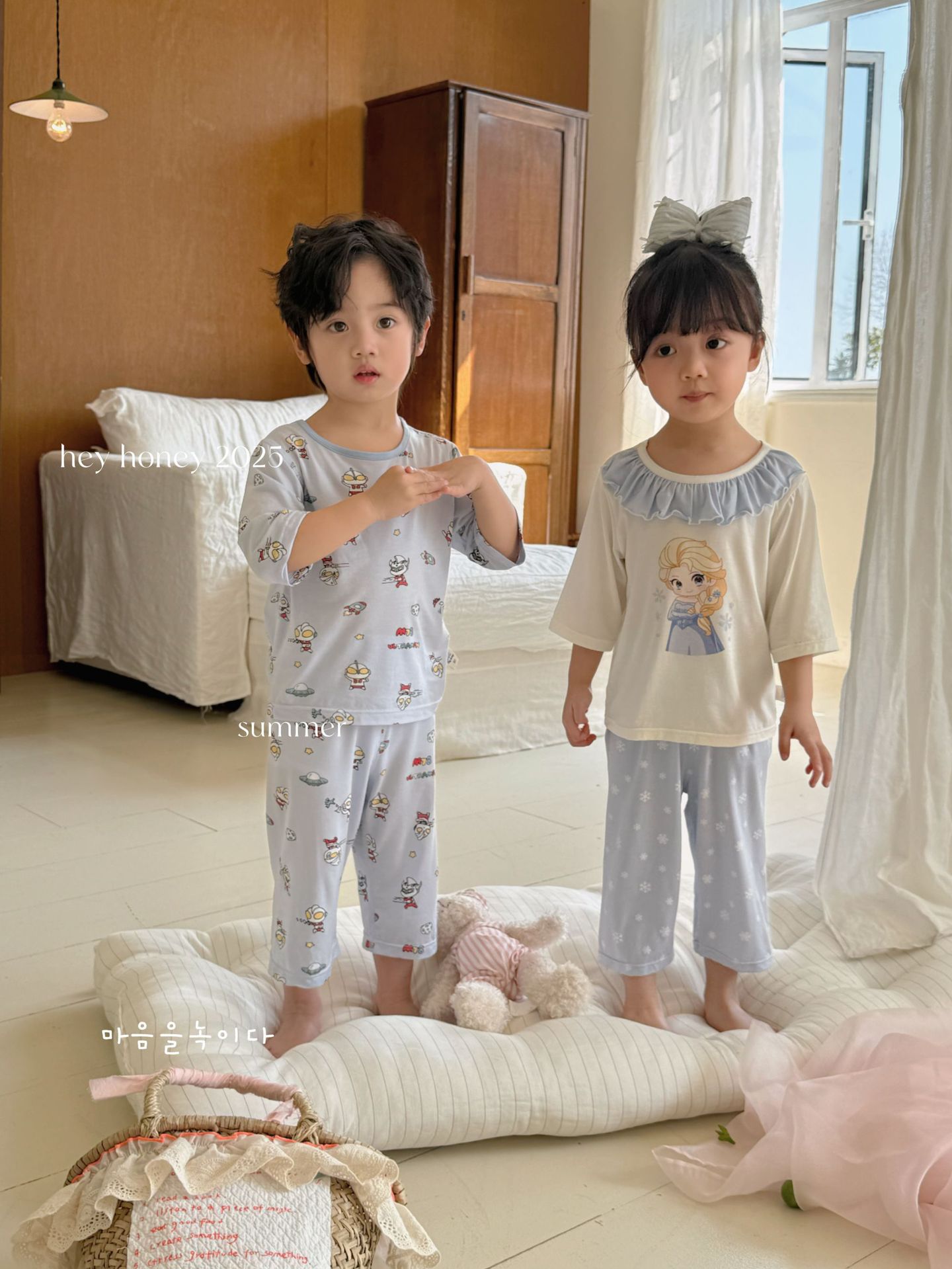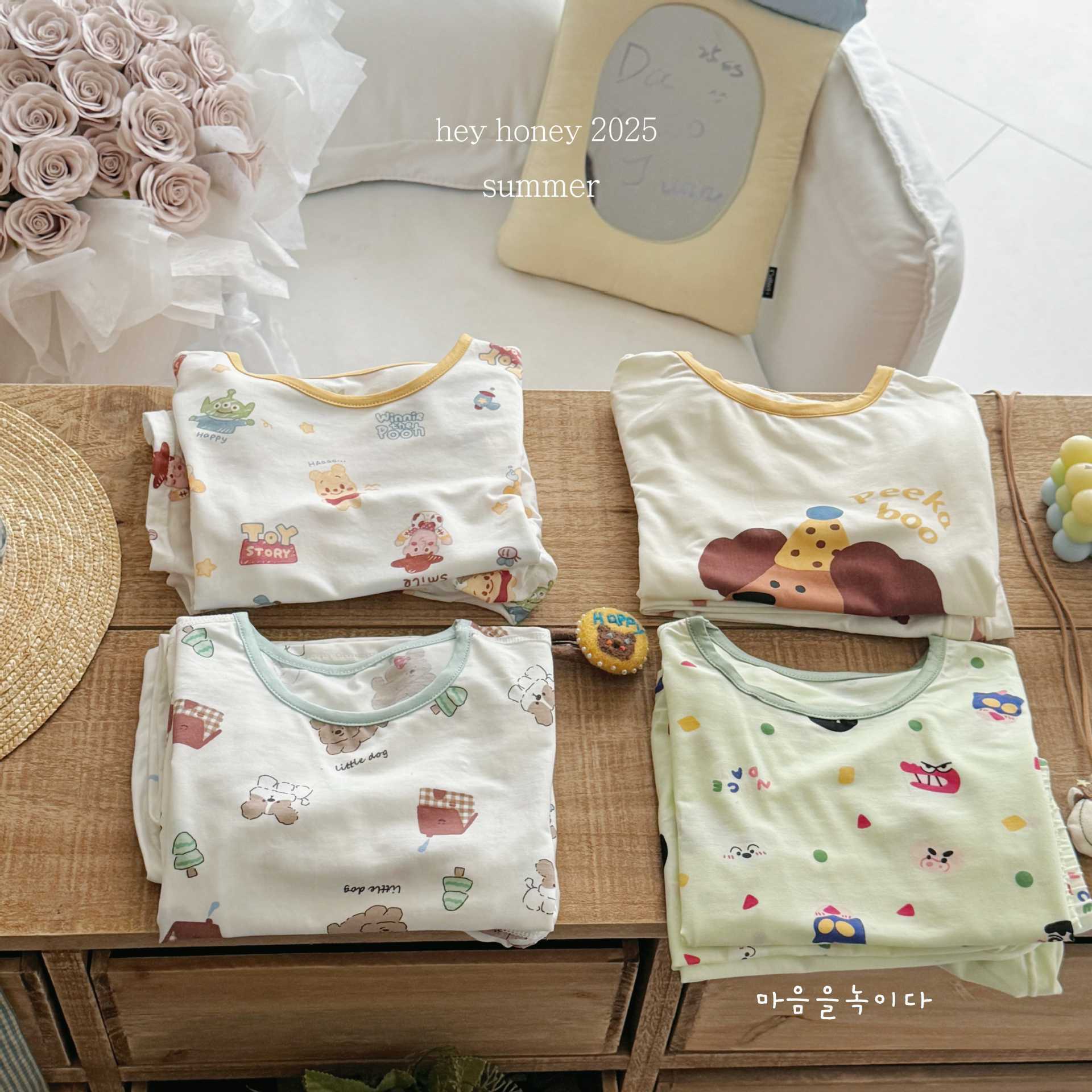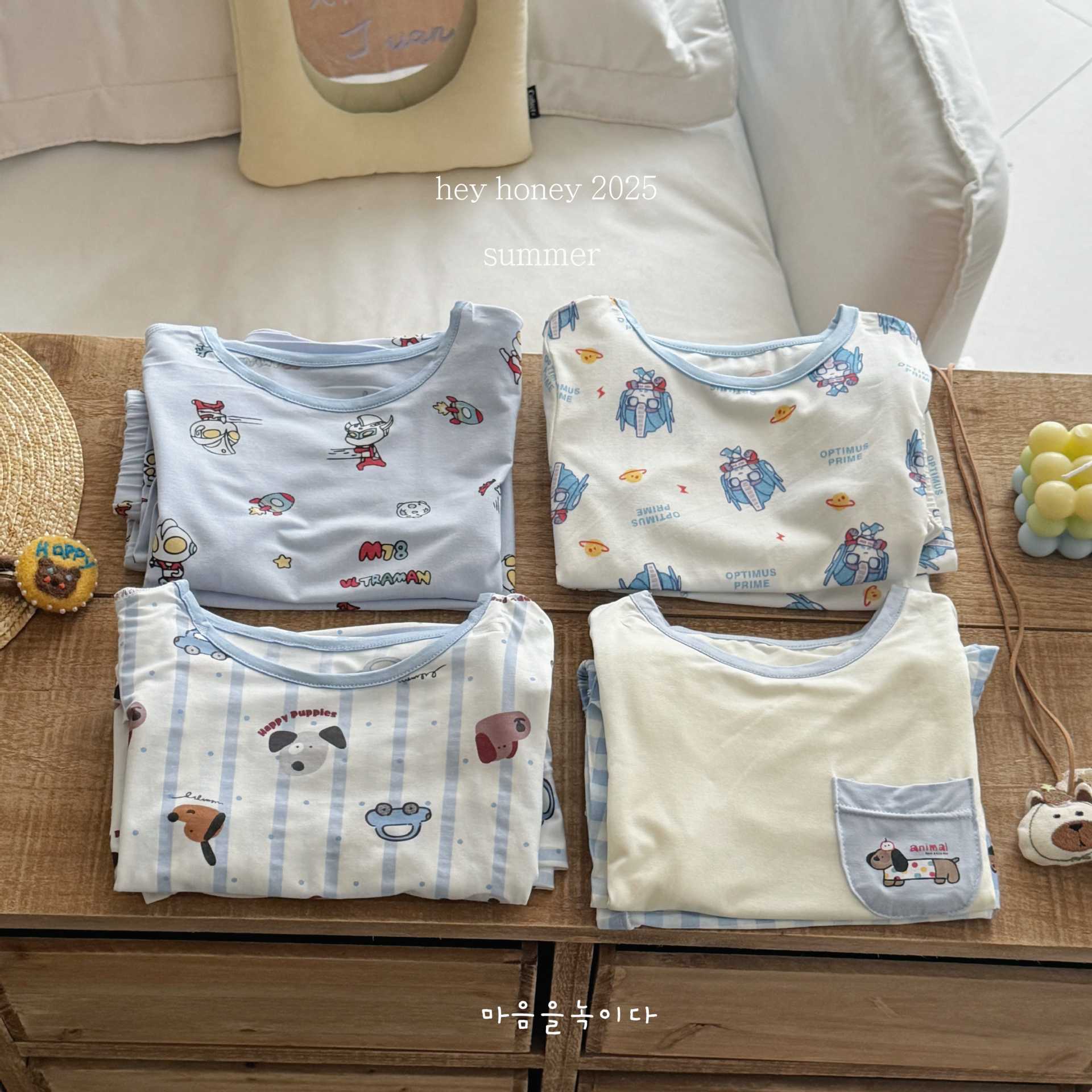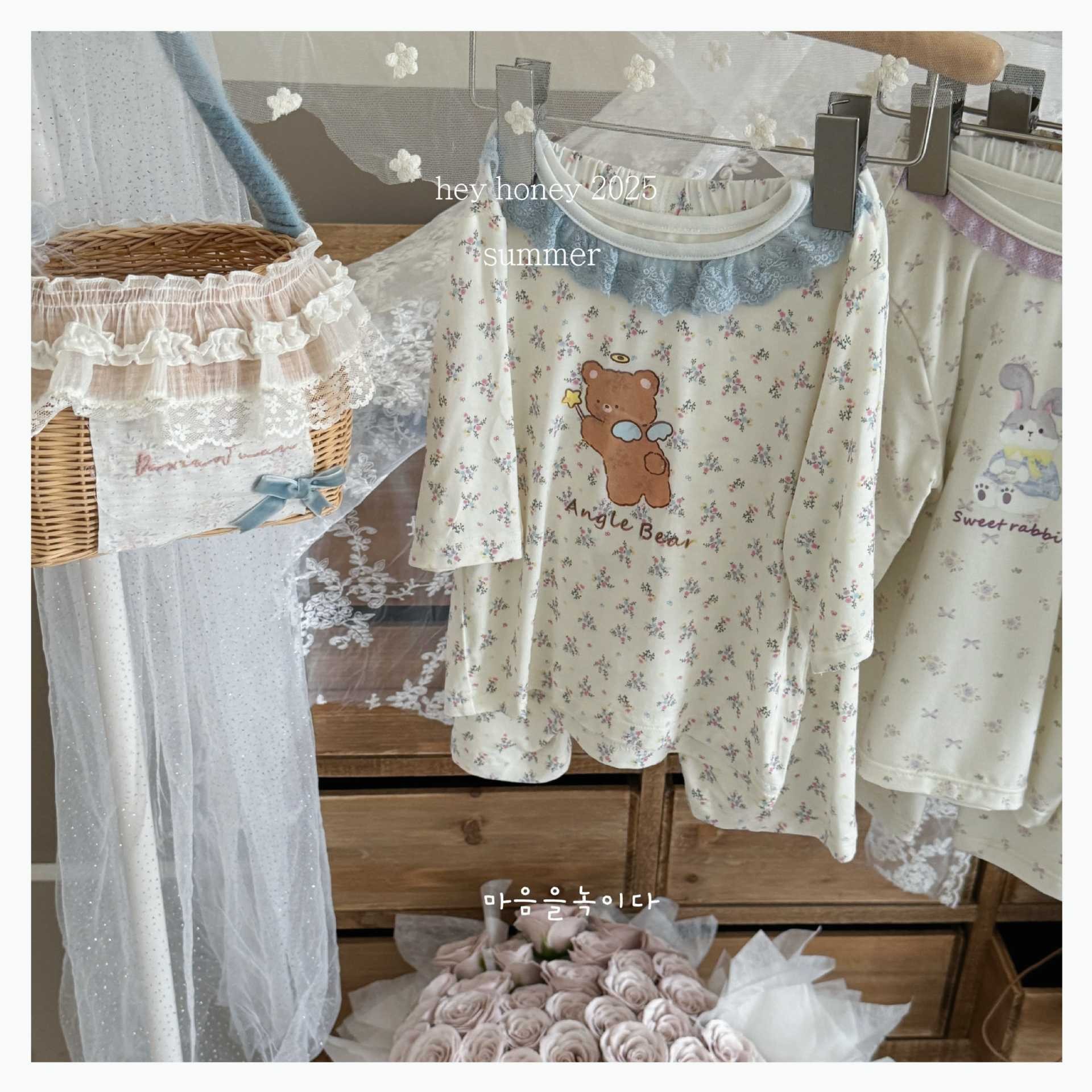 크기 롤 Heyhoney 어린이 가정 의류 세트 lyocell 소년과 소녀 아기 만화 잠옷 봄과 여름스토어 가기