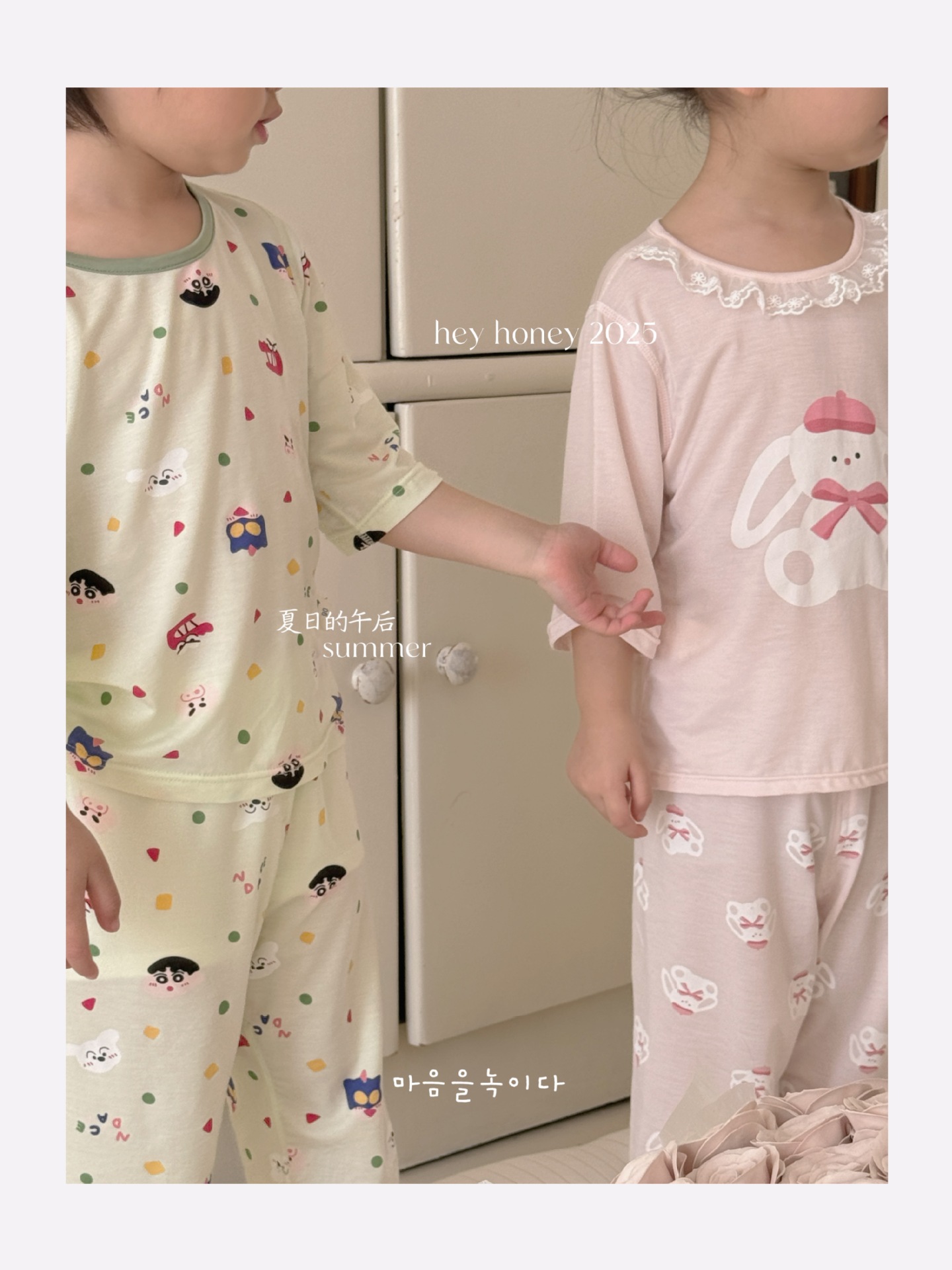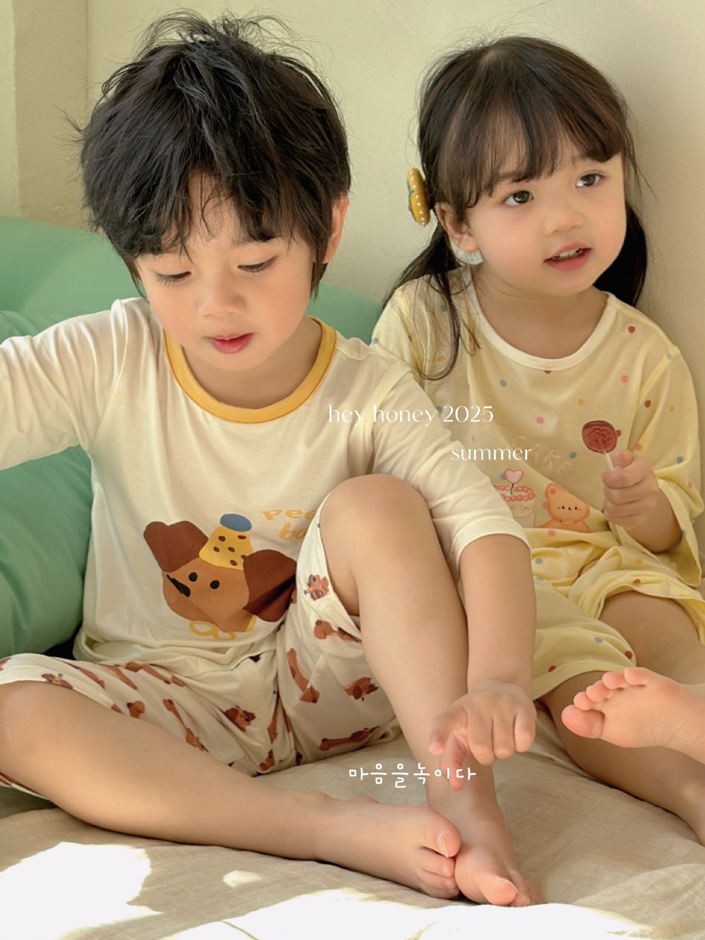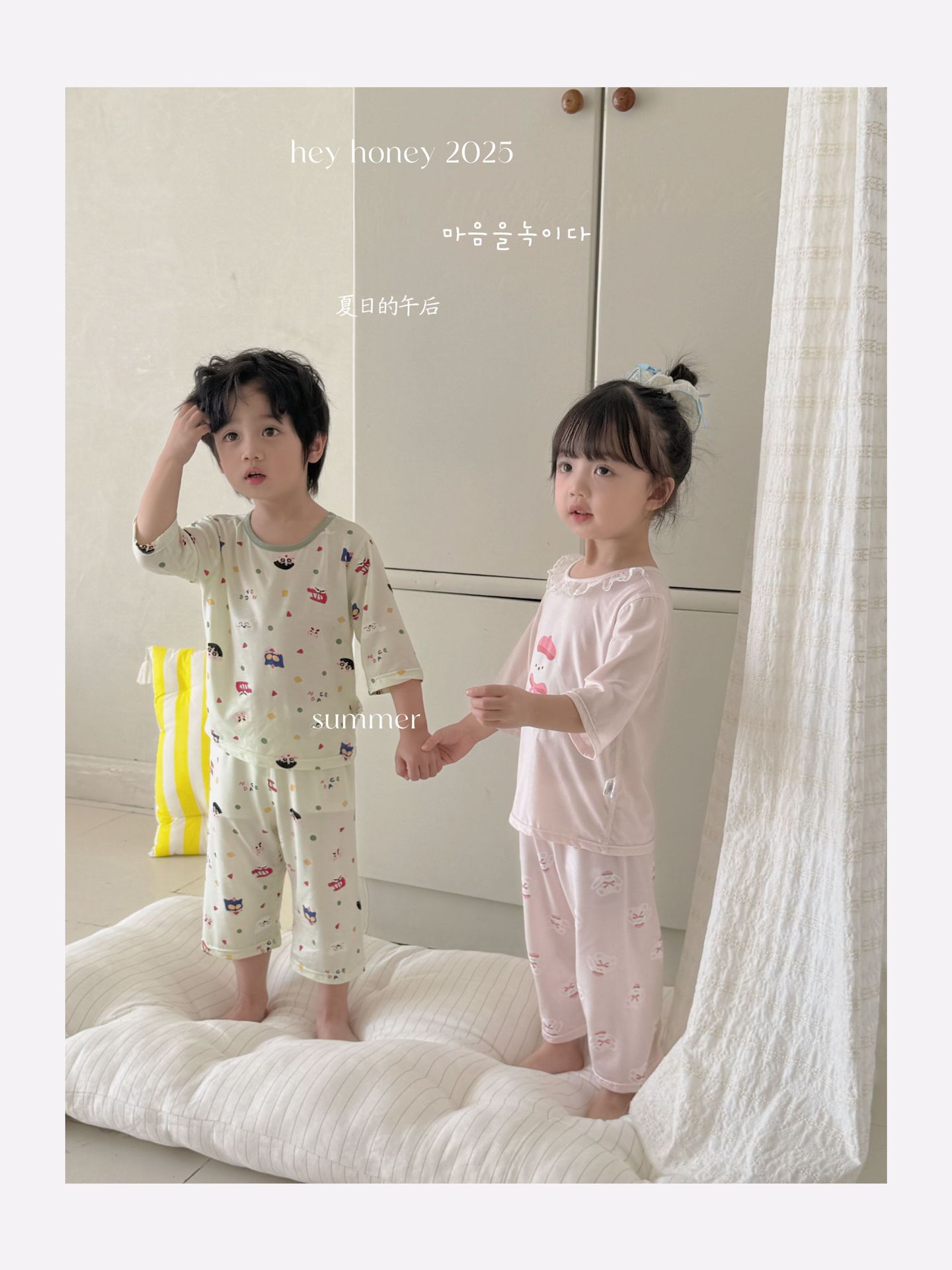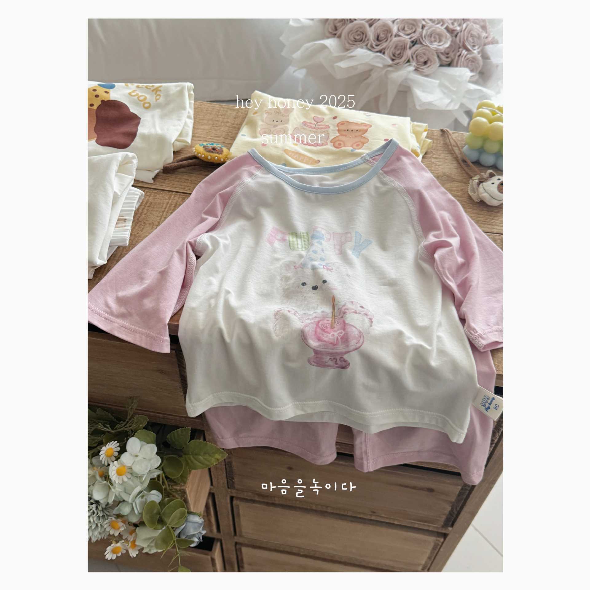 크기 롤 Heyhoney 어린이 가정 의류 세트 lyocell 소년과 소녀 아기 만화 잠옷 봄과 여름스토어 가기