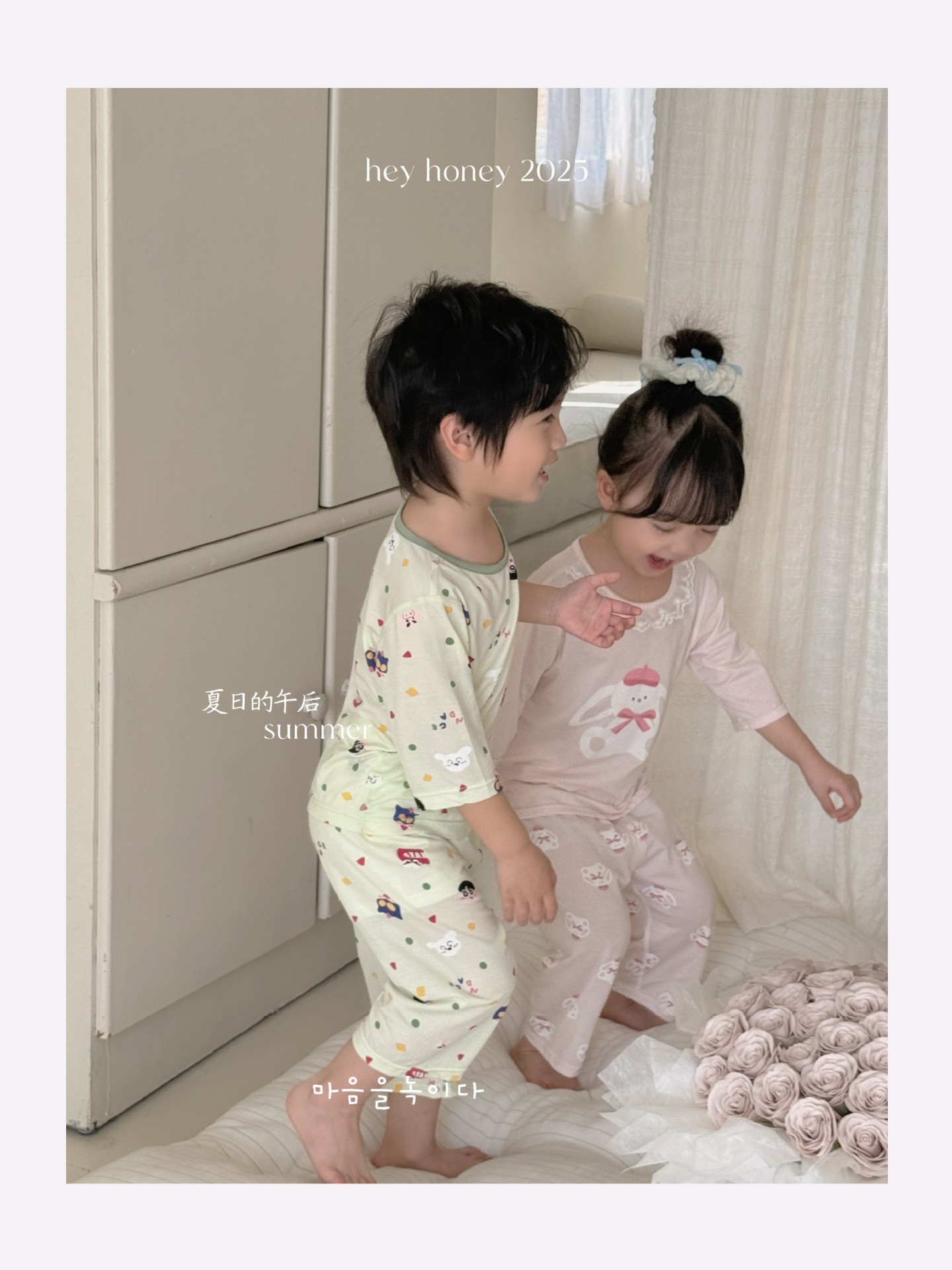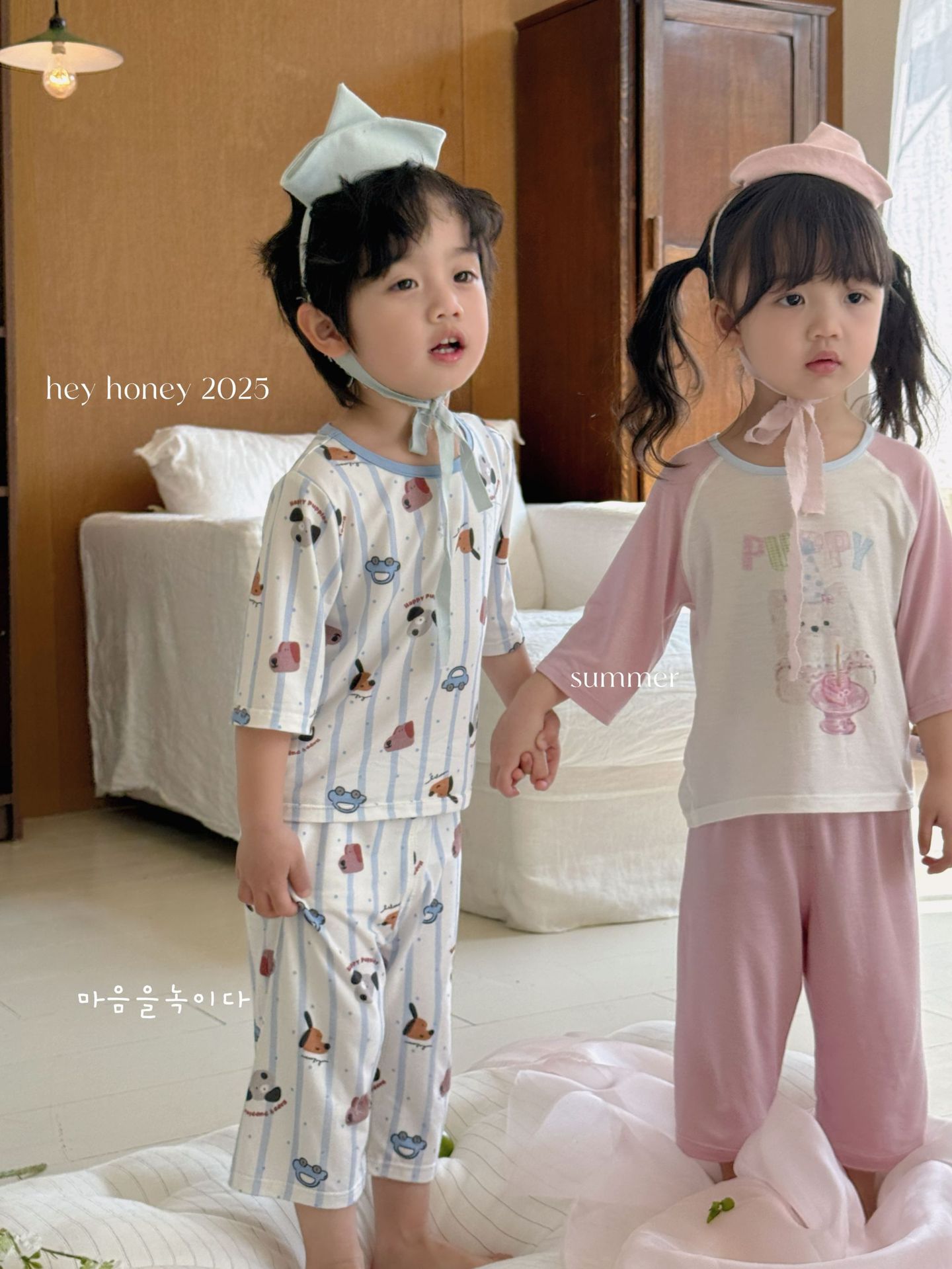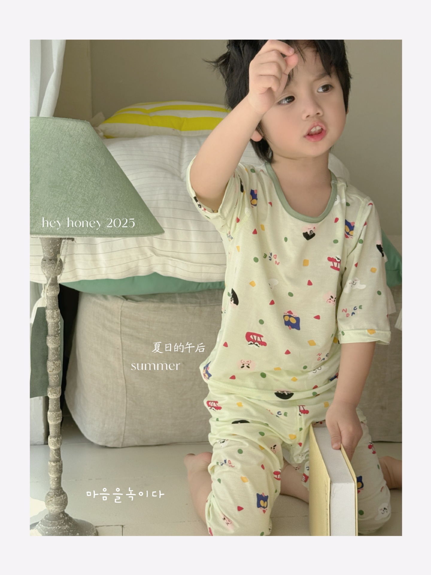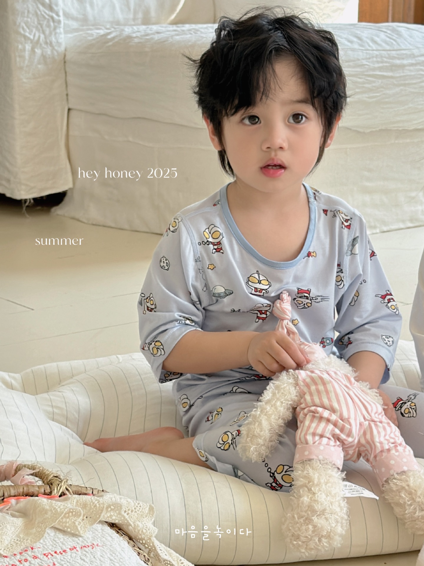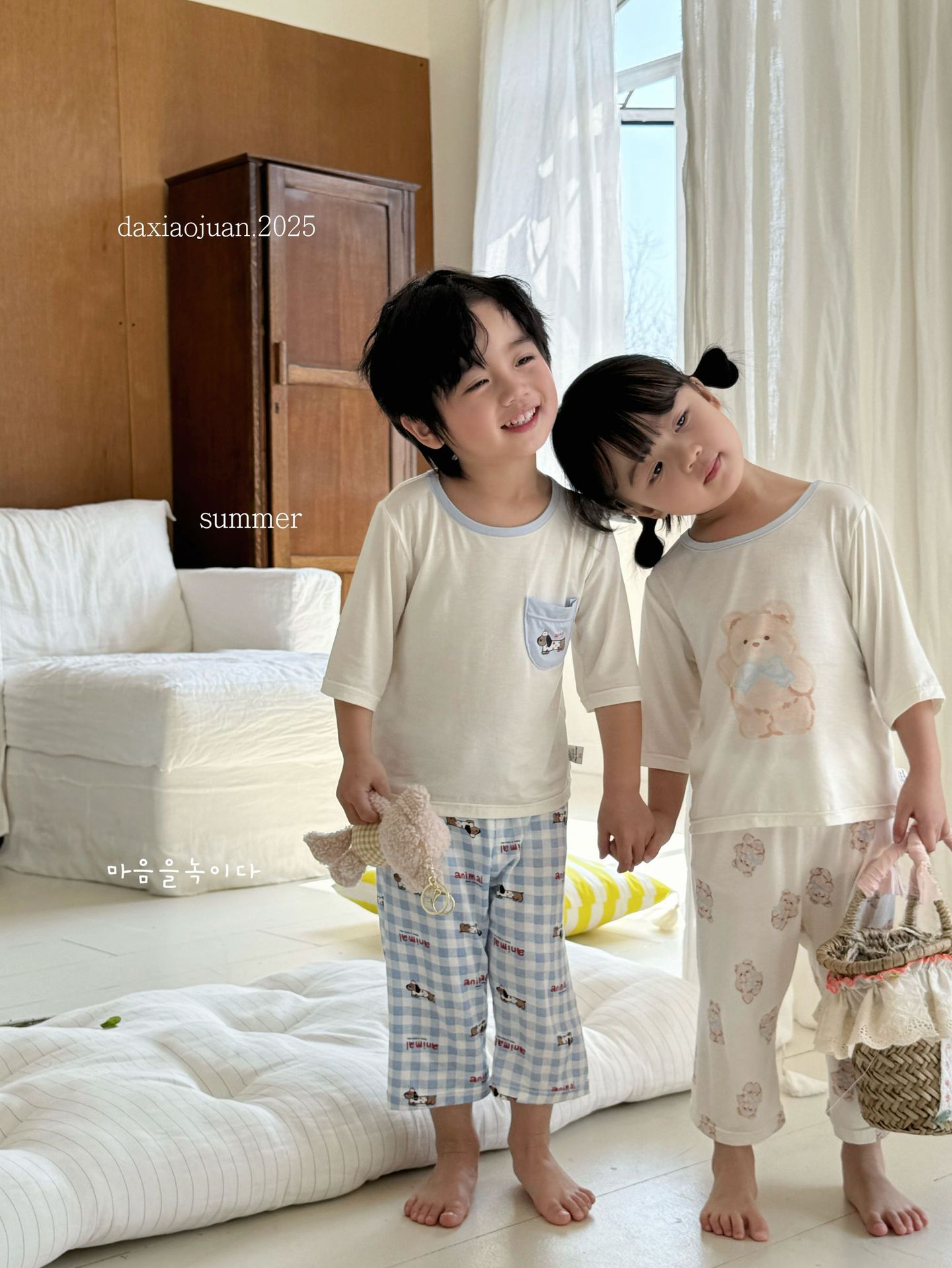 크기 롤 Heyhoney 어린이 가정 의류 세트 lyocell 소년과 소녀 아기 만화 잠옷 봄과 여름스토어 가기