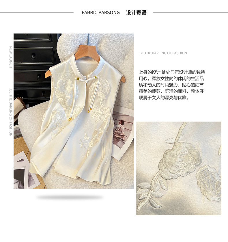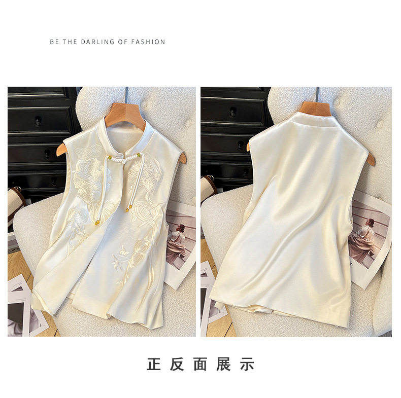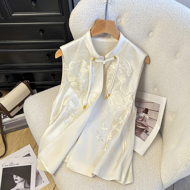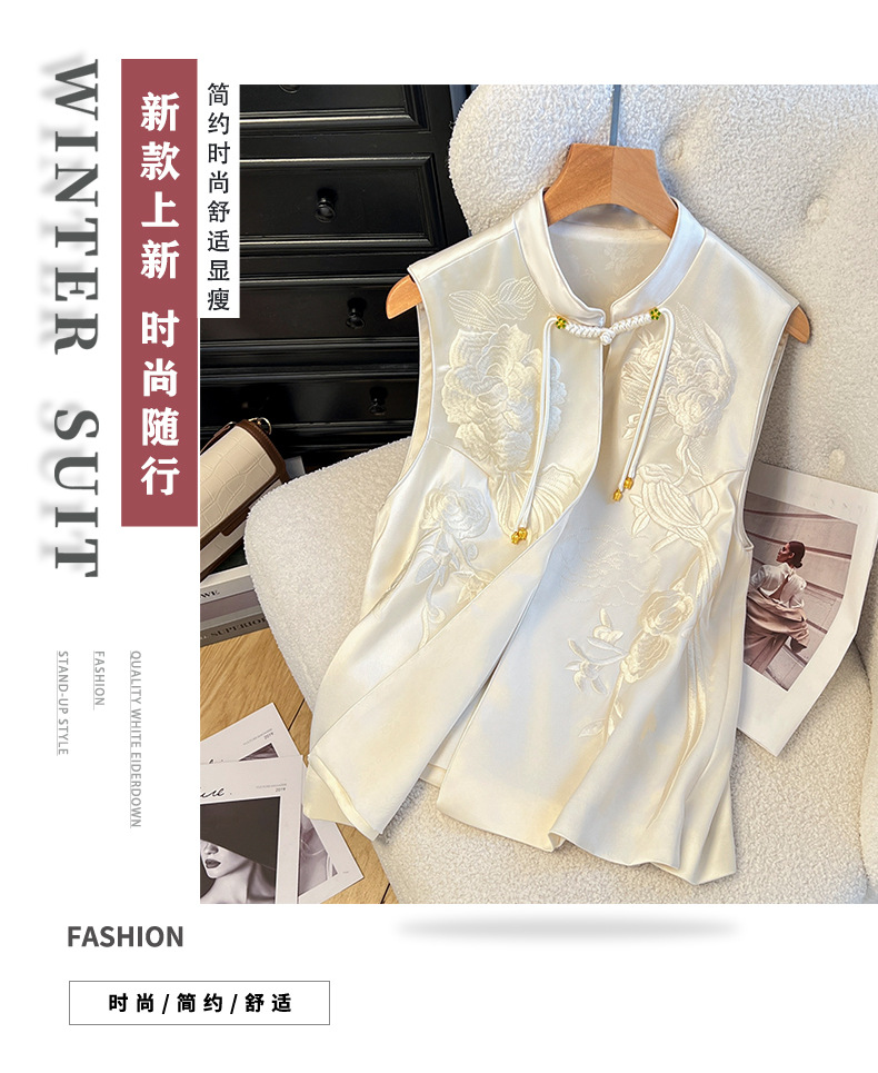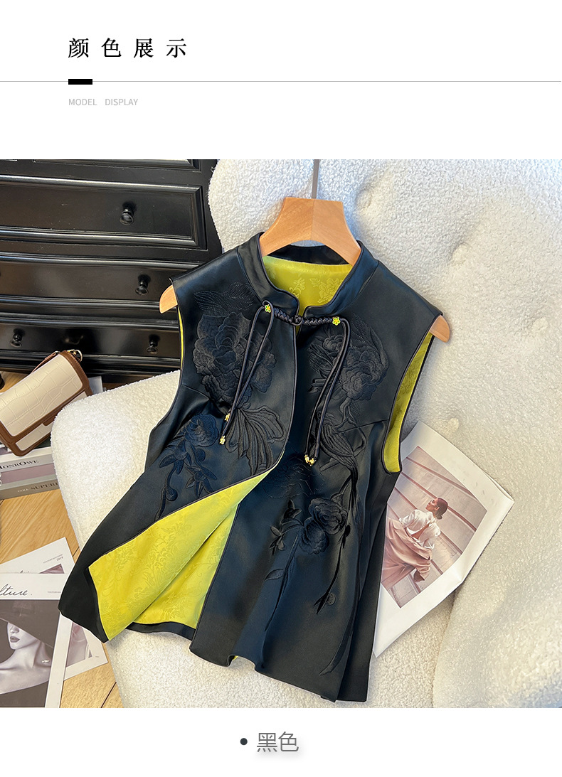 무거운 자수 조끼 여자 2025 년 이른 봄 새로운 도착 버튼 레트로 새로운 중국 스타일 국가 스타일 민소매 재킷 조끼