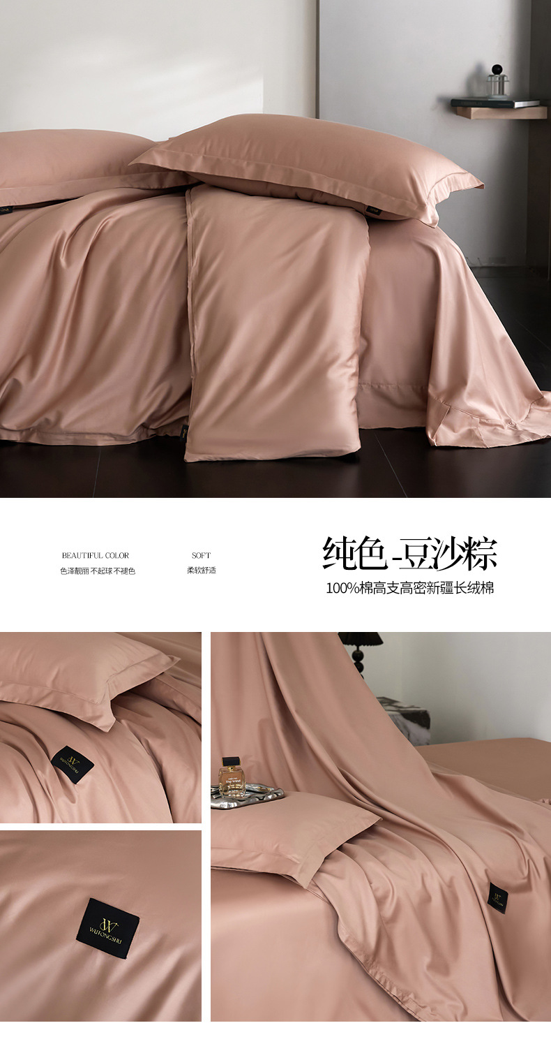 도매 60 년대 긴 스테이플 코튼 솔리드 컬러 더블 스펠 4 피스 세트 일반 면 침대 모자 퀼트 커버 침대 시트 침구 키트