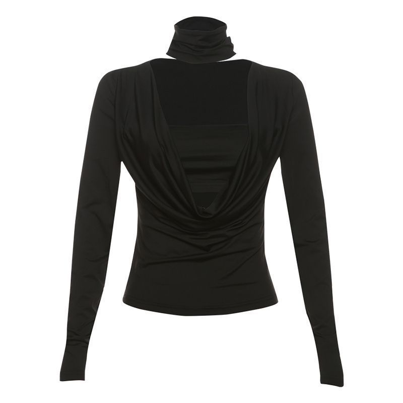 미국 스파이스 소녀 딥 V 넥 긴팔 블라우스 티셔츠 여성 아티스트 매운 소녀 슬림 핏 스윙 칼라 탑 투피스 세트