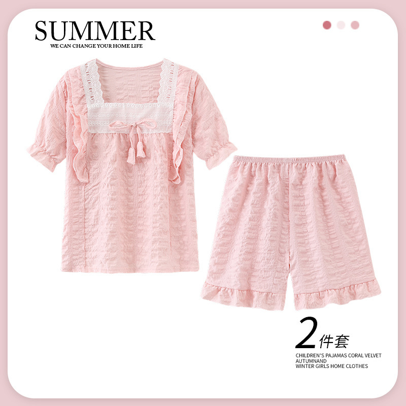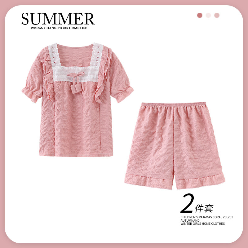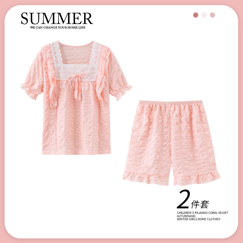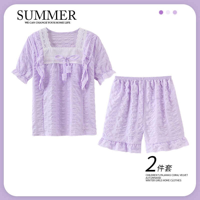 소녀 잠옷 여름 구름 면 반팔 얇은 2025 어린이 및 소녀 여름 세트 홈 옷