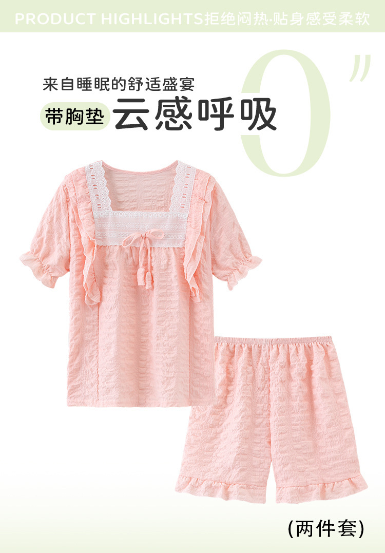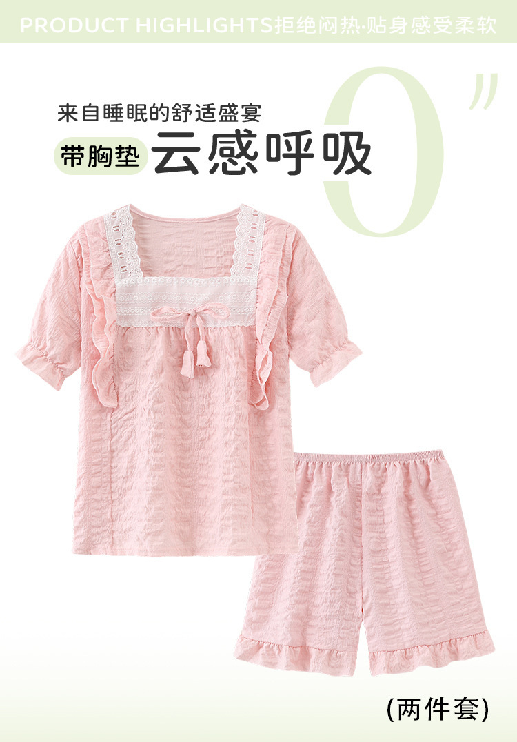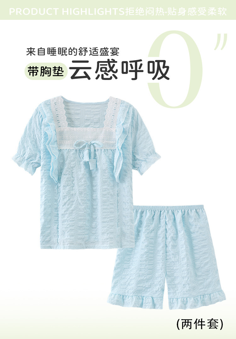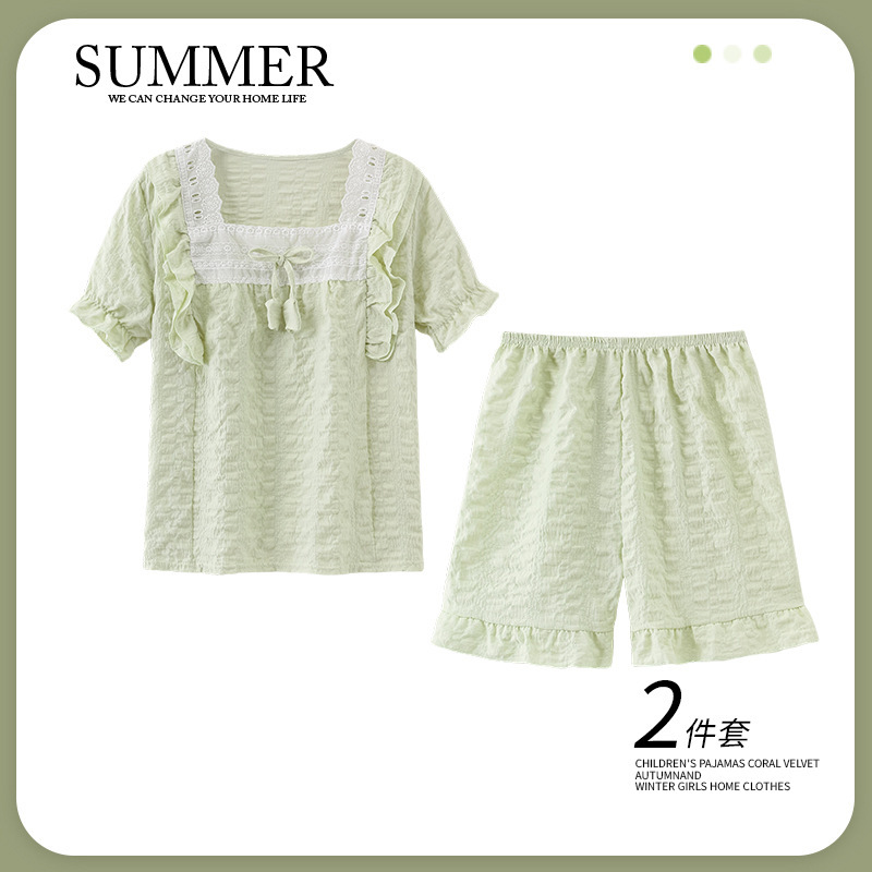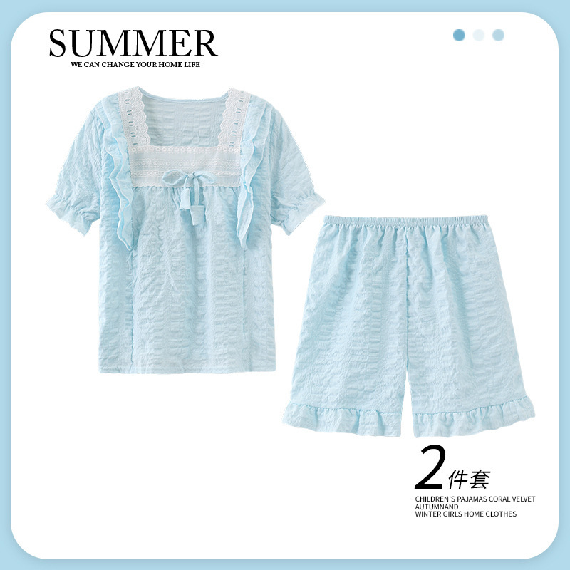 소녀 잠옷 여름 구름 면 반팔 얇은 2025 어린이 및 소녀 여름 세트 홈 옷스토어 가기