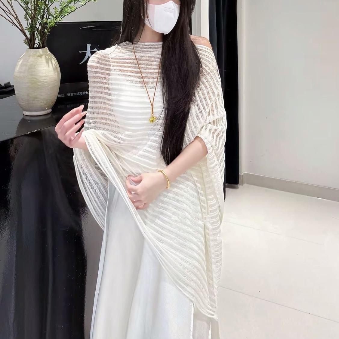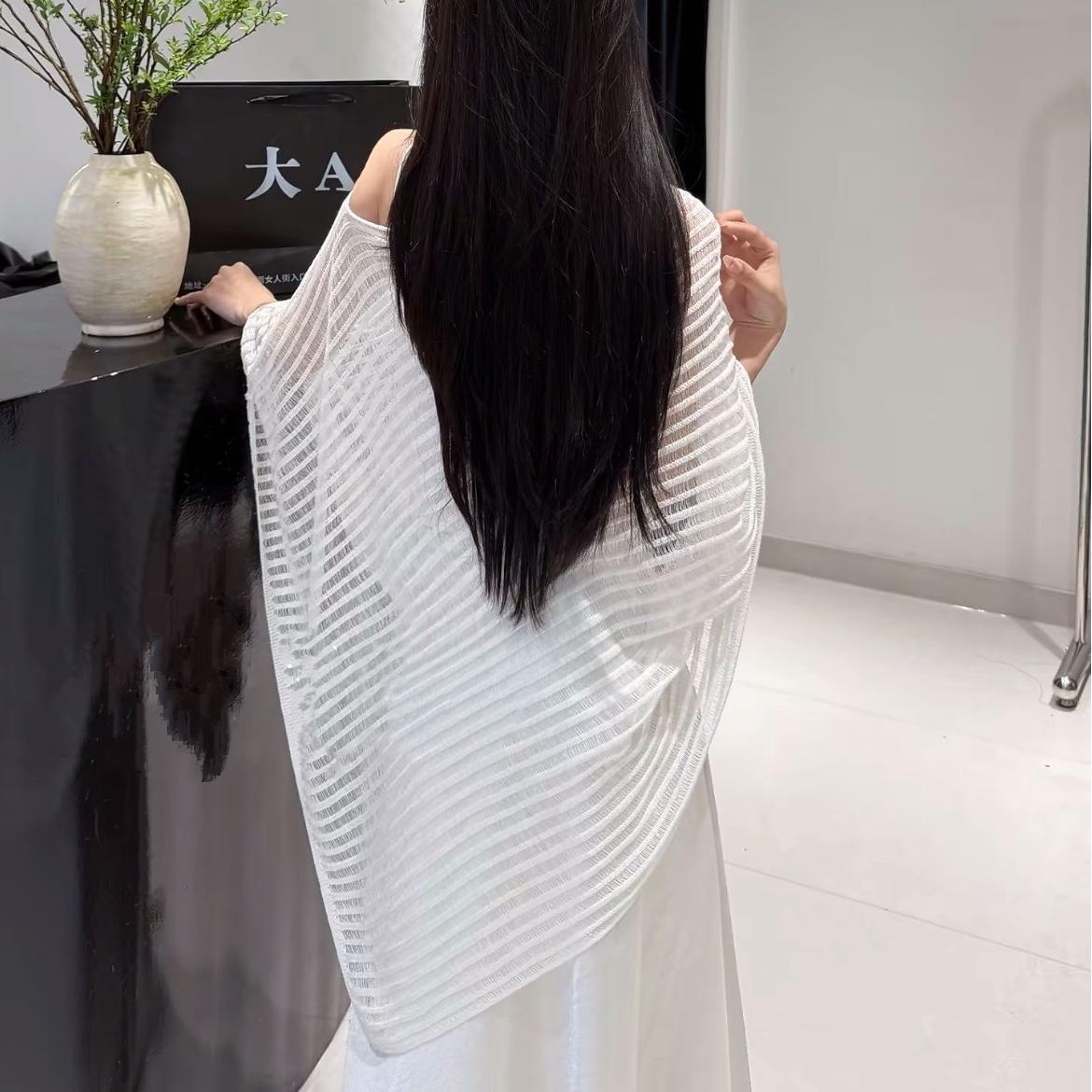 한국 스타일 게으른 스타일 슬랜트 칼라 할로우 니트 스웨터 여자 2025 년 여름 새 레트로 불규칙한 줄무늬 니트 블라우스스토어 가기