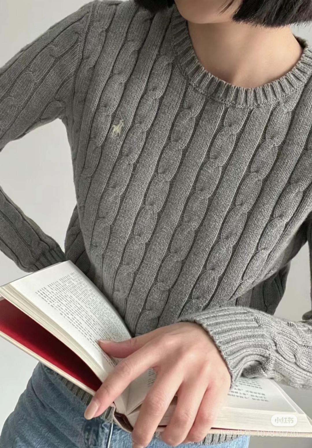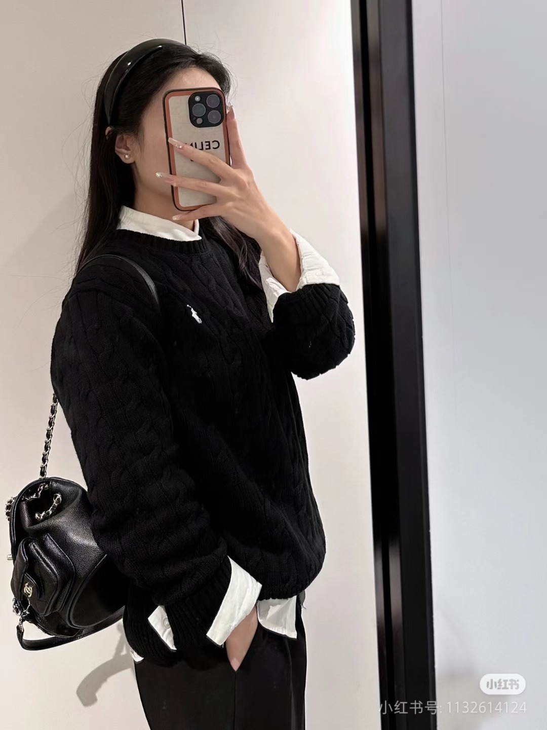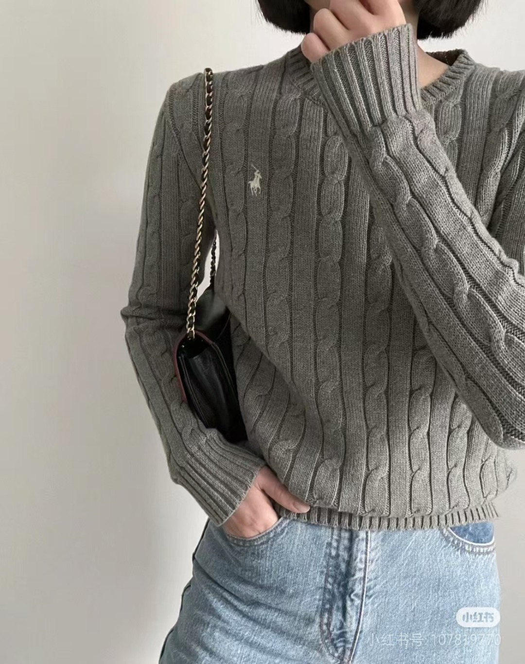 24 새로운 크로스 보더 랄프 로렌 랄 로렌 라운드 넥 솔리드 컬러 포니 자수 로고 트위스트 니트 스웨터스토어 가기