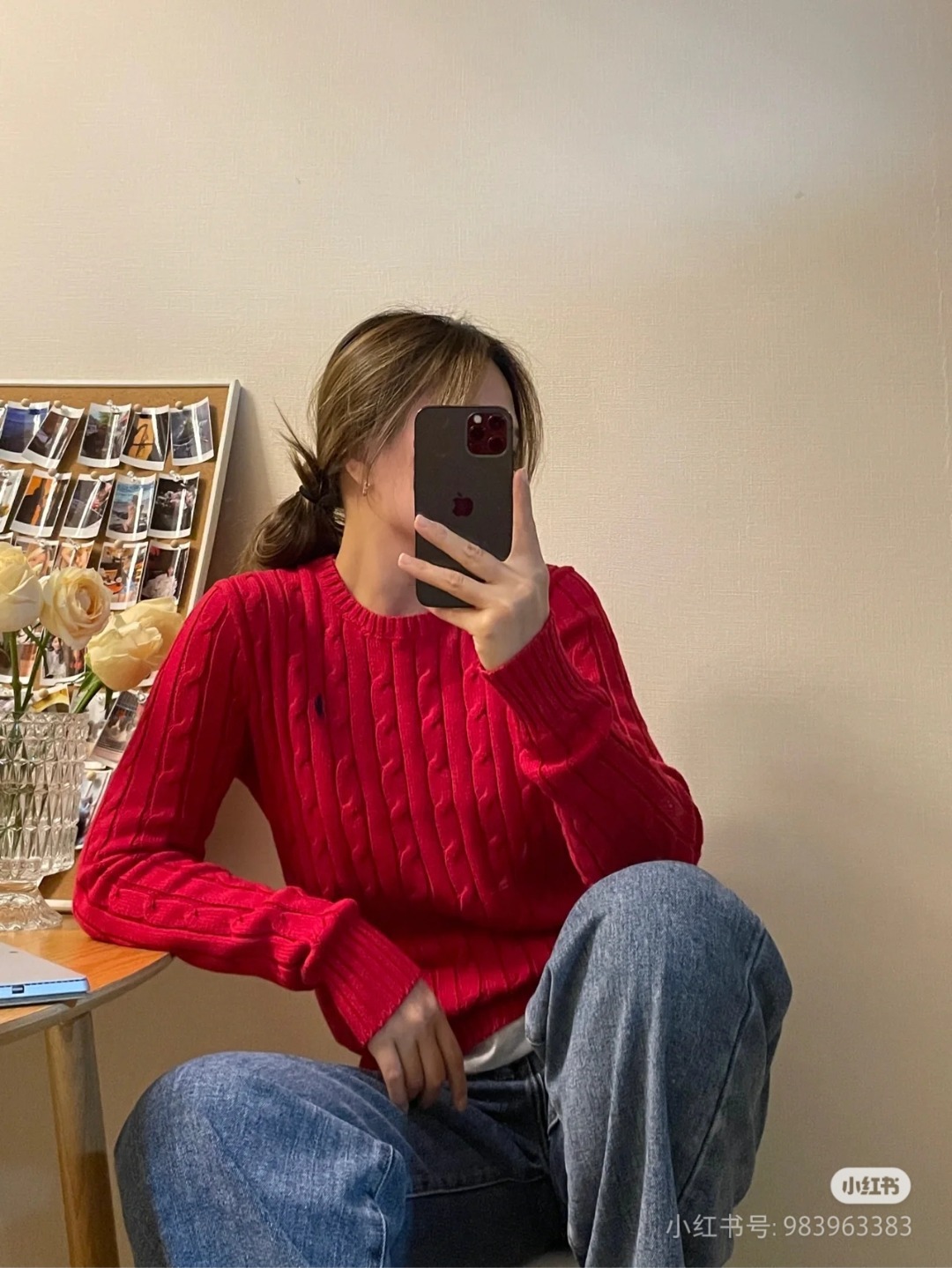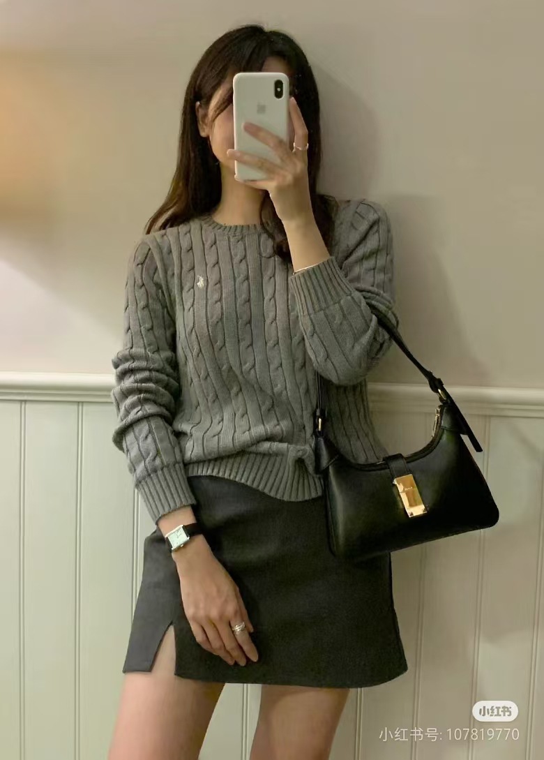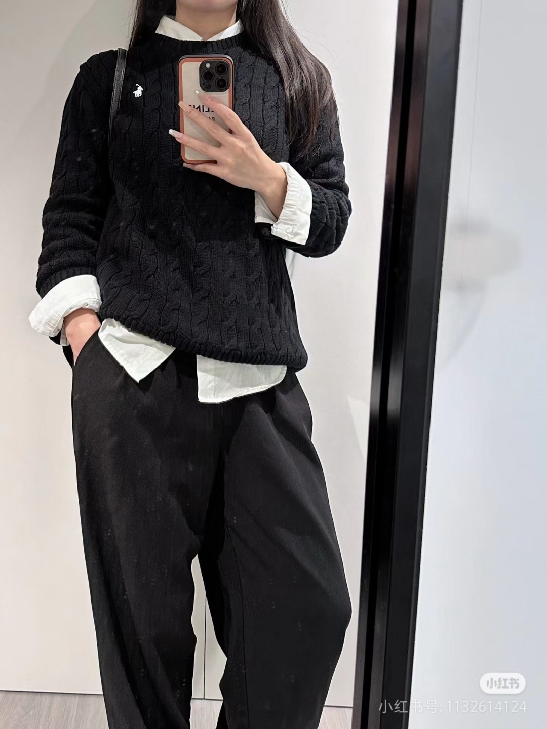 24 새로운 크로스 보더 랄프 로렌 랄 로렌 라운드 넥 솔리드 컬러 포니 자수 로고 트위스트 니트 스웨터스토어 가기