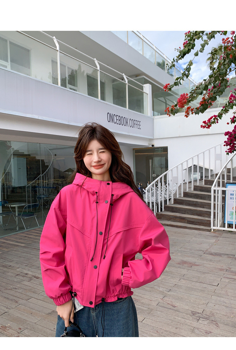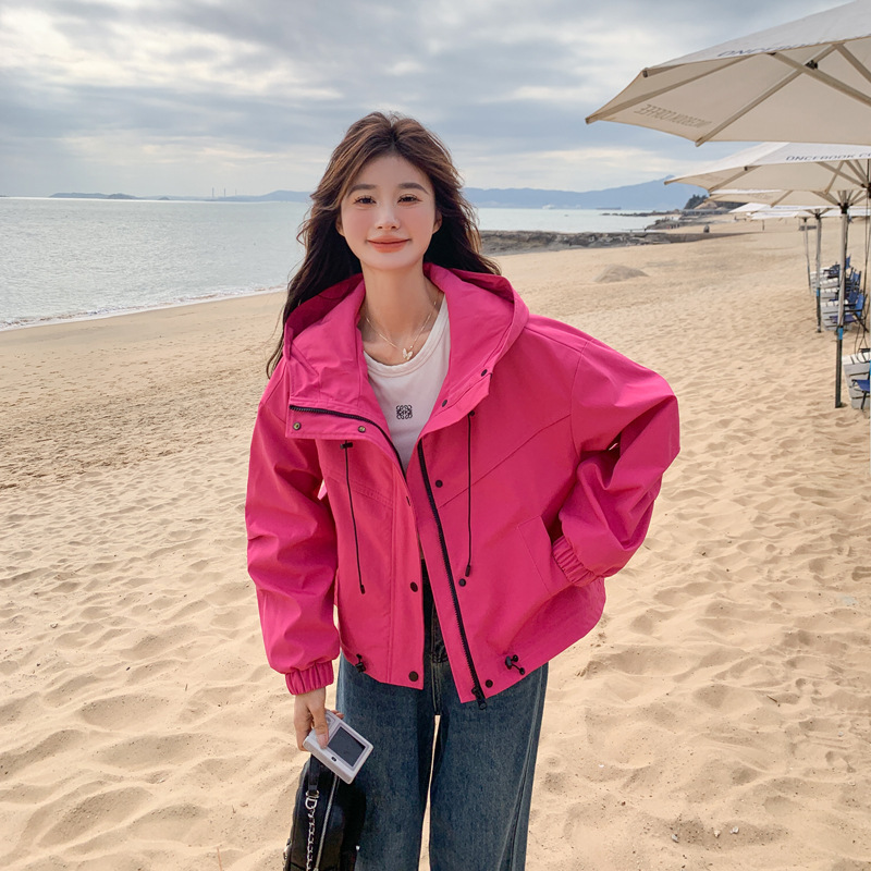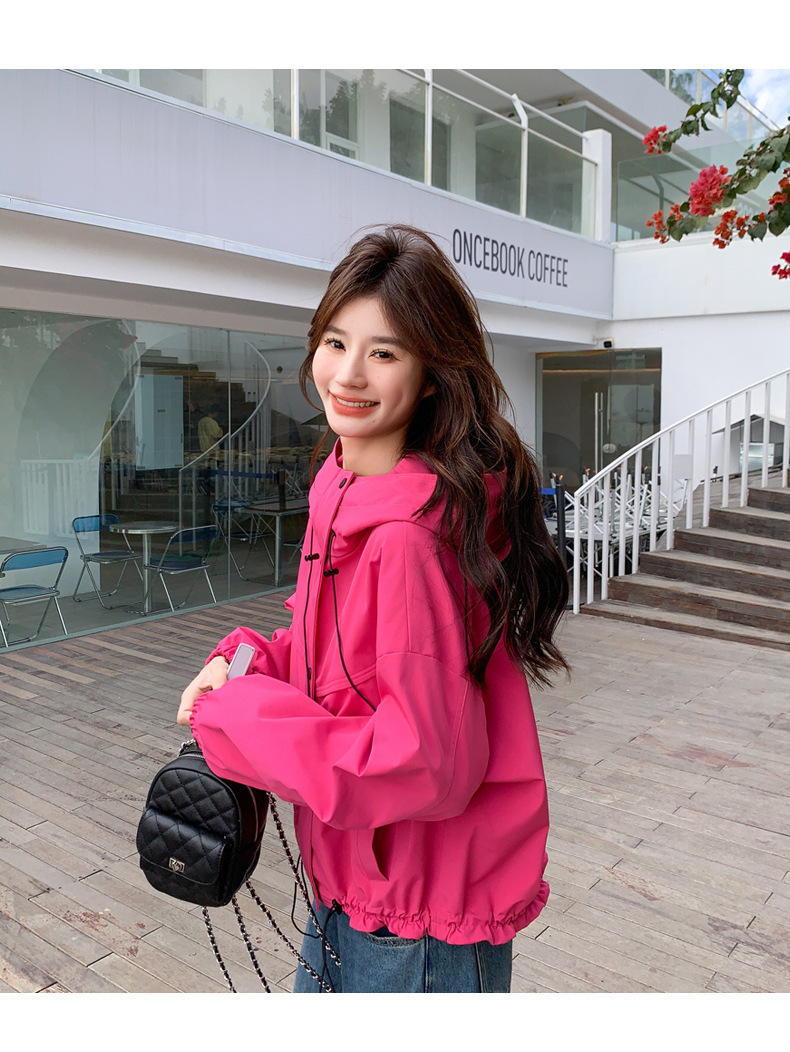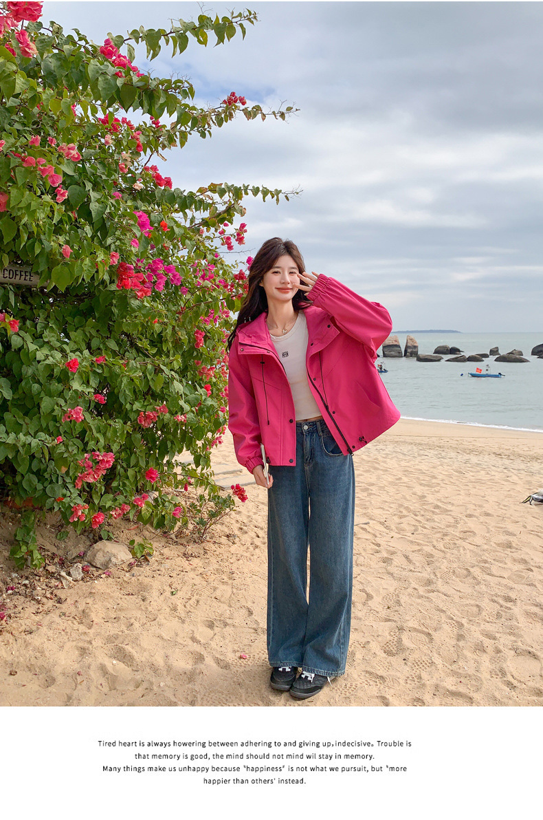 리얼 샷 로즈 레드 오버웨어 폭행 재킷 여성 봄과 가을 새로운 2025 슈퍼 핫 아름다운 짧은 재킷스토어 가기