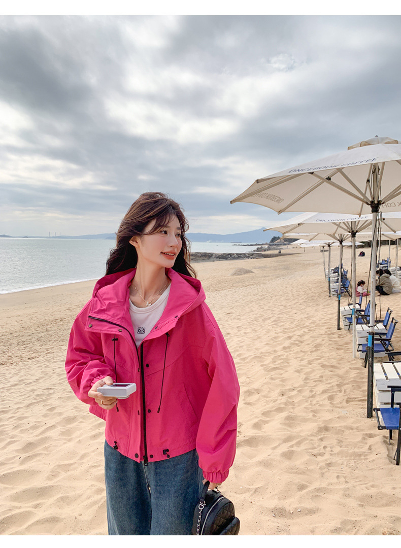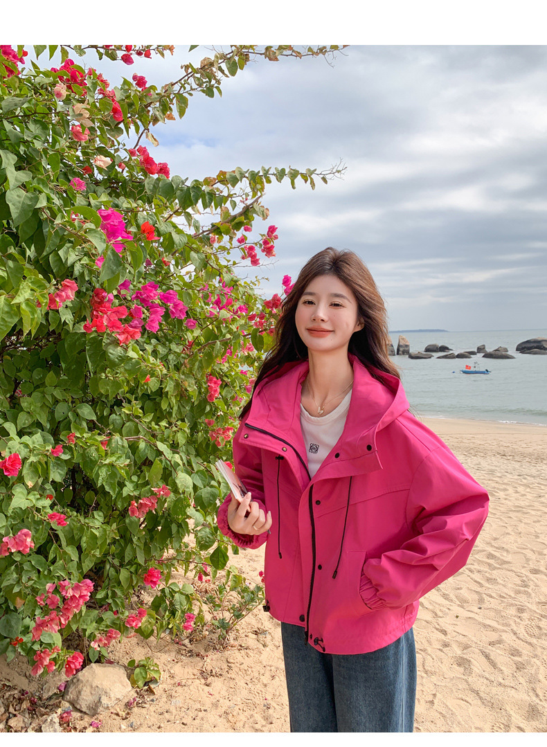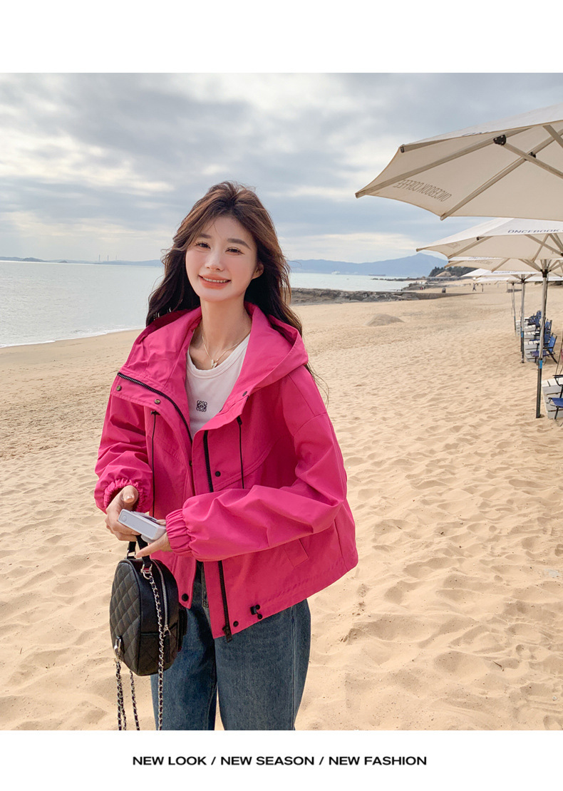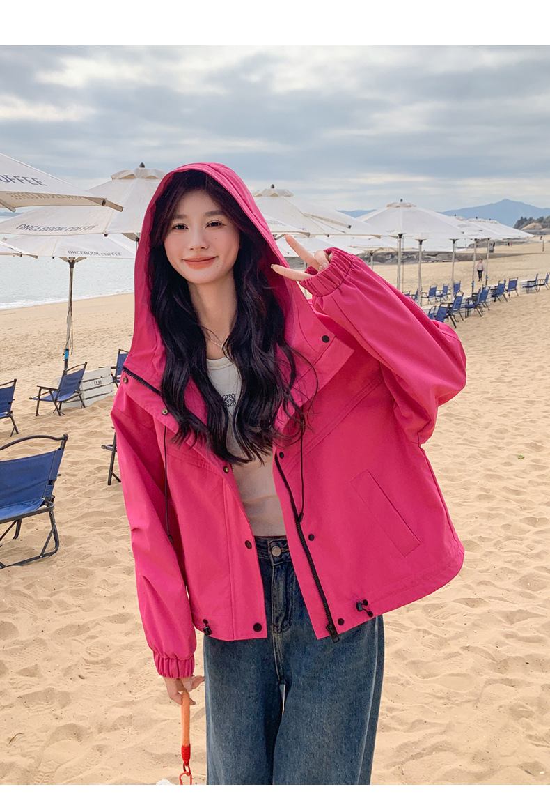 리얼 샷 로즈 레드 오버웨어 폭행 재킷 여성 봄과 가을 새로운 2025 슈퍼 핫 아름다운 짧은 재킷스토어 가기