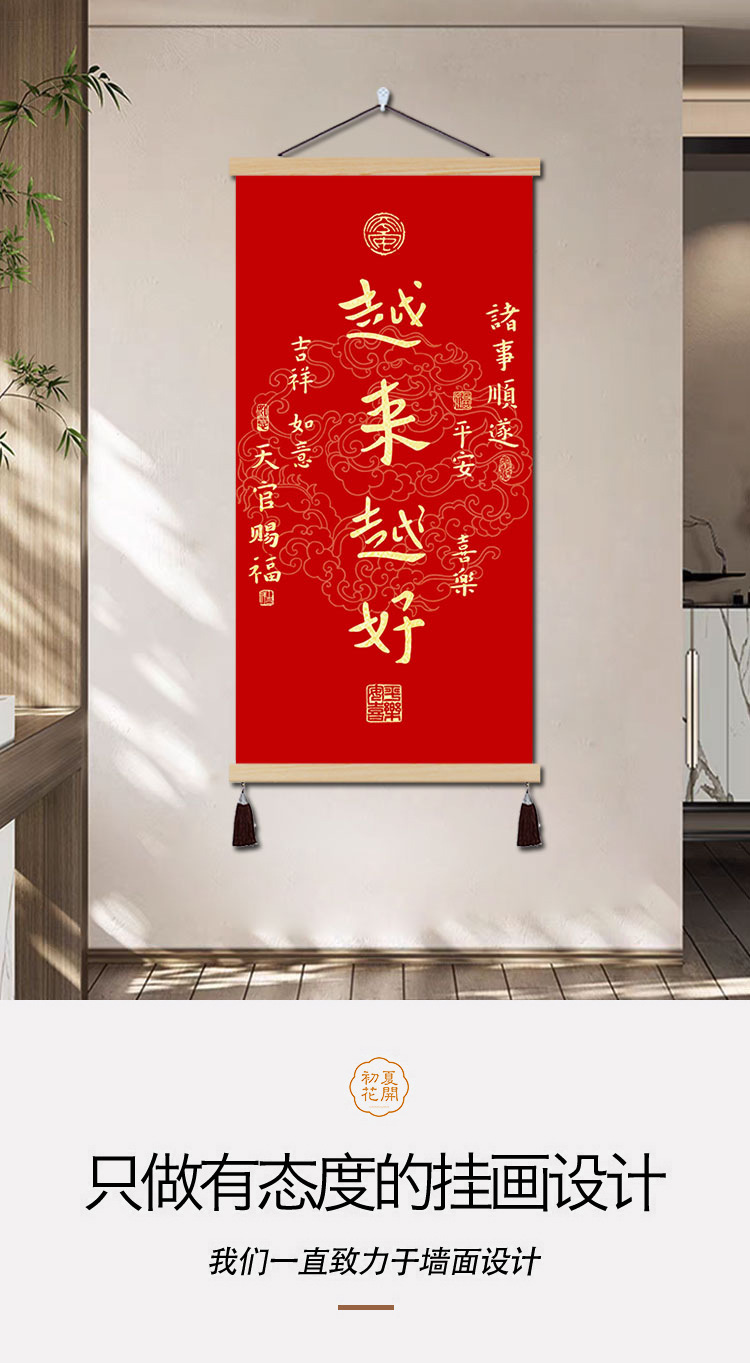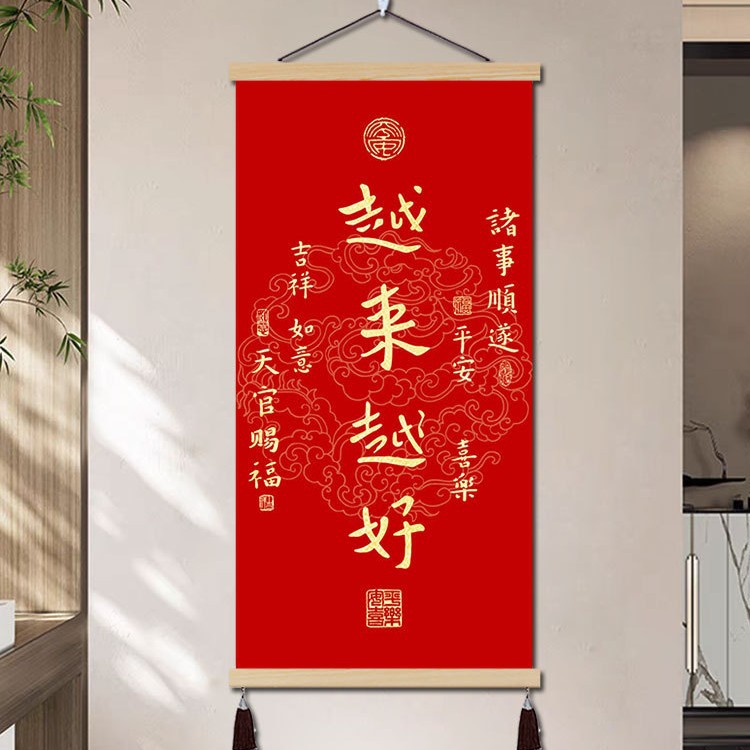 서예 교수형 그림이 점점 더 좋아지고 있습니다. 하늘 공무원 축복, 평화 및 기쁨 거실 식당 연구 벽화 좋은 도덕 장식 그림