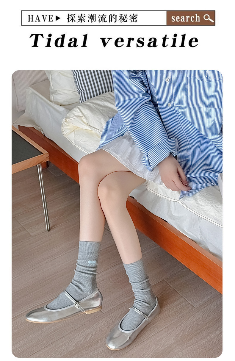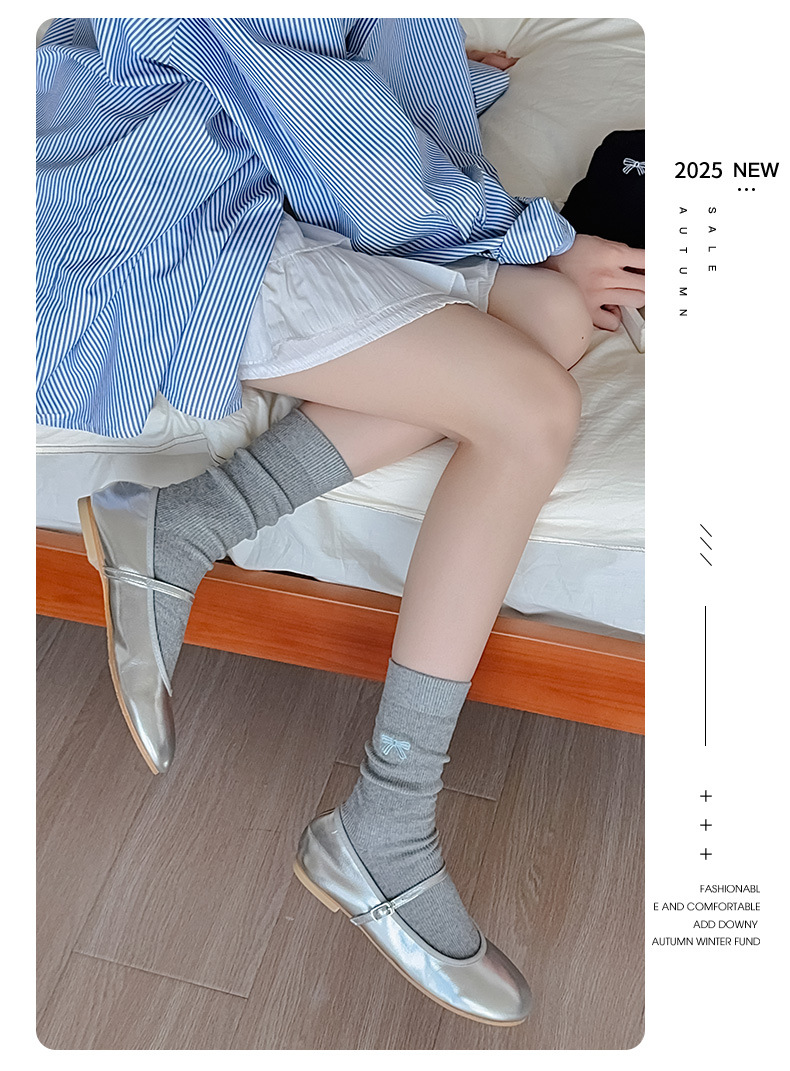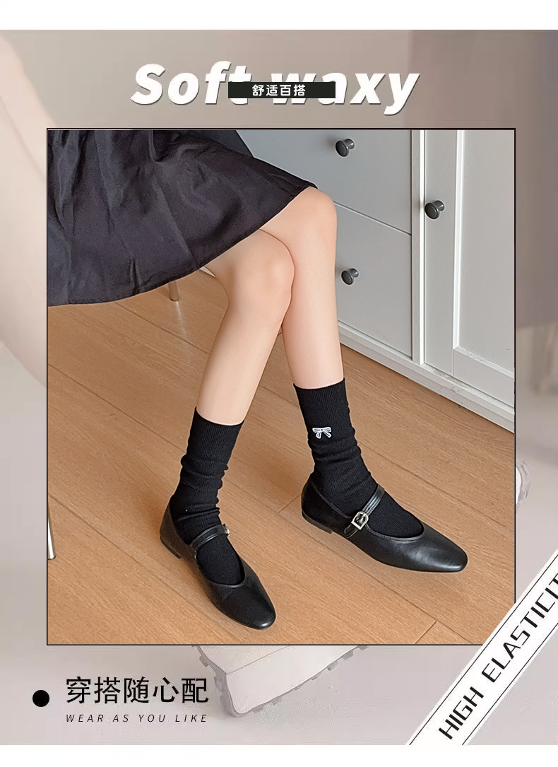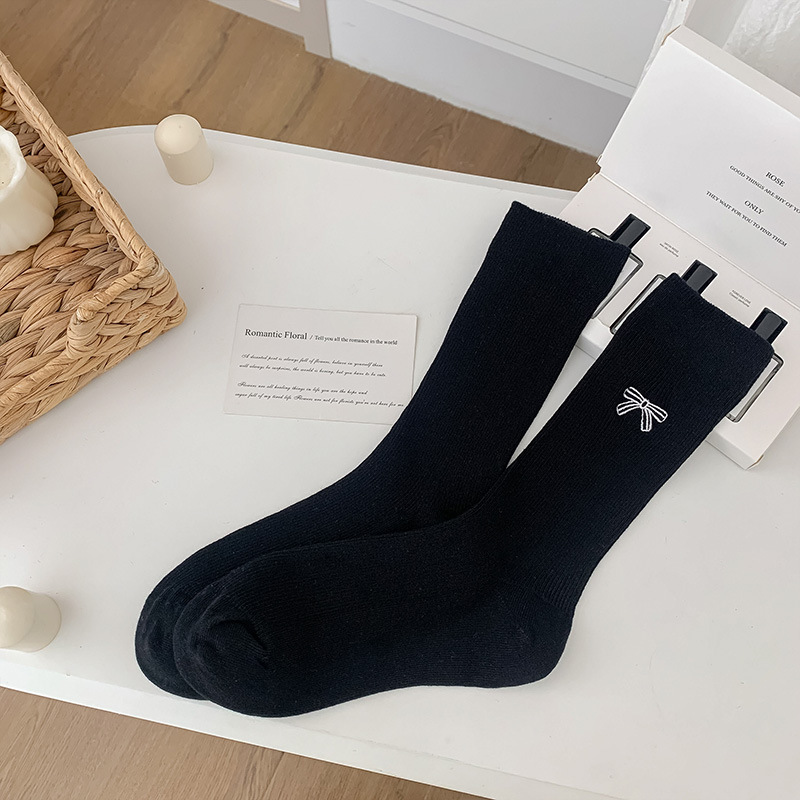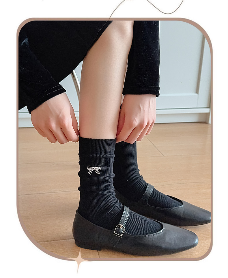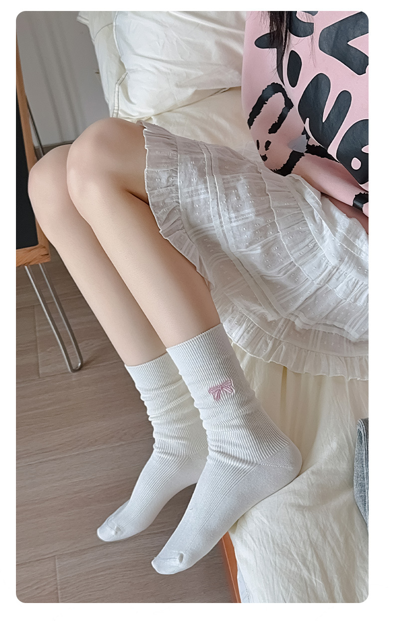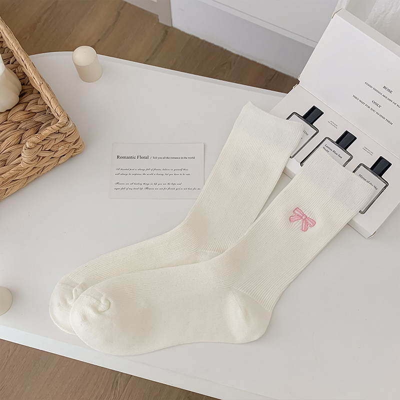 수 놓은 활 양말 여성의 귀여운 일본 스택 양말 봄과 여름 얇은 뼈없는 양말 수직 패턴 여성을위한 모든 경기 중간 튜브 양말