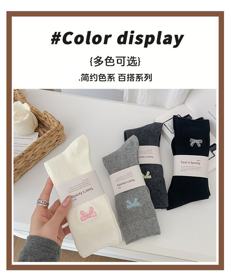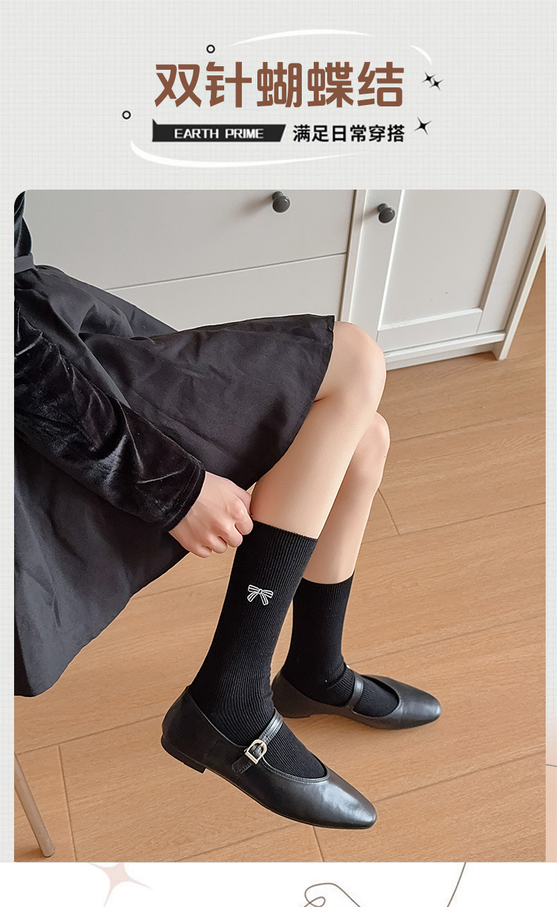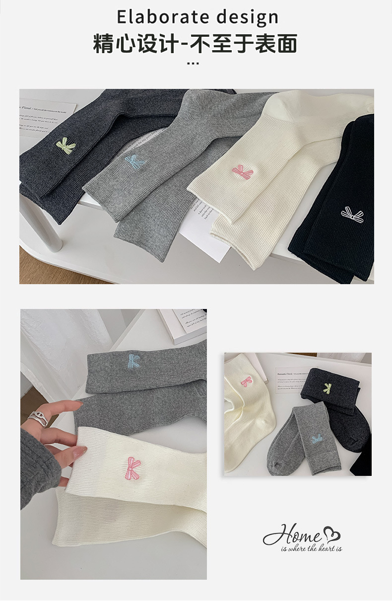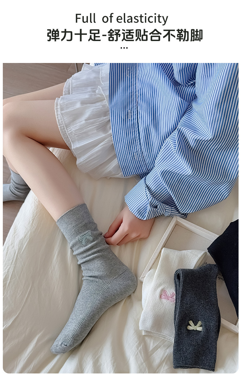 수 놓은 활 양말 여성의 귀여운 일본 스택 양말 봄과 여름 얇은 뼈없는 양말 수직 패턴 여성을위한 모든 경기 중간 튜브 양말스토어 가기