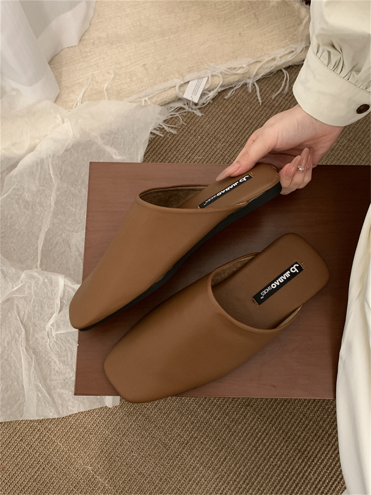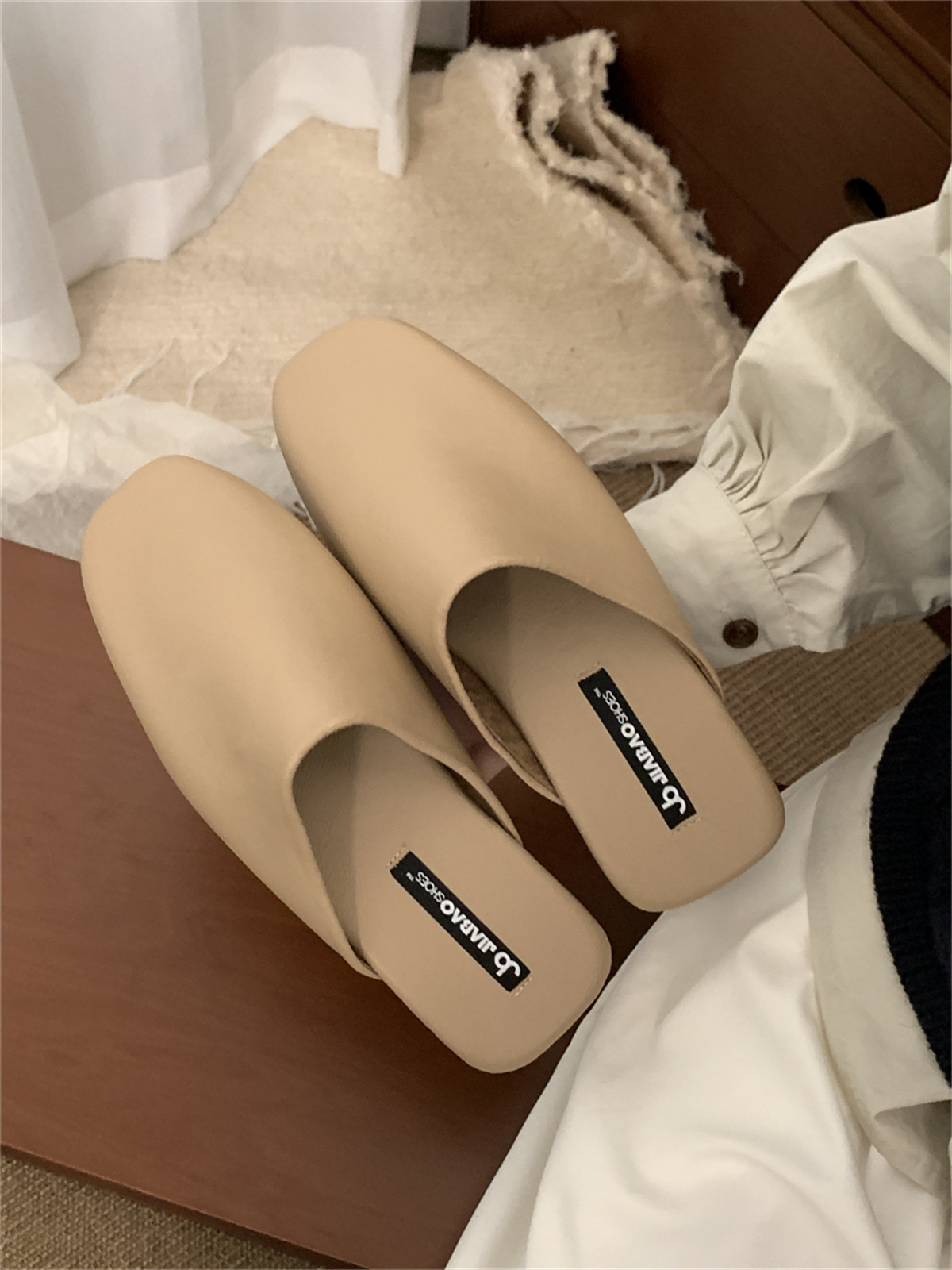니치 올매치 게으른 남자 하프 슬리퍼 여성 신발 외부 착용 2025 뉴 봄 및 여름 플랫 하프 지원 신발 싱글 레이어 신발