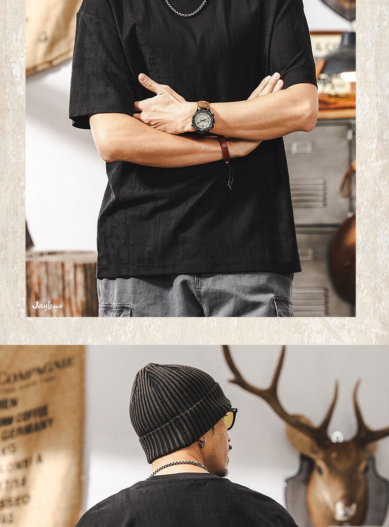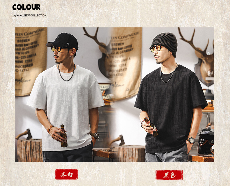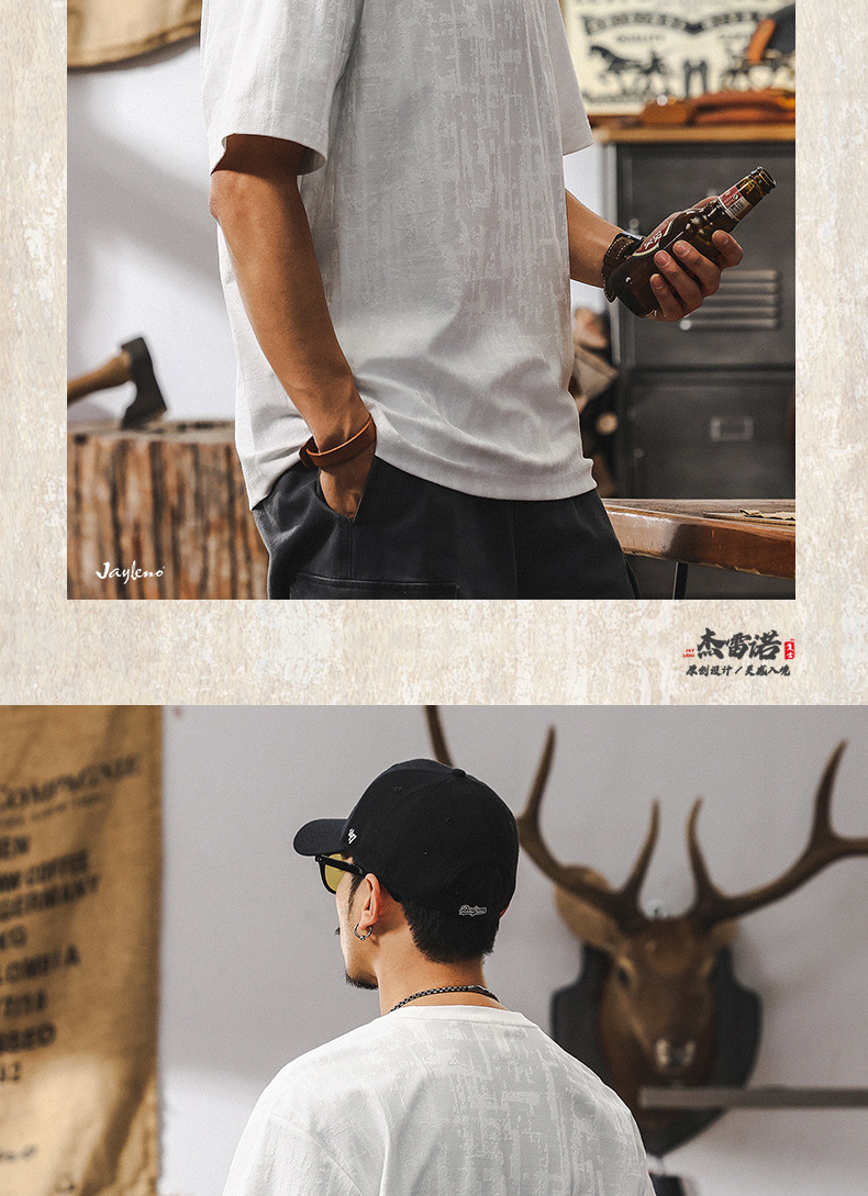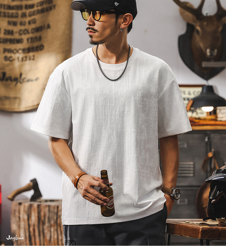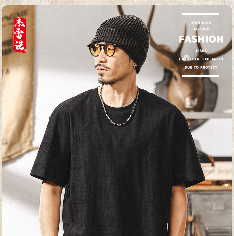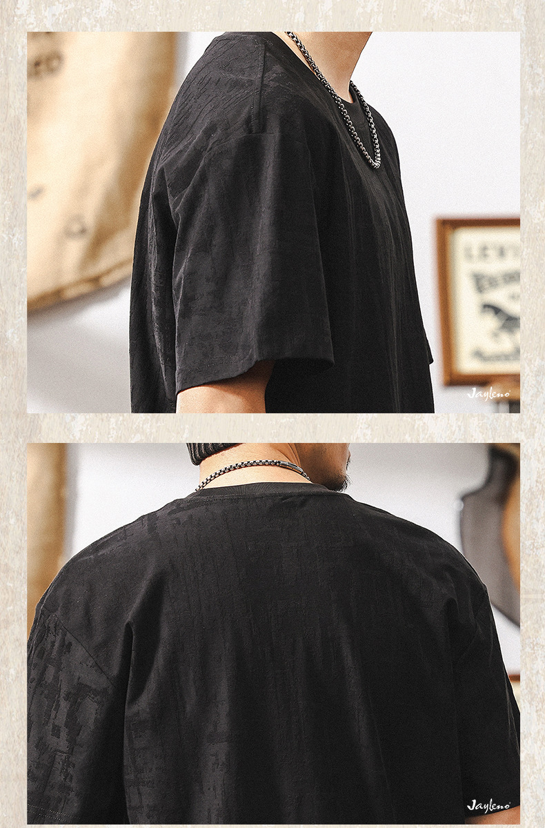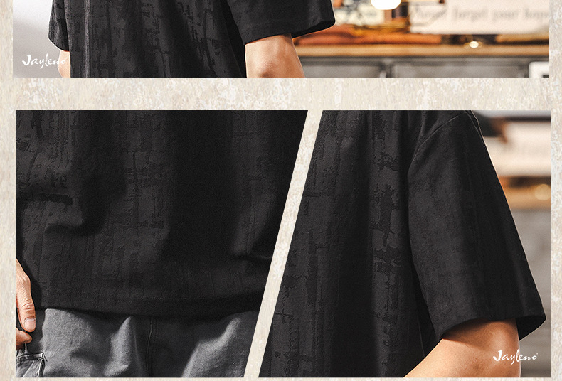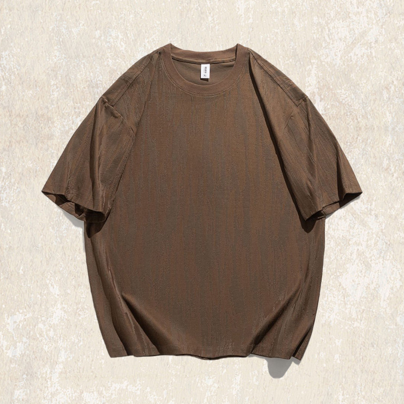 남성용 미국 복고풍 질감 자카드 반팔 티셔츠 여름 2025 새로운 트렌디 한 하이 엔드 캐주얼 탑 남성용 T스토어 가기