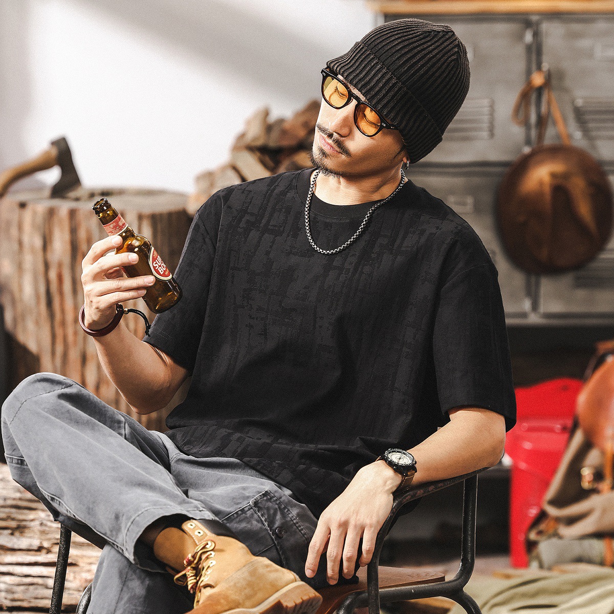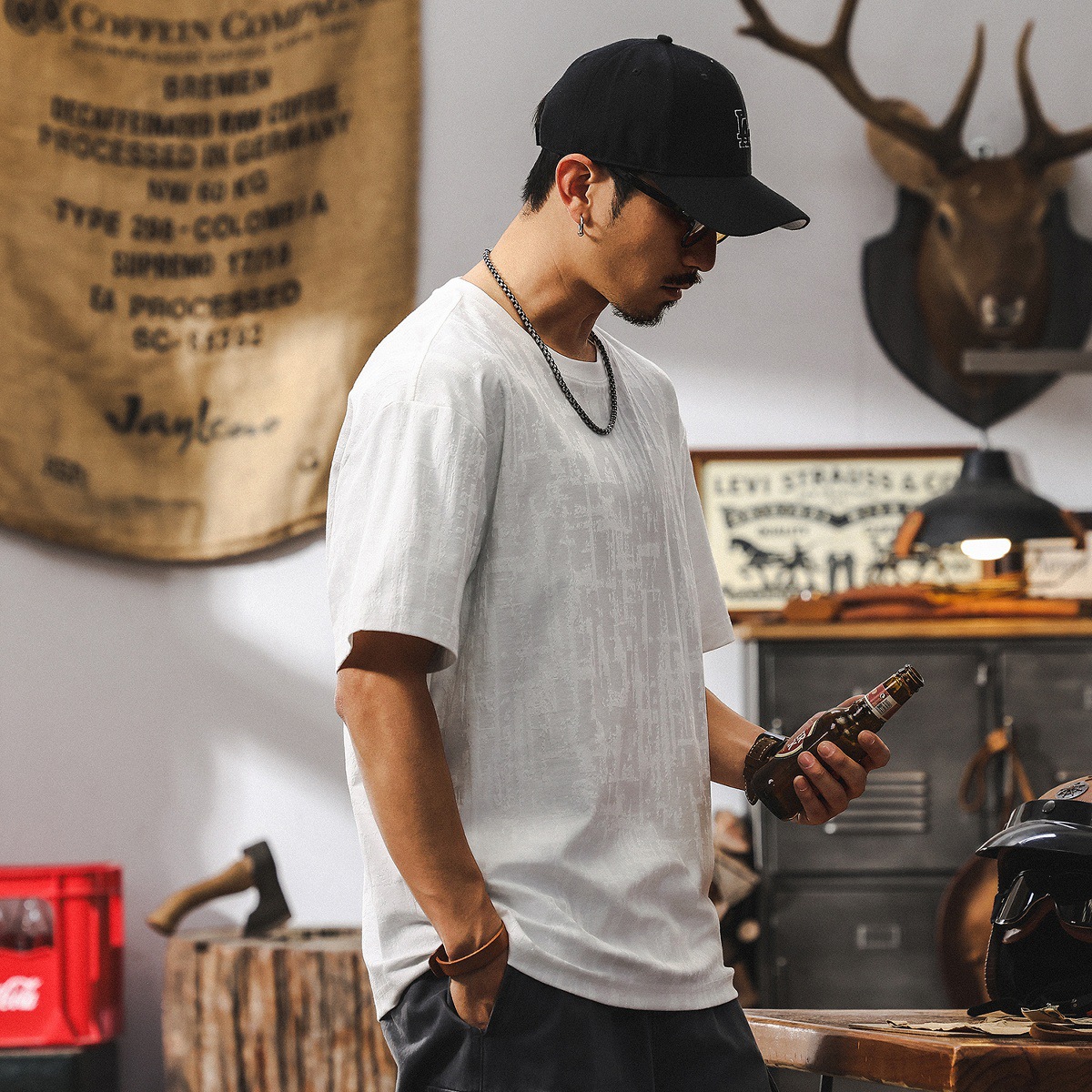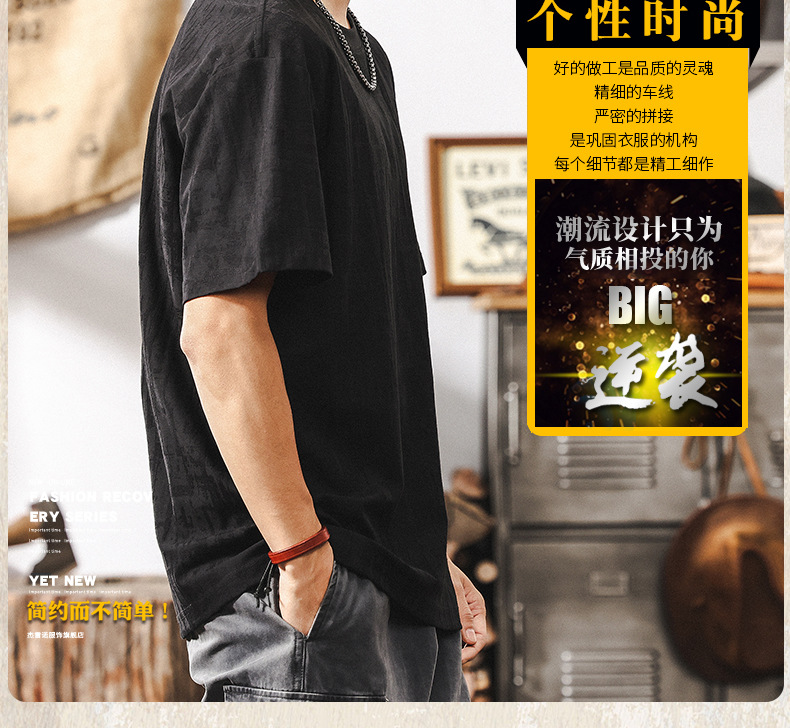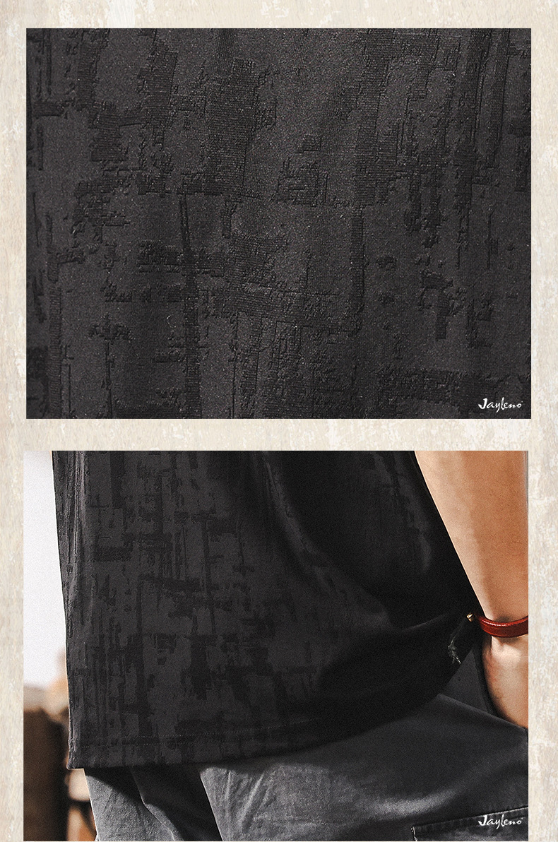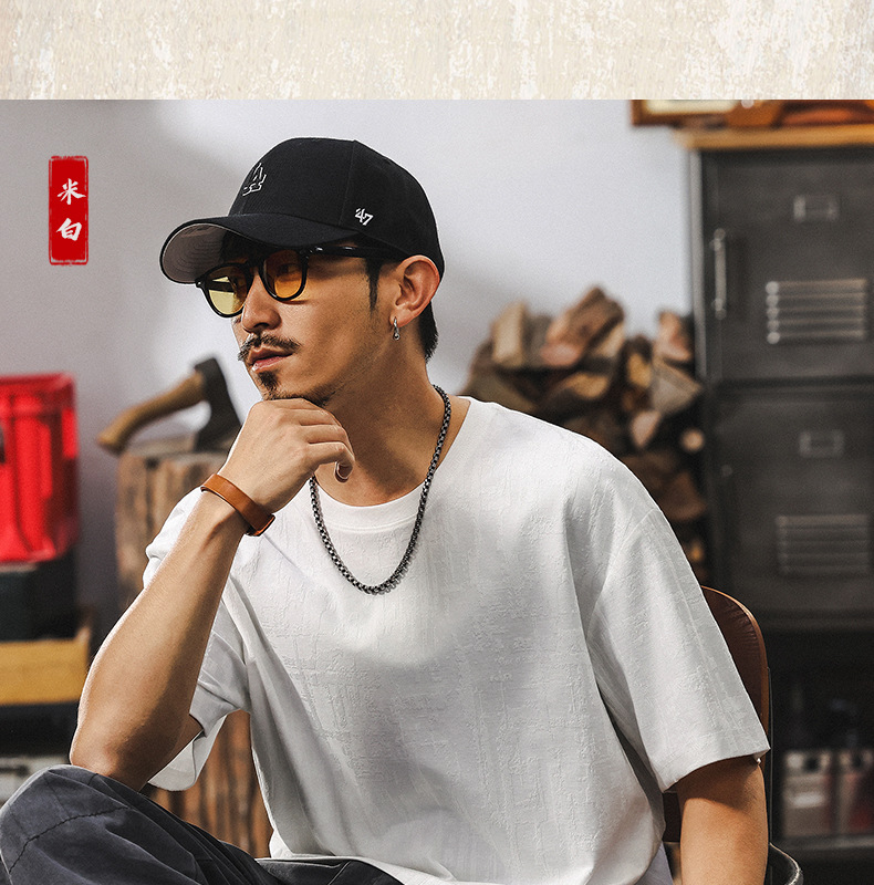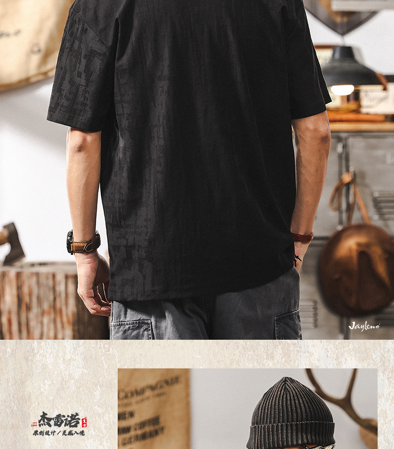 남성용 미국 복고풍 질감 자카드 반팔 티셔츠 여름 2025 새로운 트렌디 한 하이 엔드 캐주얼 탑 남성용 T스토어 가기