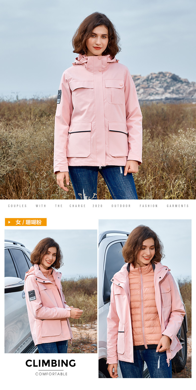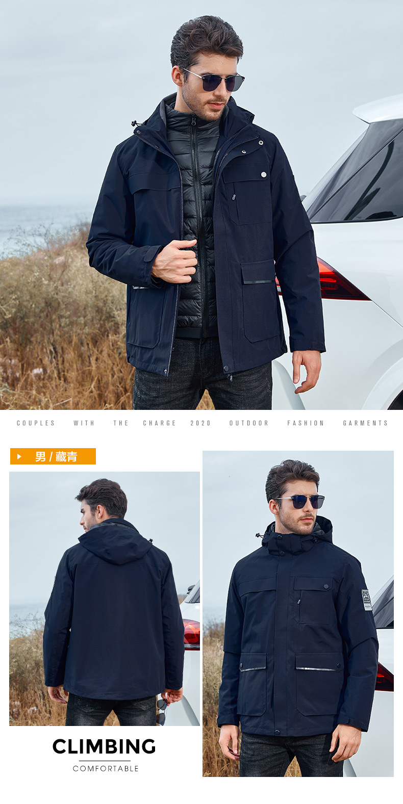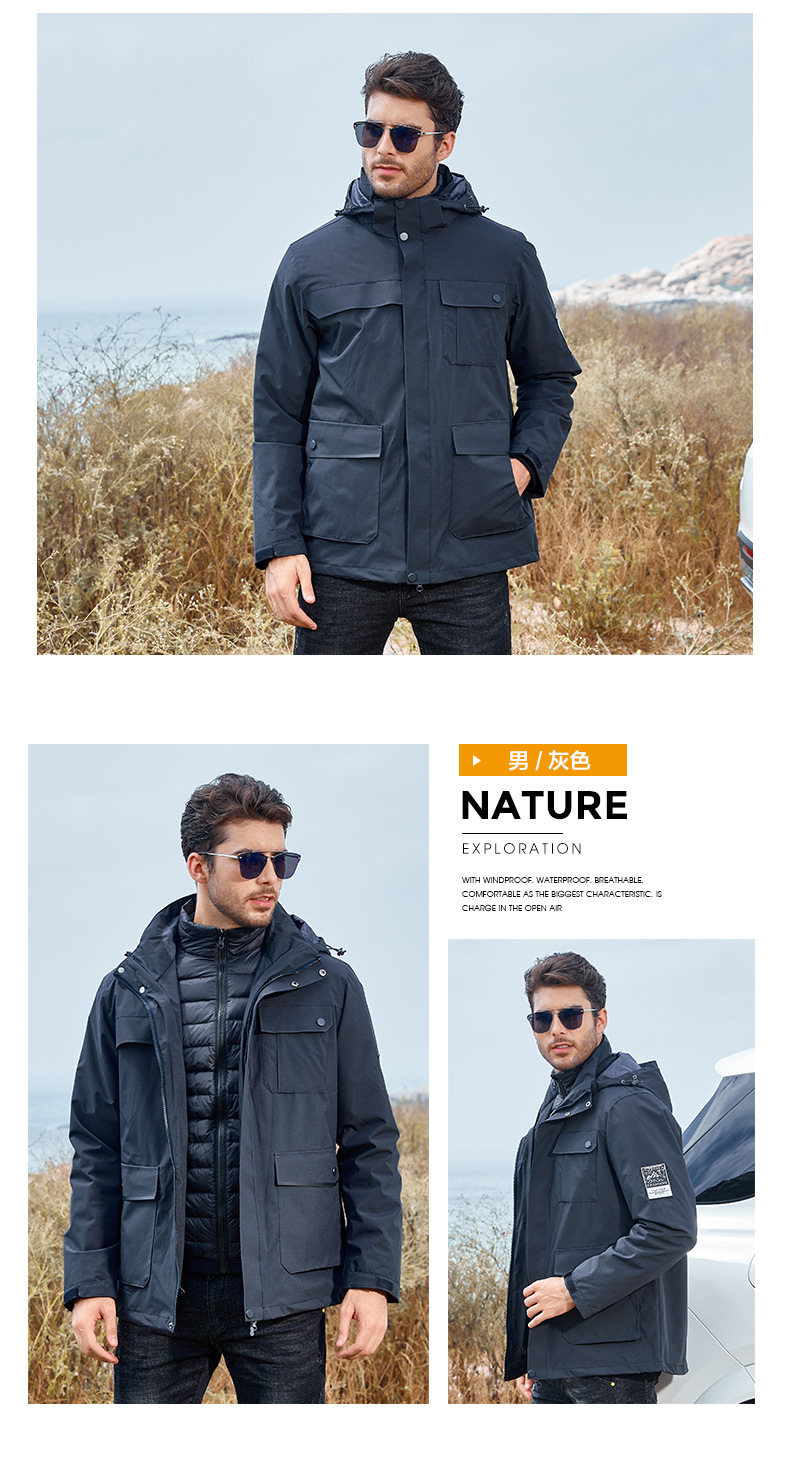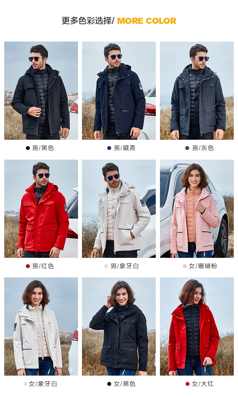 재킷 남성 폭행 의류 여성의 분리 가능한 중간 길이 3 대 1 야외 등산 인쇄 유니폼 다운 라이너 가을과 겨울 로고