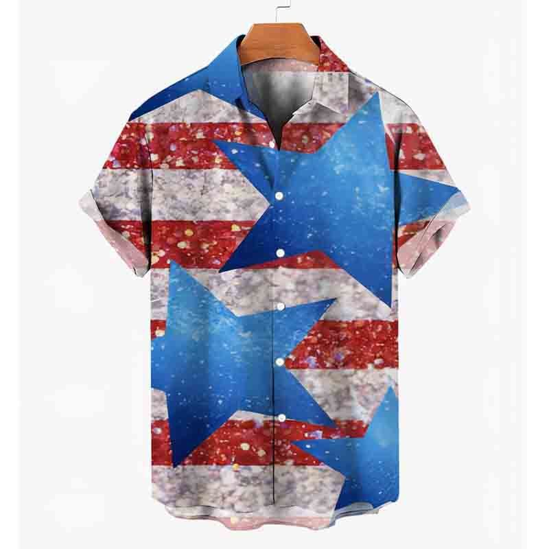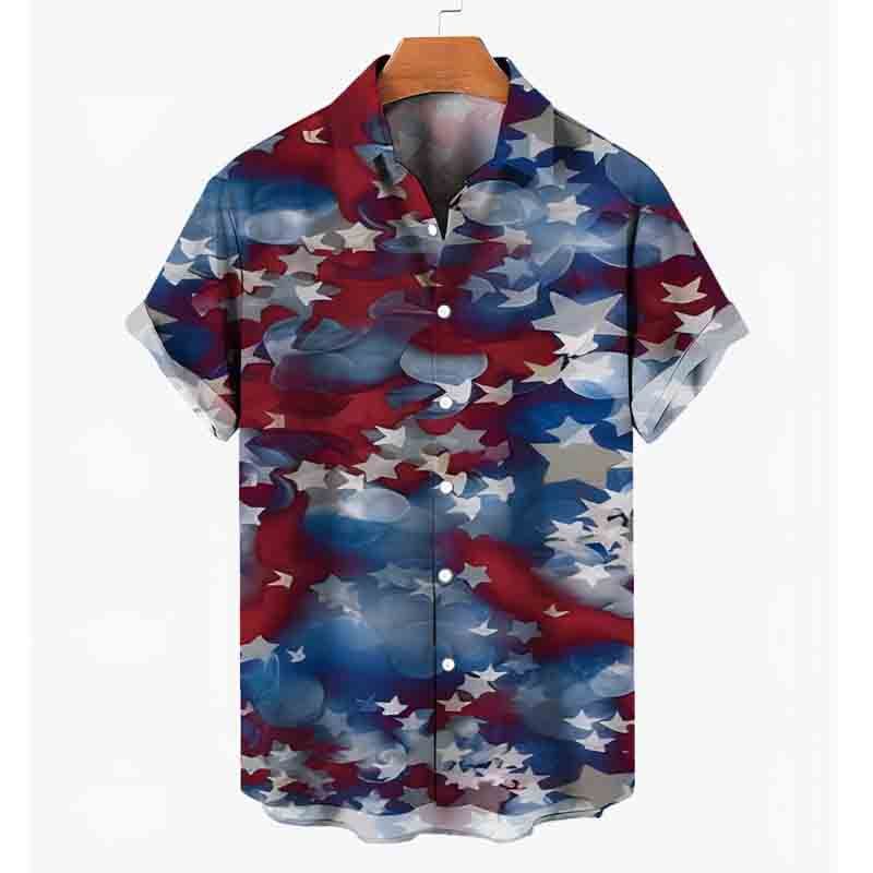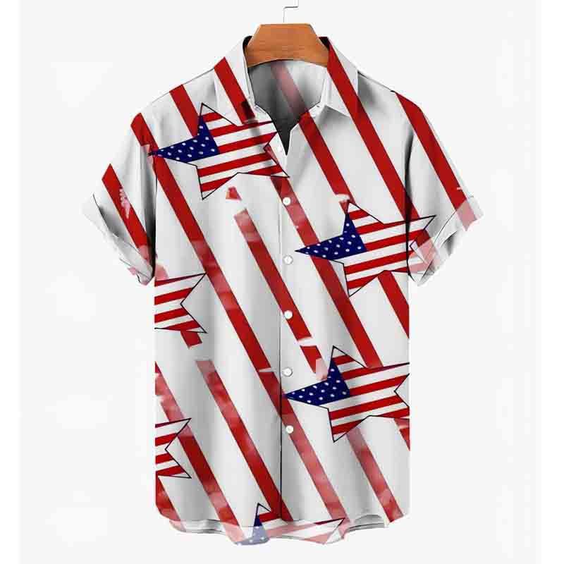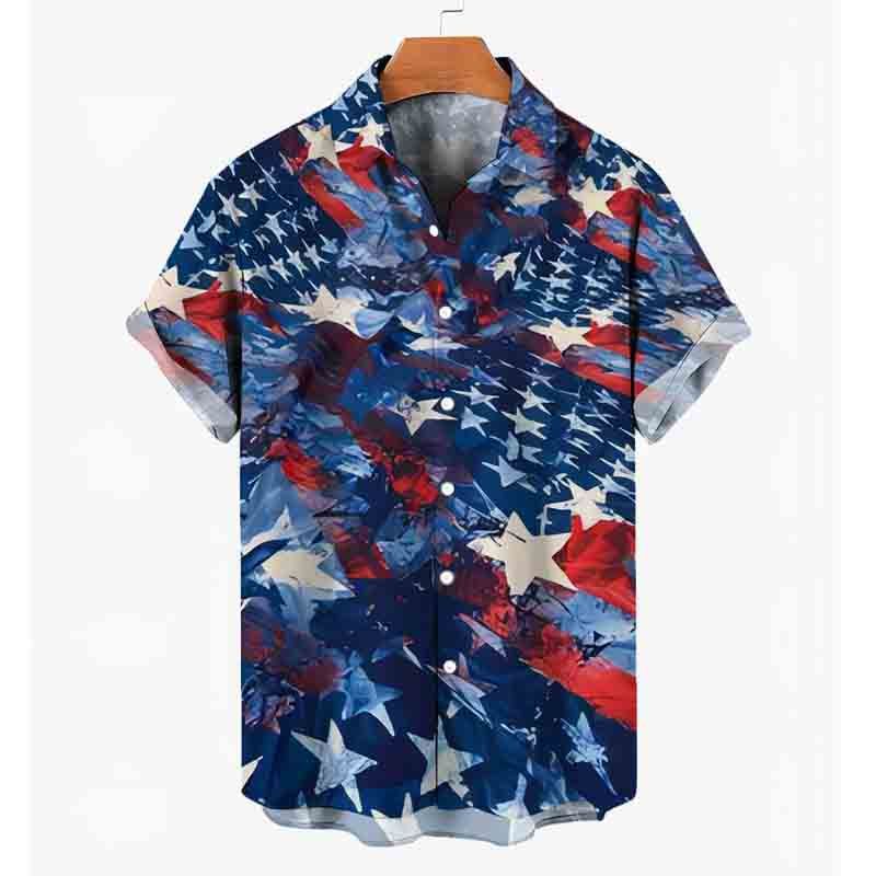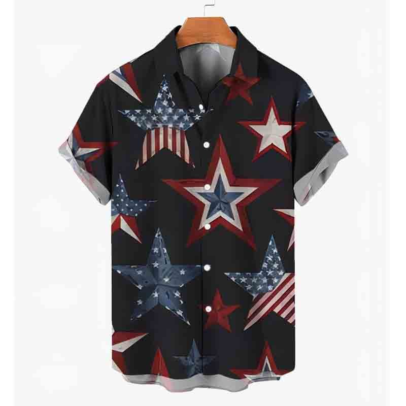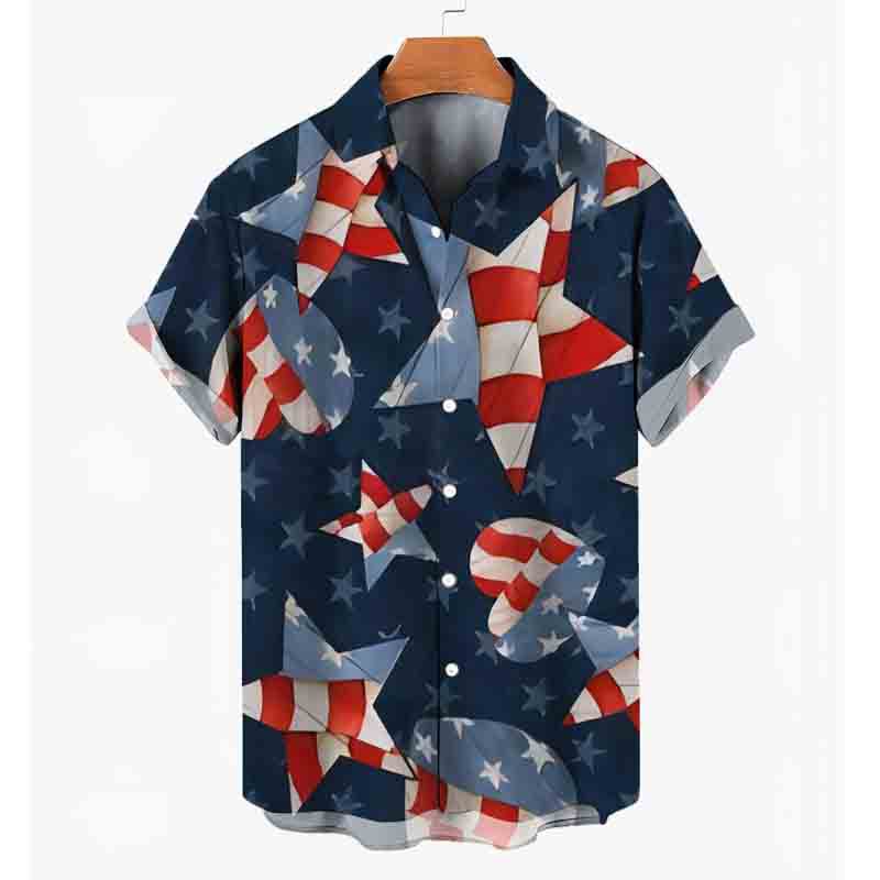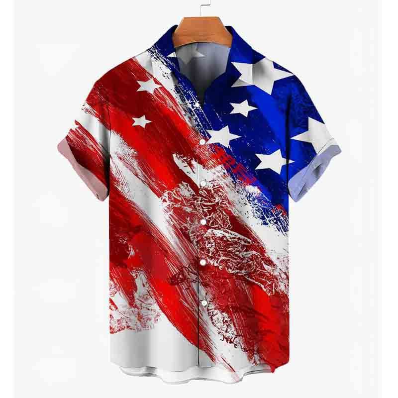 2025 유럽과 미국 국경 새로운 남성 독립 기념일 요소 3D 인쇄 카디건 캐주얼 옷깃 짧은 소매 셔츠스토어 가기