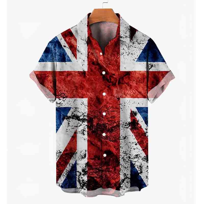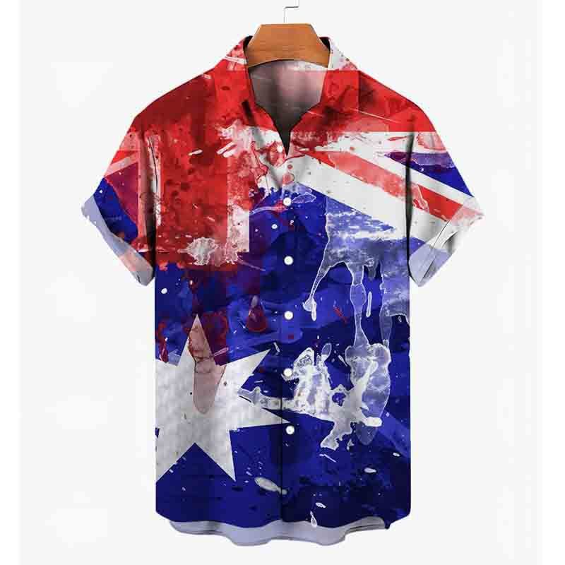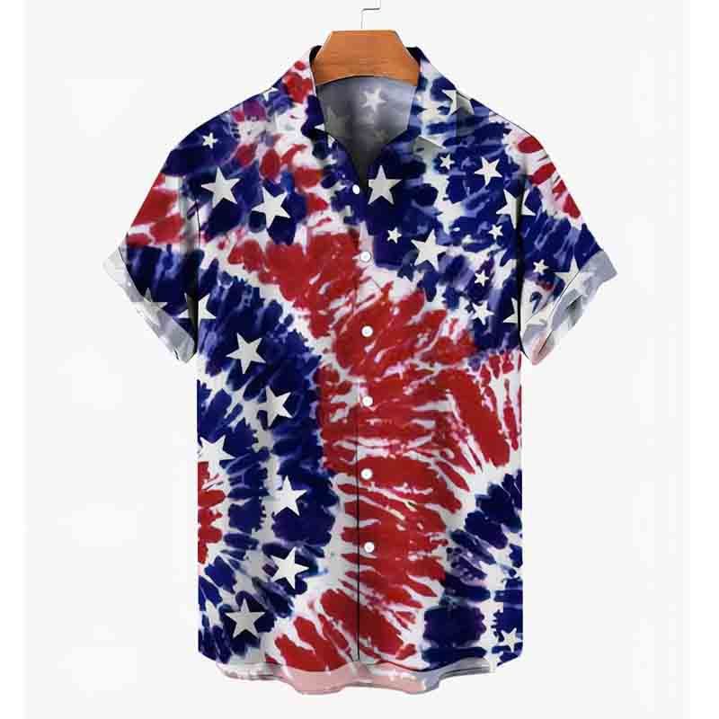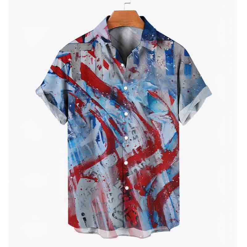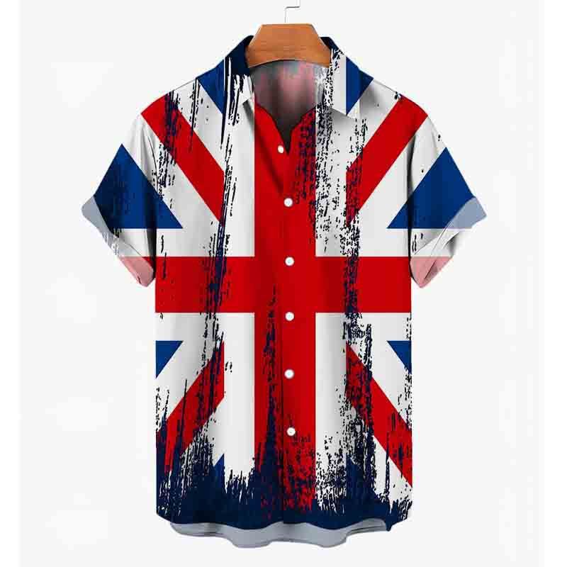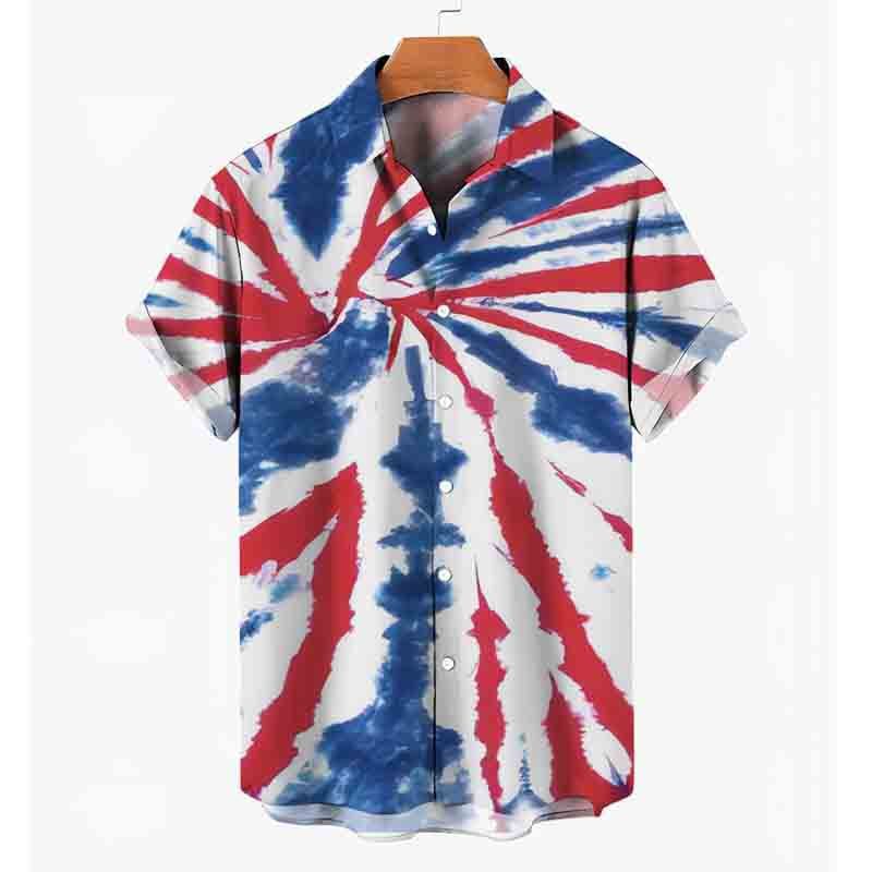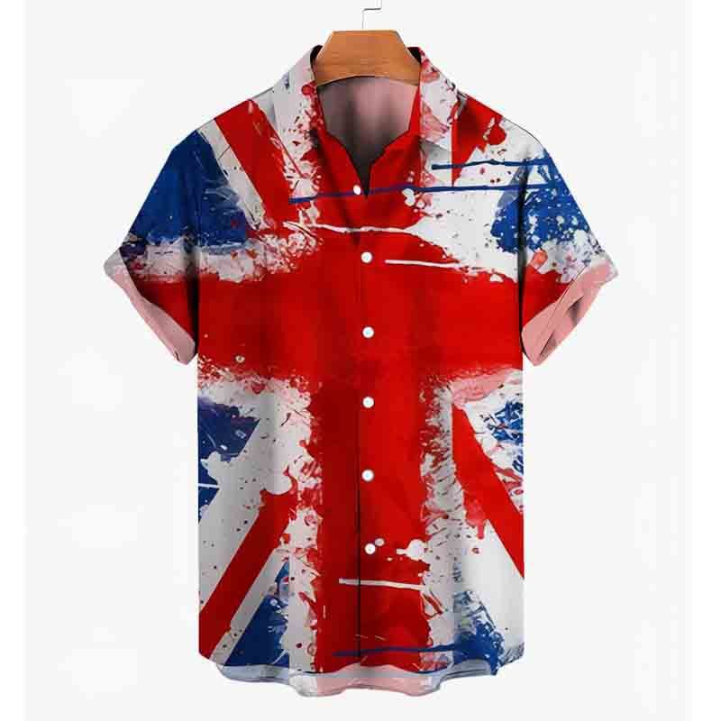 2025 유럽과 미국 국경 새로운 남성 독립 기념일 요소 3D 인쇄 카디건 캐주얼 옷깃 짧은 소매 셔츠스토어 가기