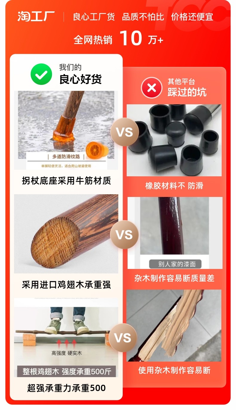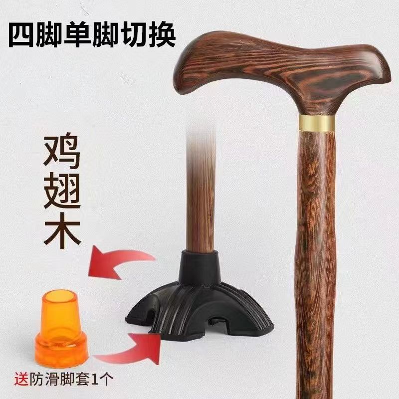 시나 스틱 마운틴 클라이밍 워킹 스틱 통합 마운틴 클라이밍 치킨 날개 미끄럼 방지 노년 워킹 스틱 4 발 라이트 솔리드 우드 치킨 윙 우드