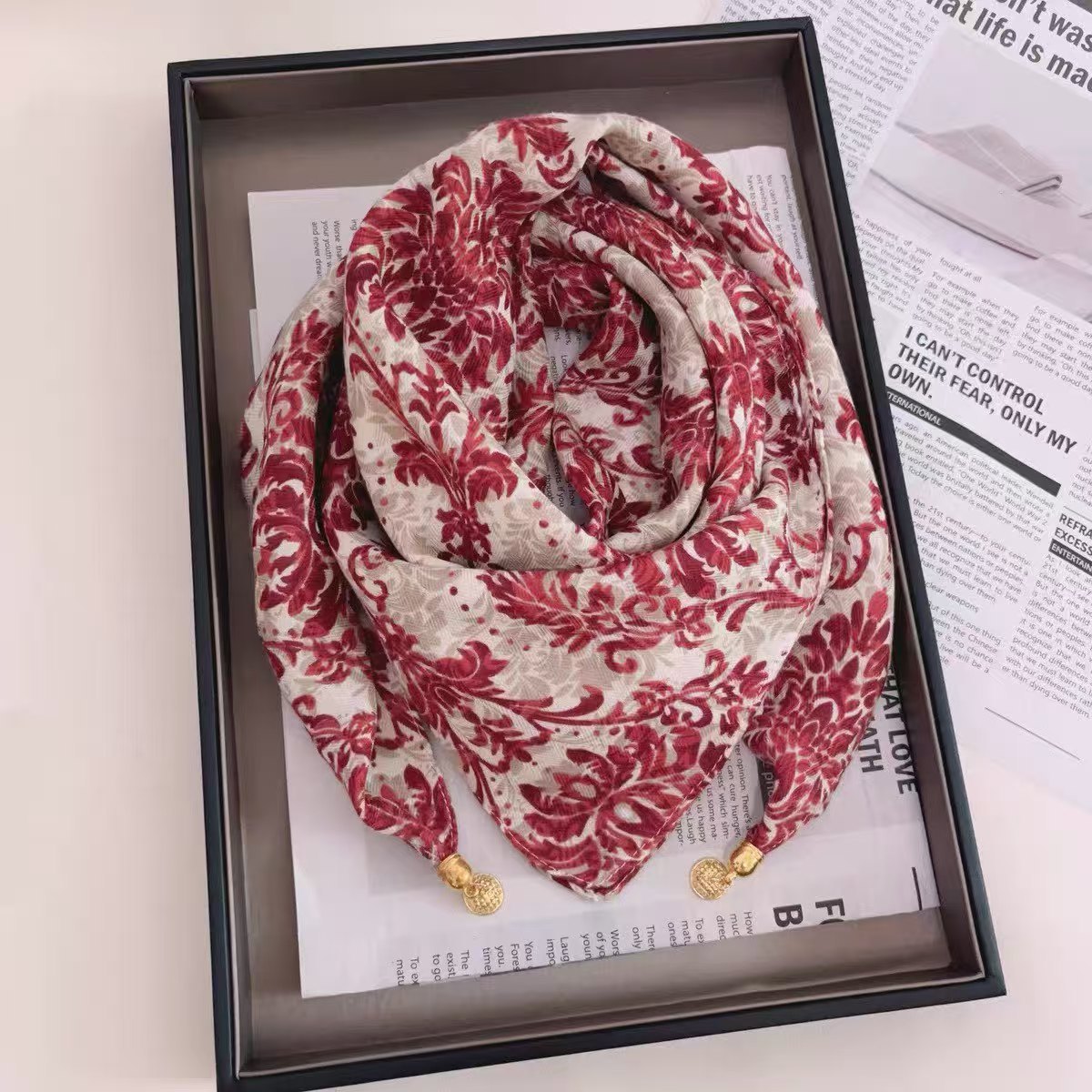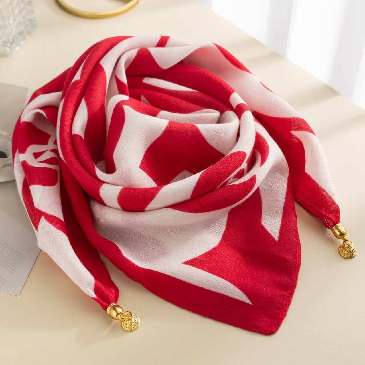 2024 새로운 스타일 따뜻한 광장 스카프 마그네틱 버클 삼각형 실크 스카프 면화 스카프 여성의 봄 가을과 겨울 서양 스타일 스카프 우아한 올 매치