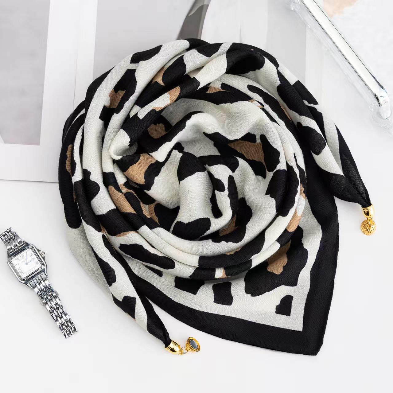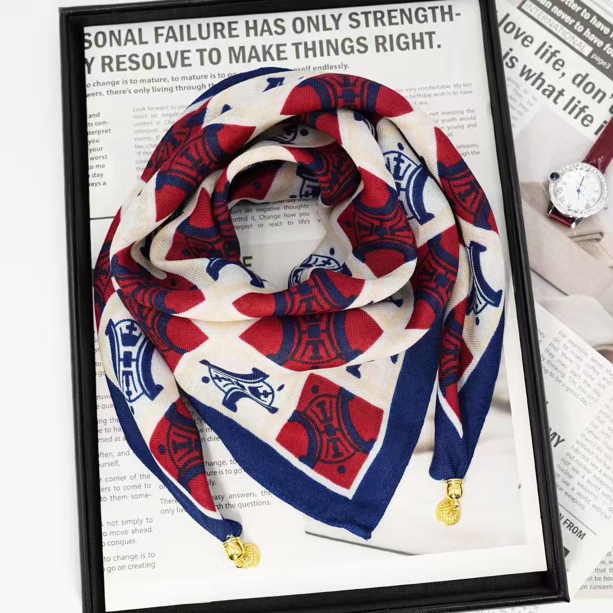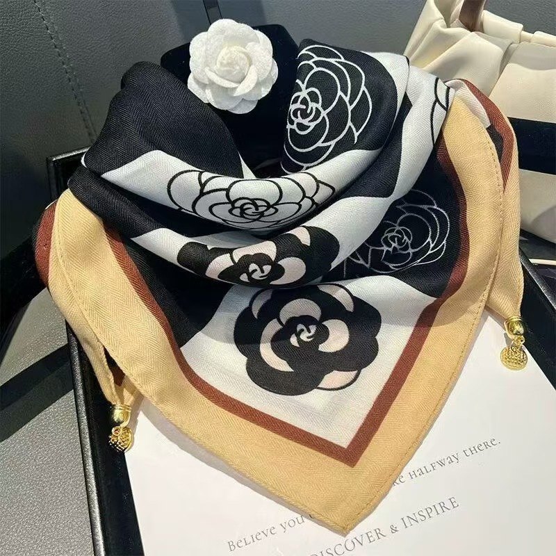 2024 새로운 스타일 따뜻한 광장 스카프 마그네틱 버클 삼각형 실크 스카프 면화 스카프 여성의 봄 가을과 겨울 서양 스타일 스카프 우아한 올 매치스토어 가기