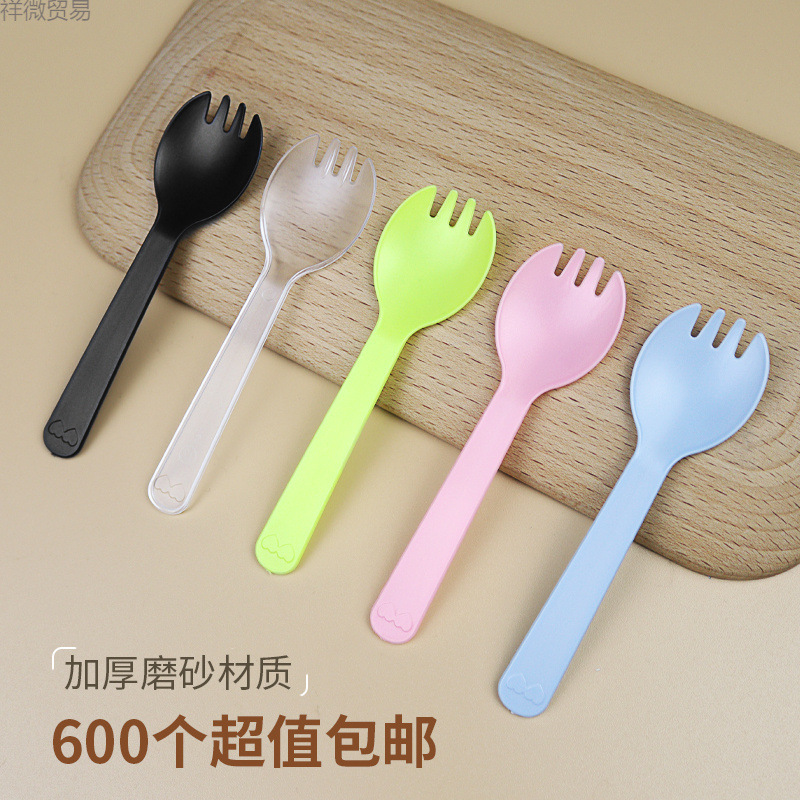 플라스틱 일회용 포크 스푼 작은 스푼 개별적으로 포장 두꺼운 과일 샐러드 포크 아이스크림 스푼 케이크