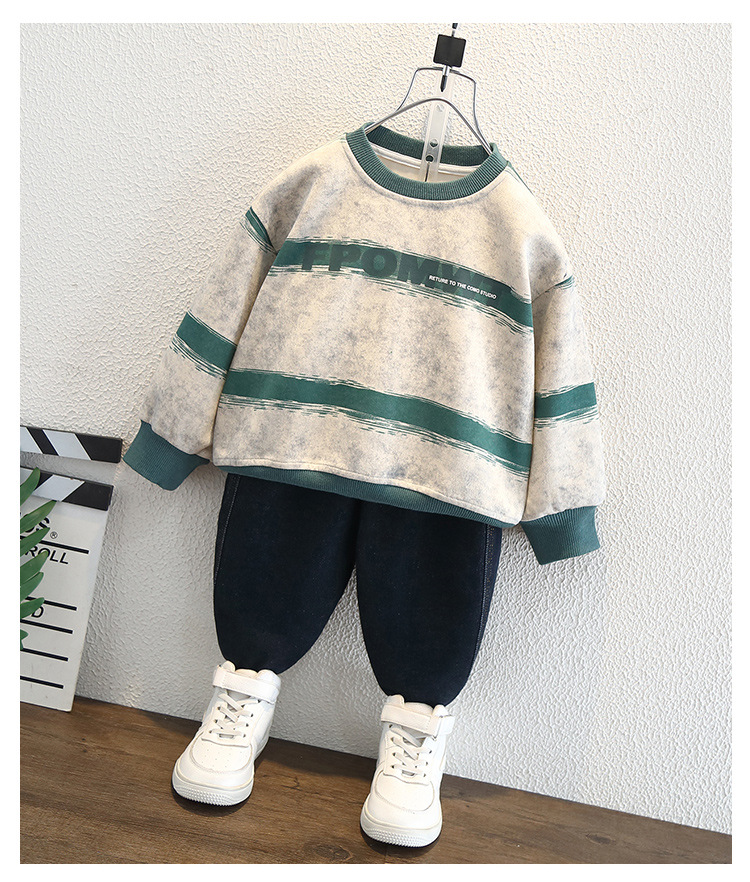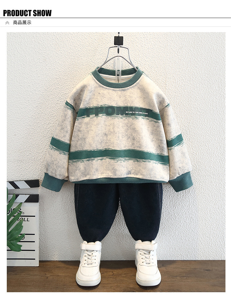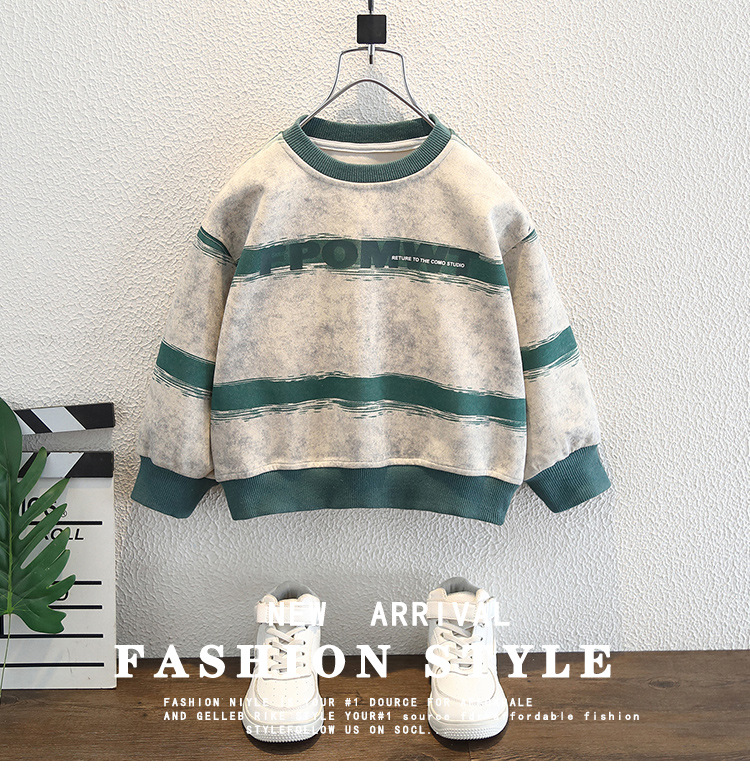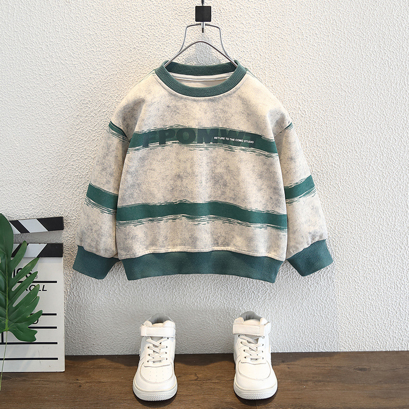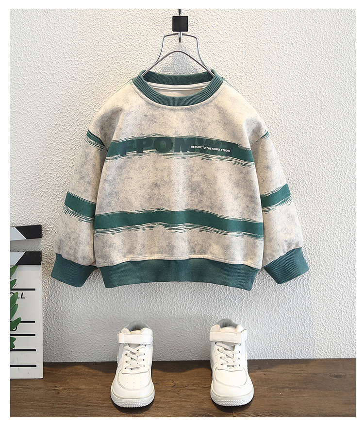 소년 스웨터베이스 셔츠 봄 2025 봄 새로운 유행 최고 어린이 느슨한 승무원 풀오버스토어 가기