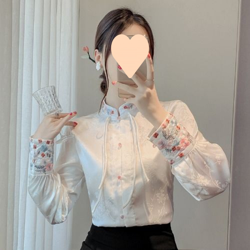 2024 봄과 가을 새로운 레트로 스타일 버튼 수직 칼라 여성용 셔츠 새로운 중국 스타일 국가 스타일 긴 소매 탑 자수 작은 셔츠스토어 가기